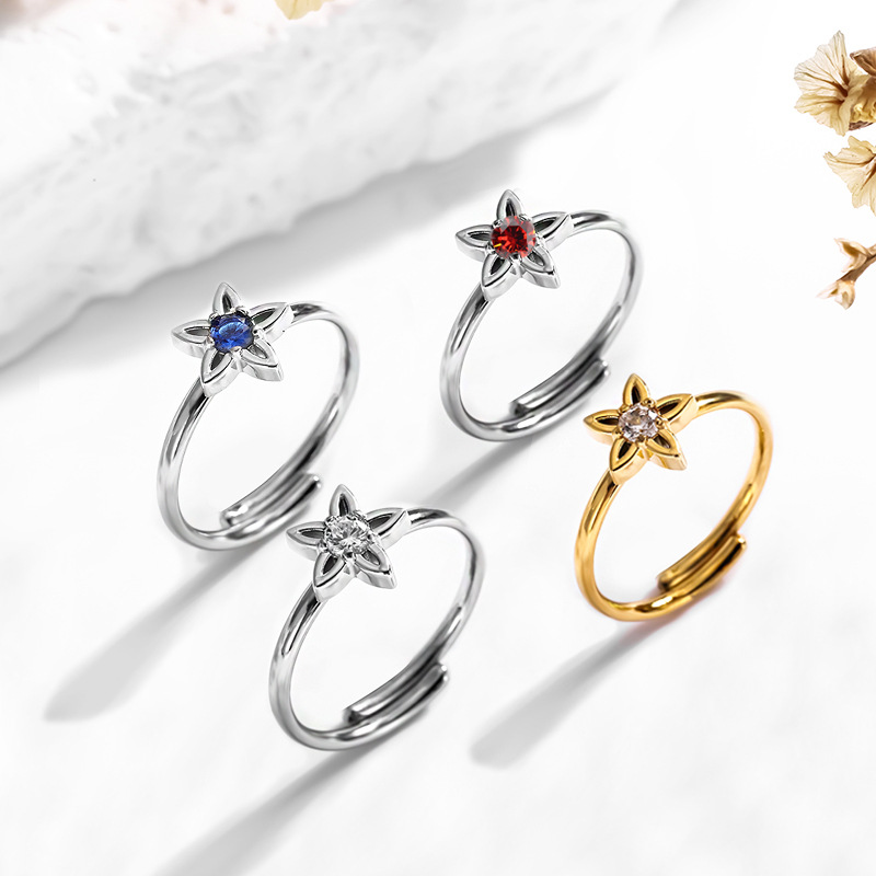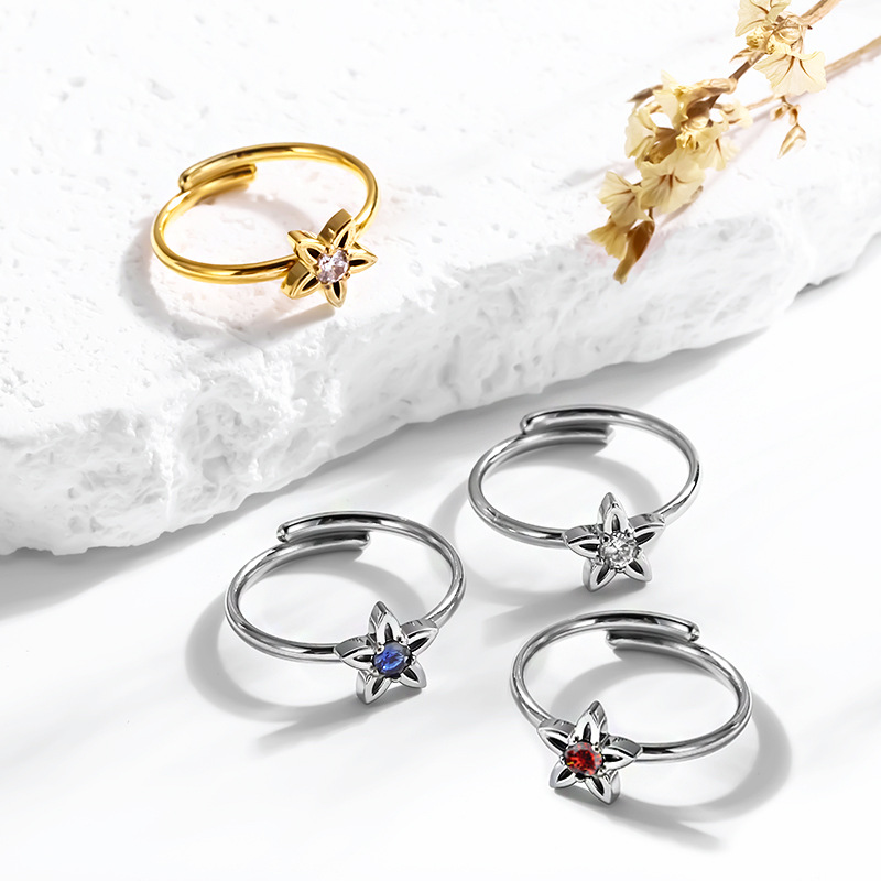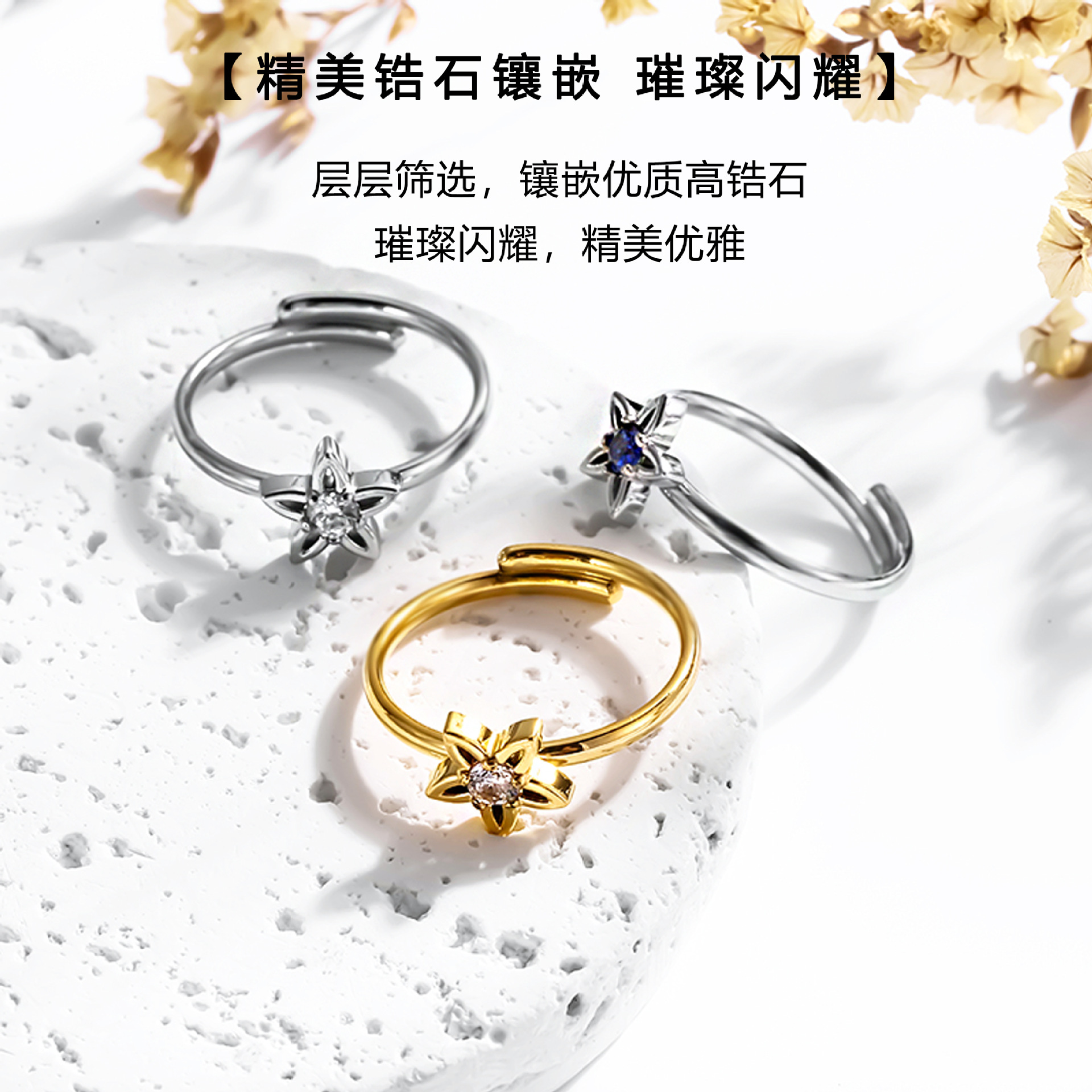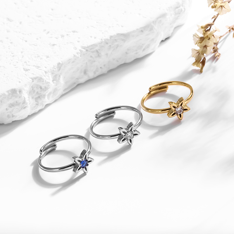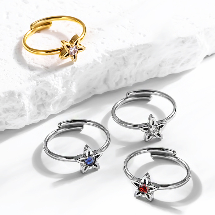 跨境时尚钛钢五角星戒指简约小众百搭电镀18K金色可调节指环手饰
