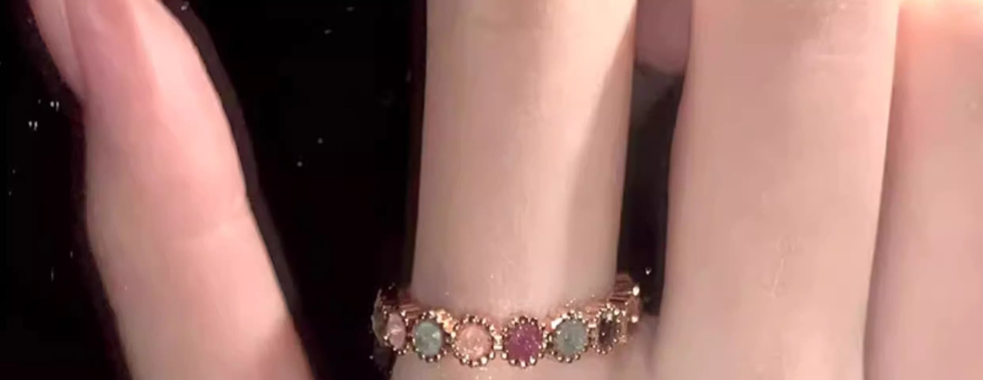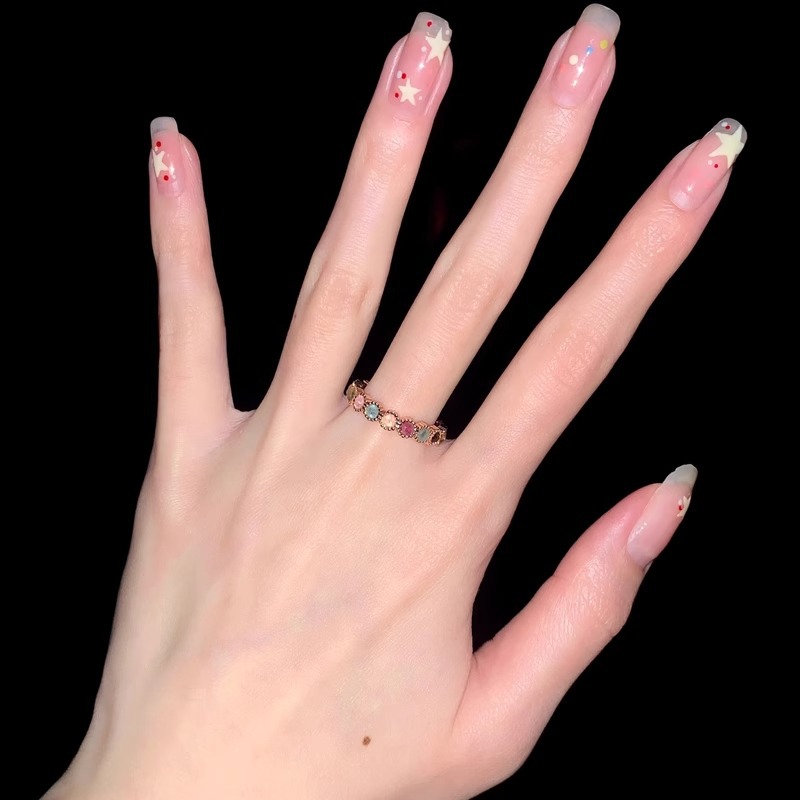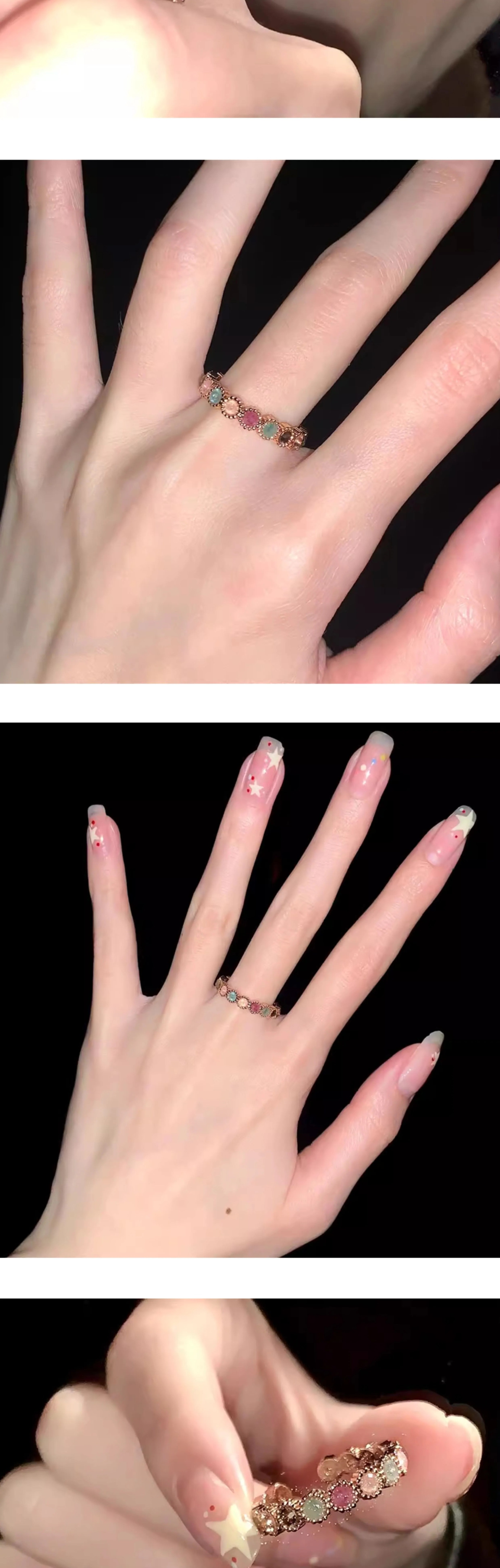 彩虹碧玺戒指女小众设计开口可调节指圈ins风彩钻饰品高级感指环