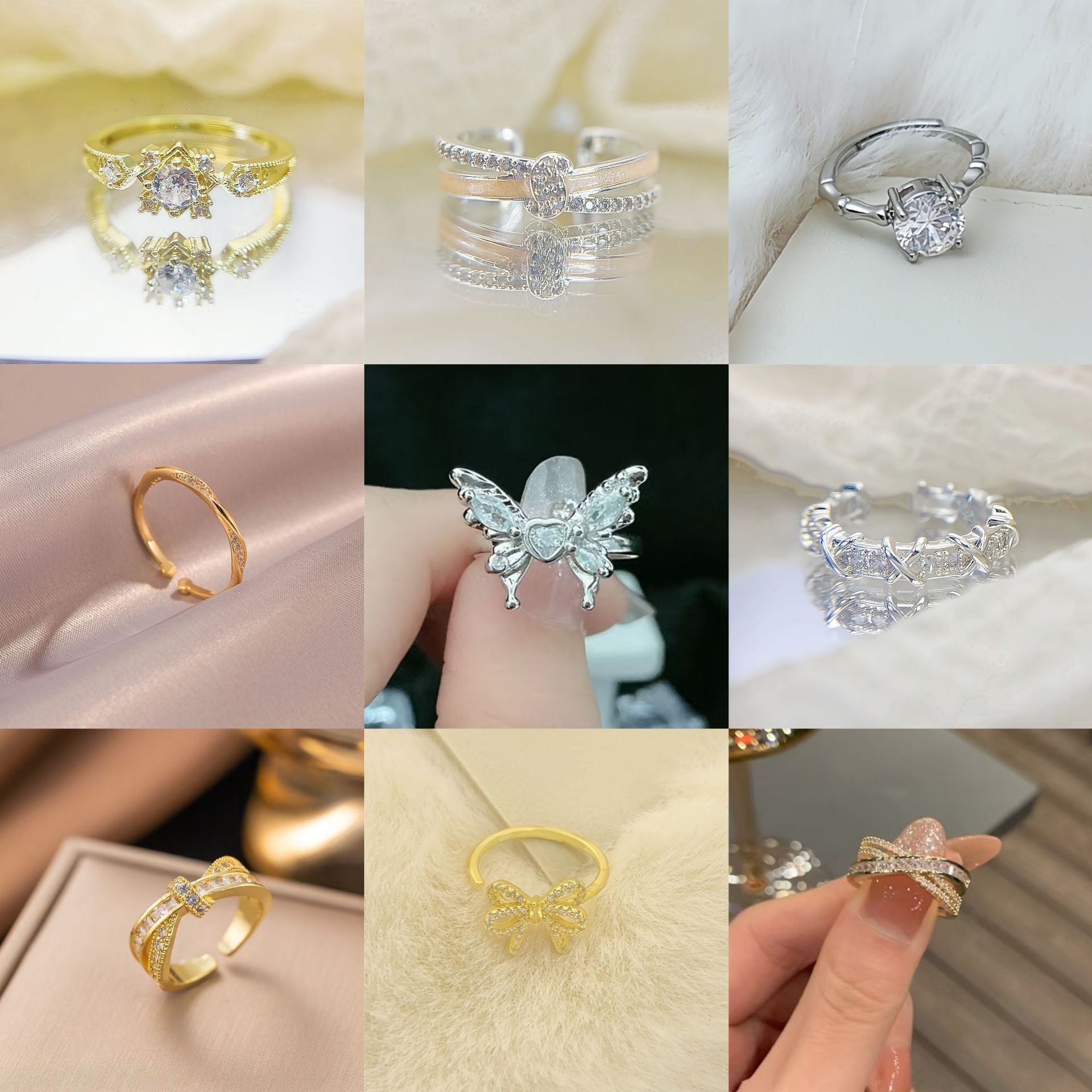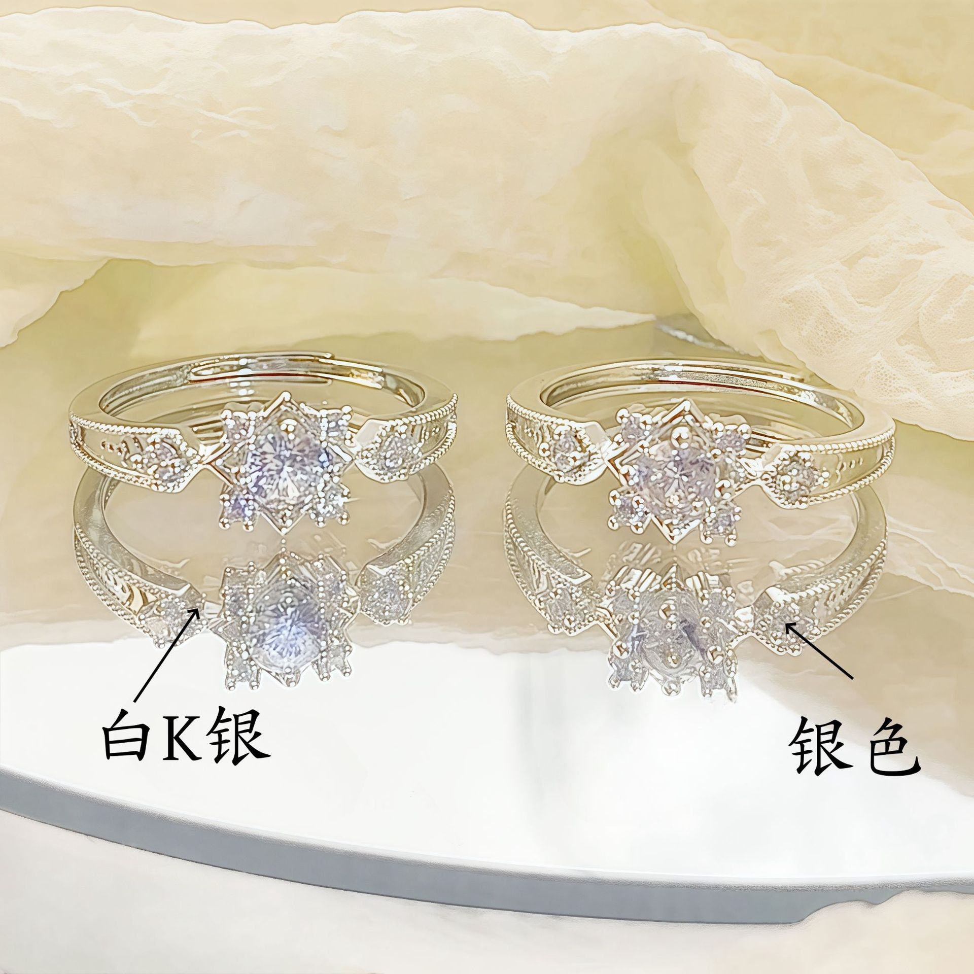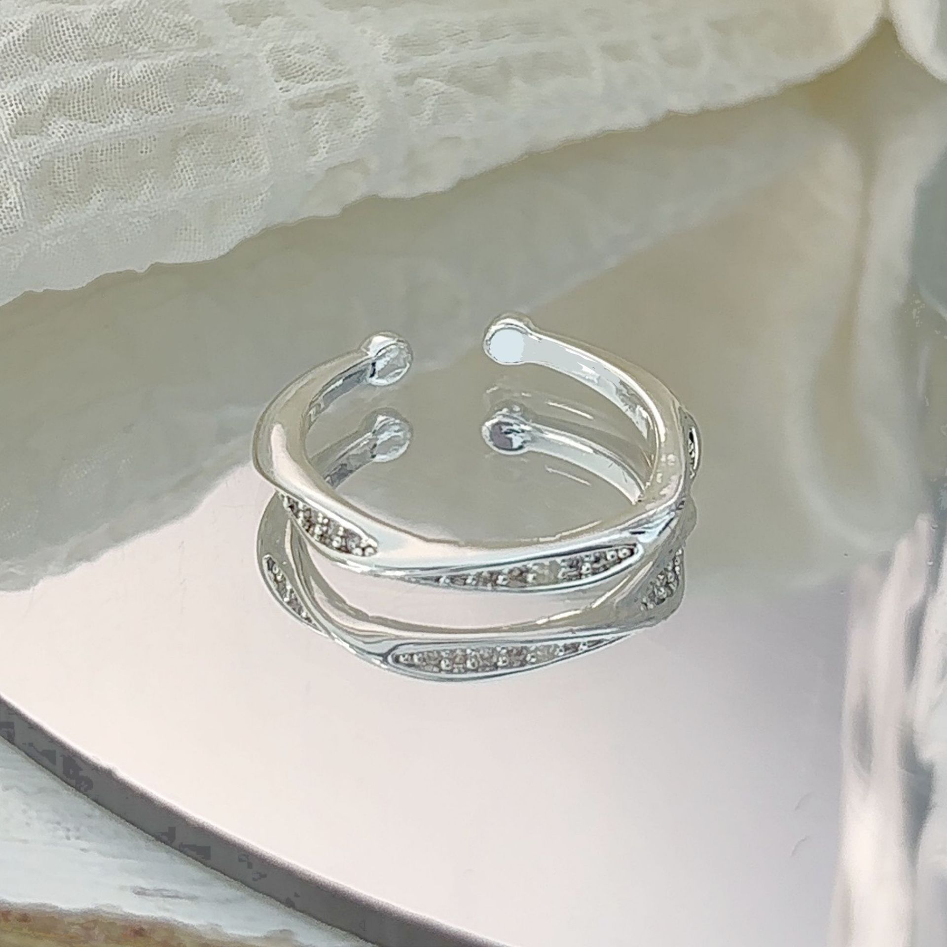 韩版小众高级戒指轻奢高级感素圈套装食指戒百搭气质指环情侣女
