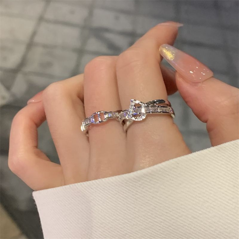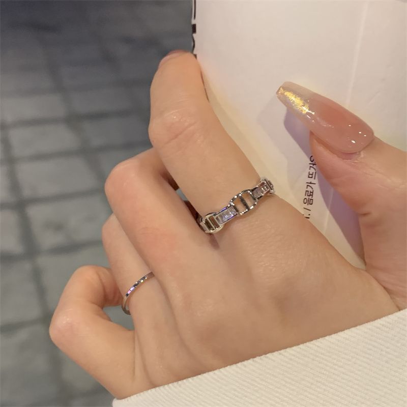 银色D字母猪鼻戒指女小众时尚个性开口食指戒冷淡风轻奢微镶指环