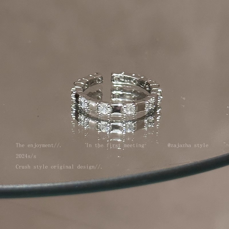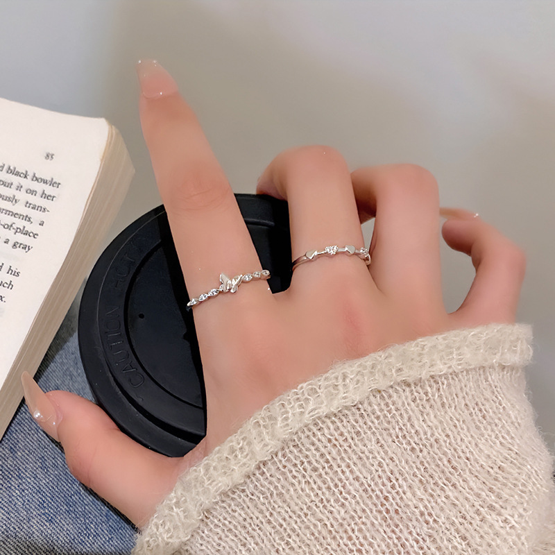 高级感百搭锆石戒指韩国小众爱心轻奢素圈套装食指戒气质指环批发