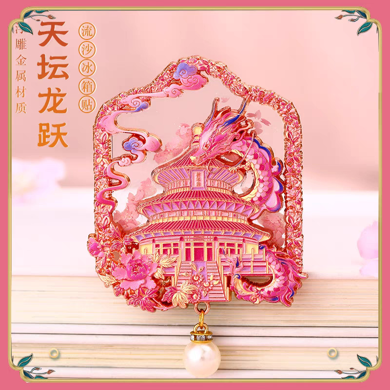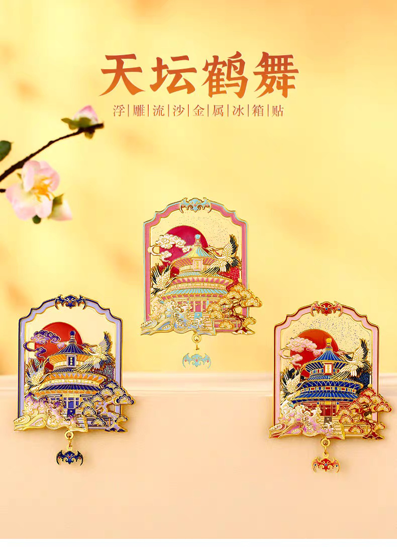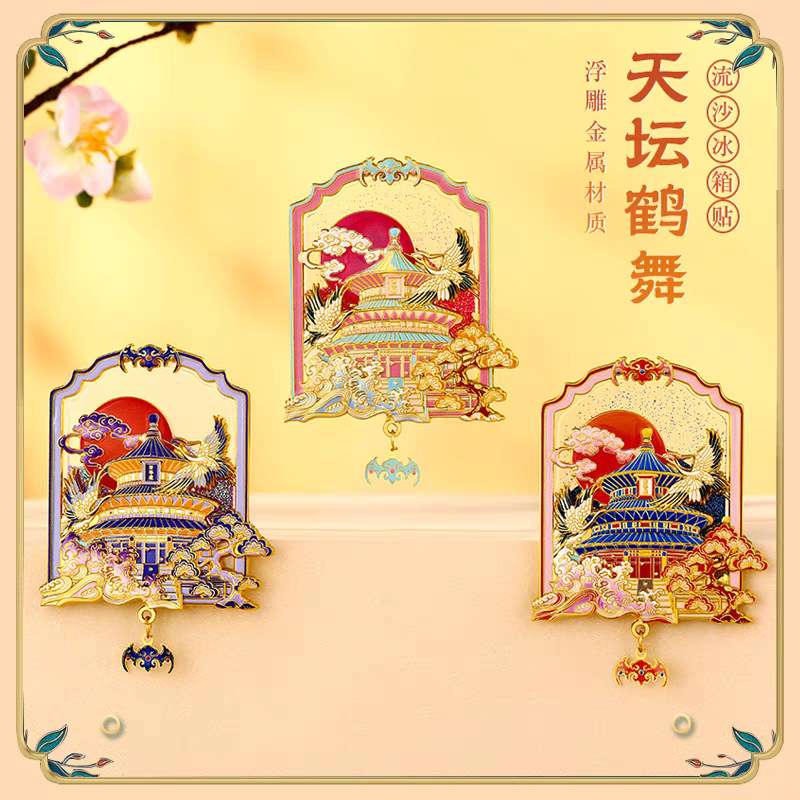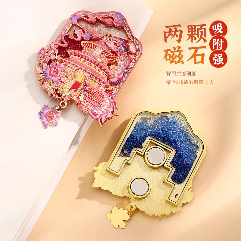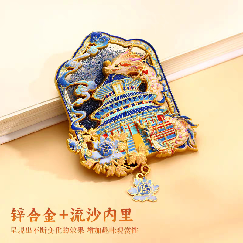 金属流沙冰箱贴定制城市景区烤漆流麻冰箱贴定做锌合金文创冰箱贴