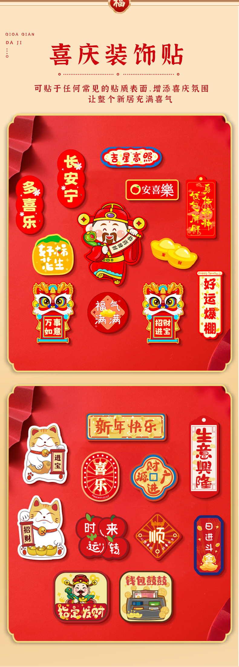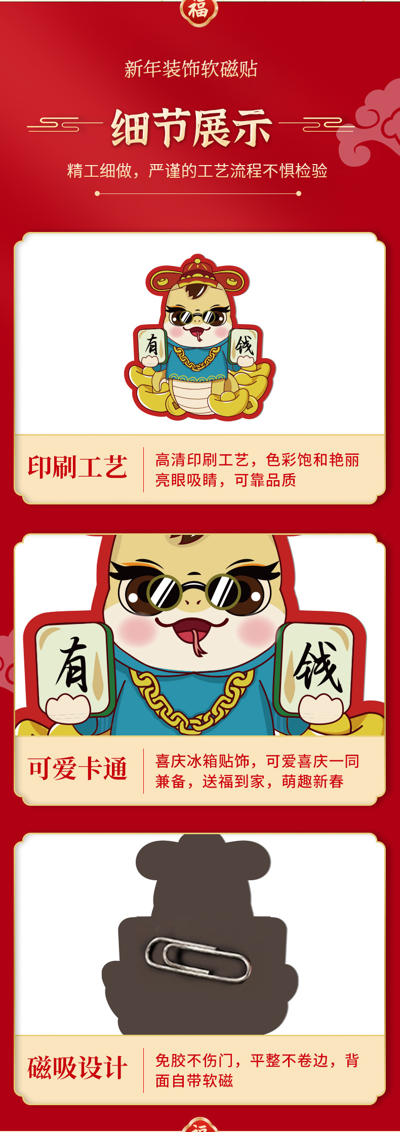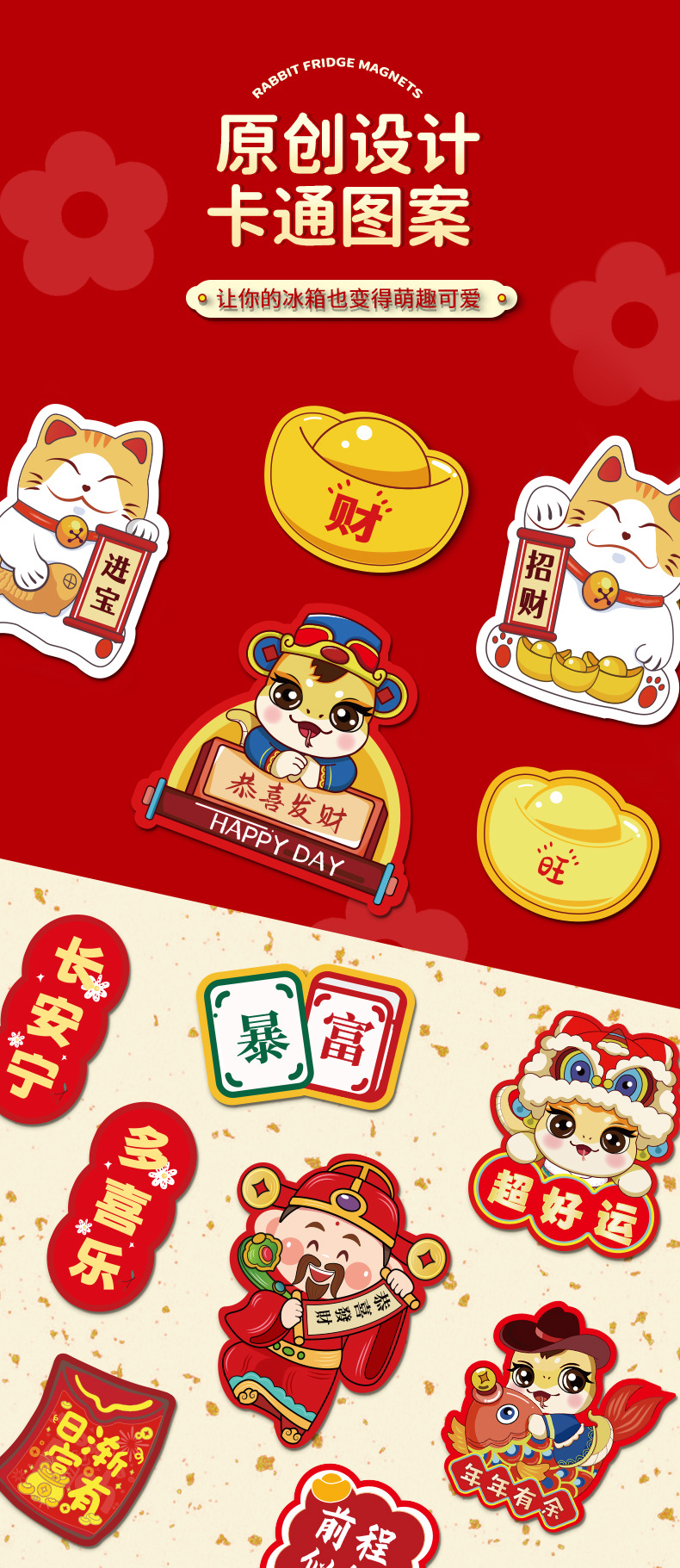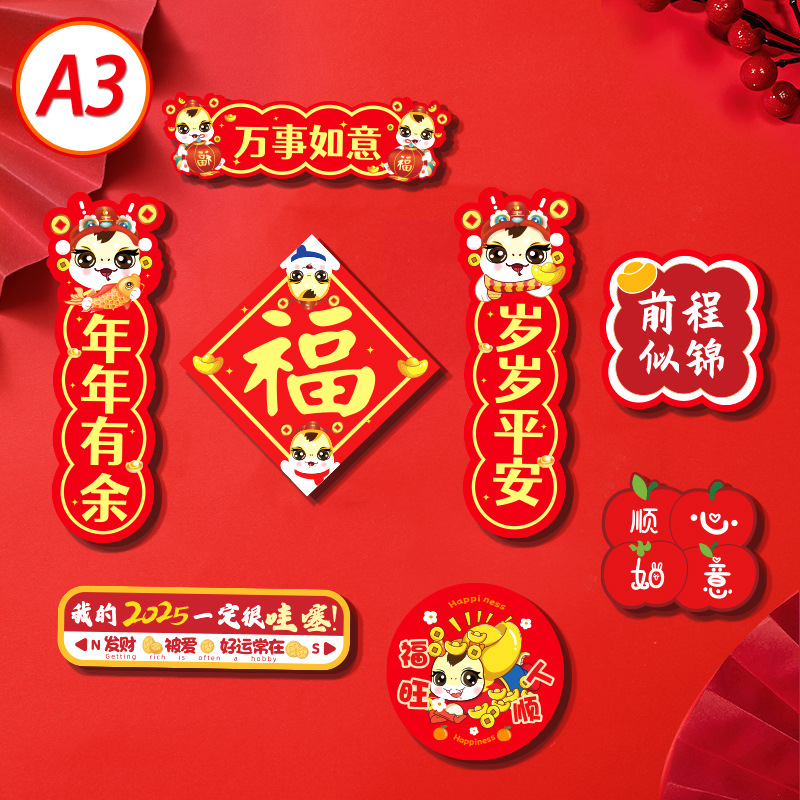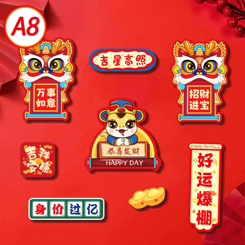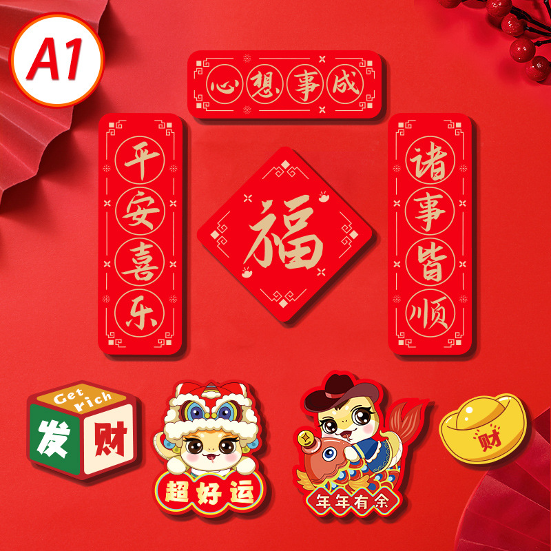 2025蛇年新年冰箱贴 批发创意文字磁力贴 磁性冰箱贴国潮装饰贴