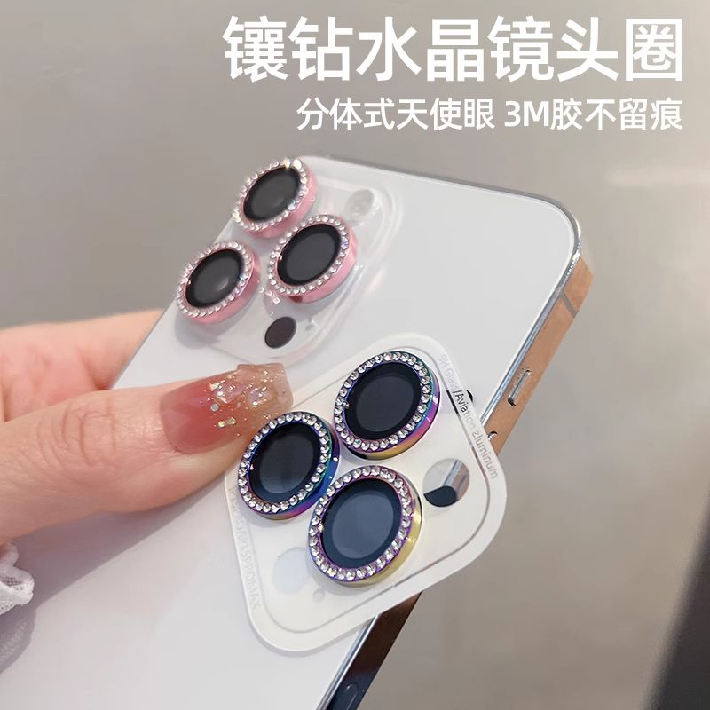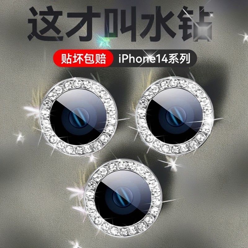 苹果16/14镶钻镜头膜iPhone15Promax镜头贴12/13分体奢华后摄像头