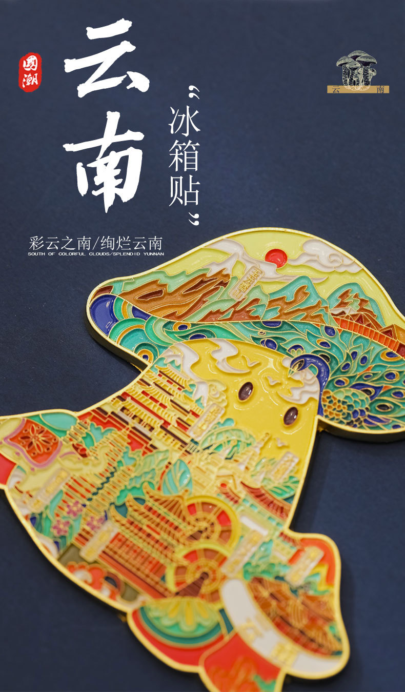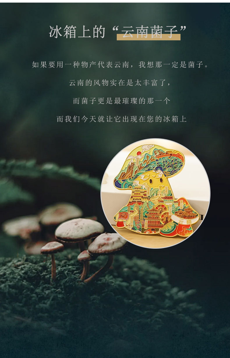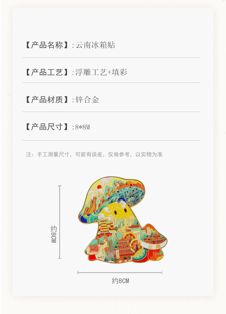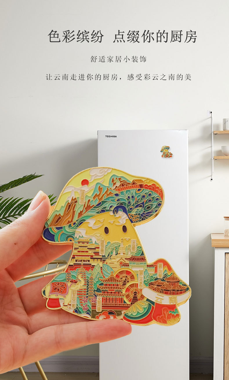【原创】云南丽江古城蘑菇冰箱贴创意城市文创旅游纪念品金属磁吸
