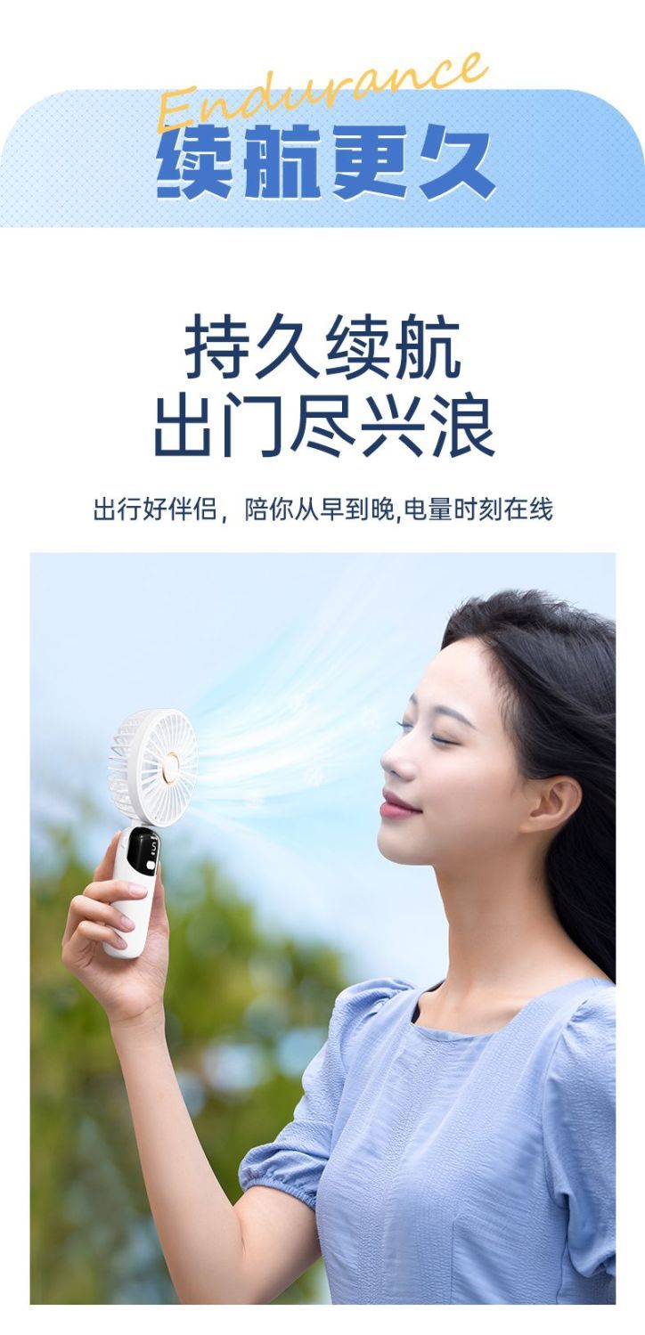 吃辅食专用新款手持小风扇usb充电数显户外小型婴儿小孩大风静音