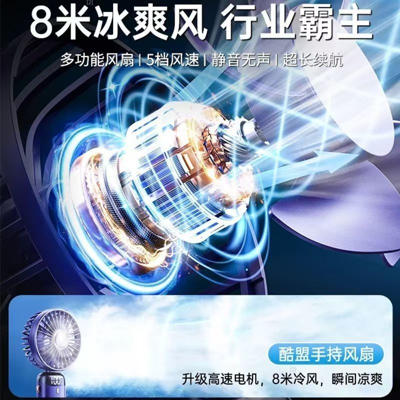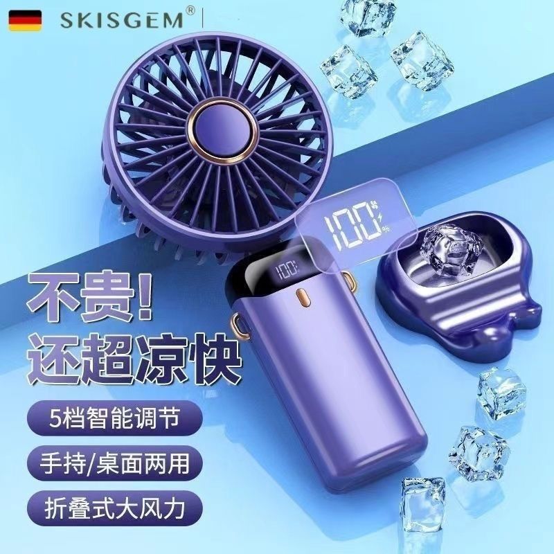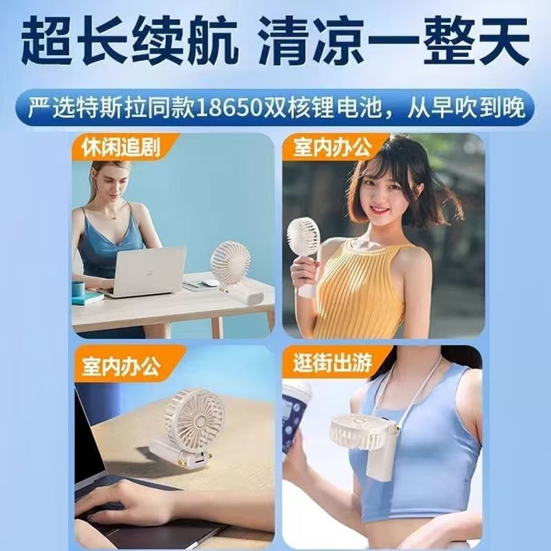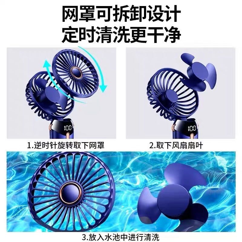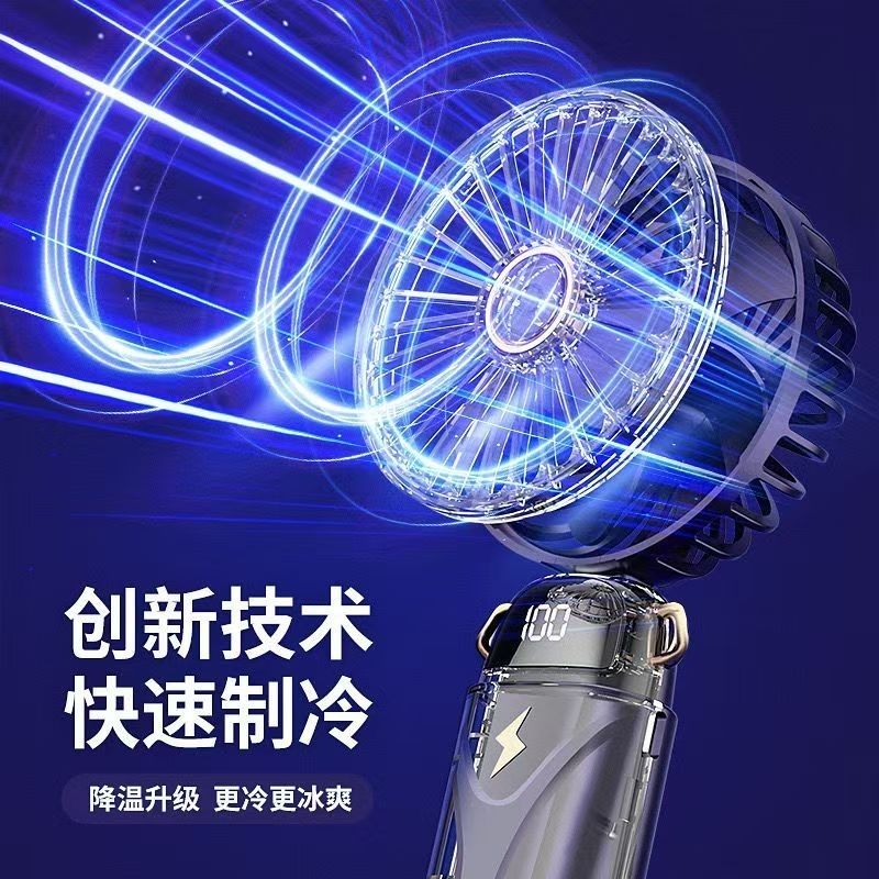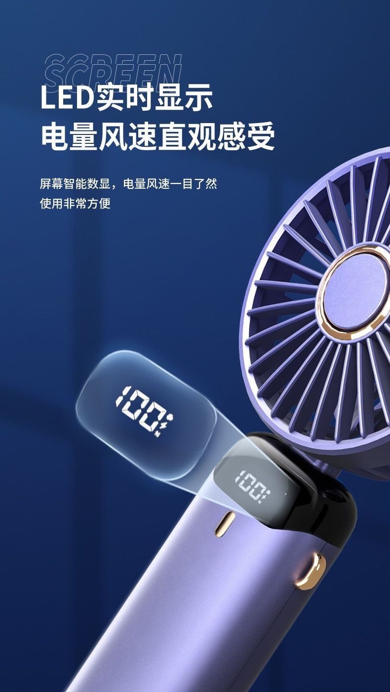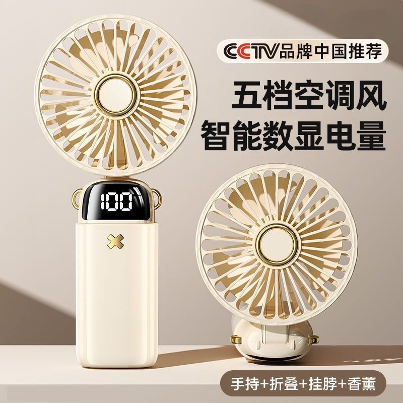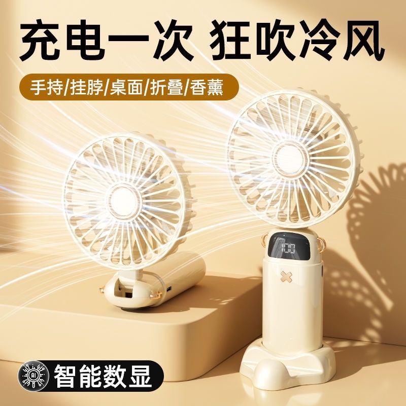 跨境N15手持风扇迷你便携折叠挂脖USB充电数显桌面工厂直发小风扇