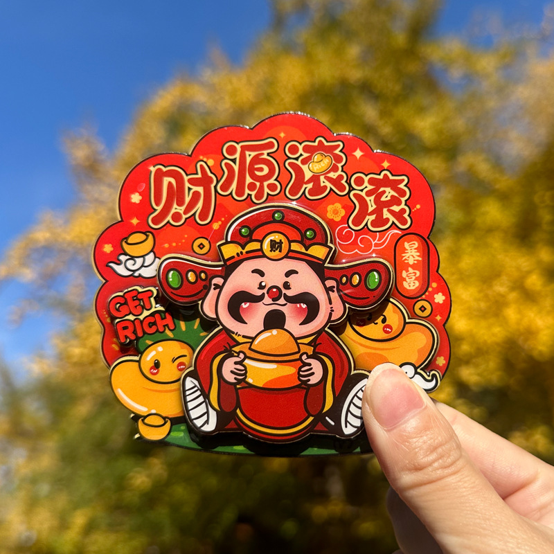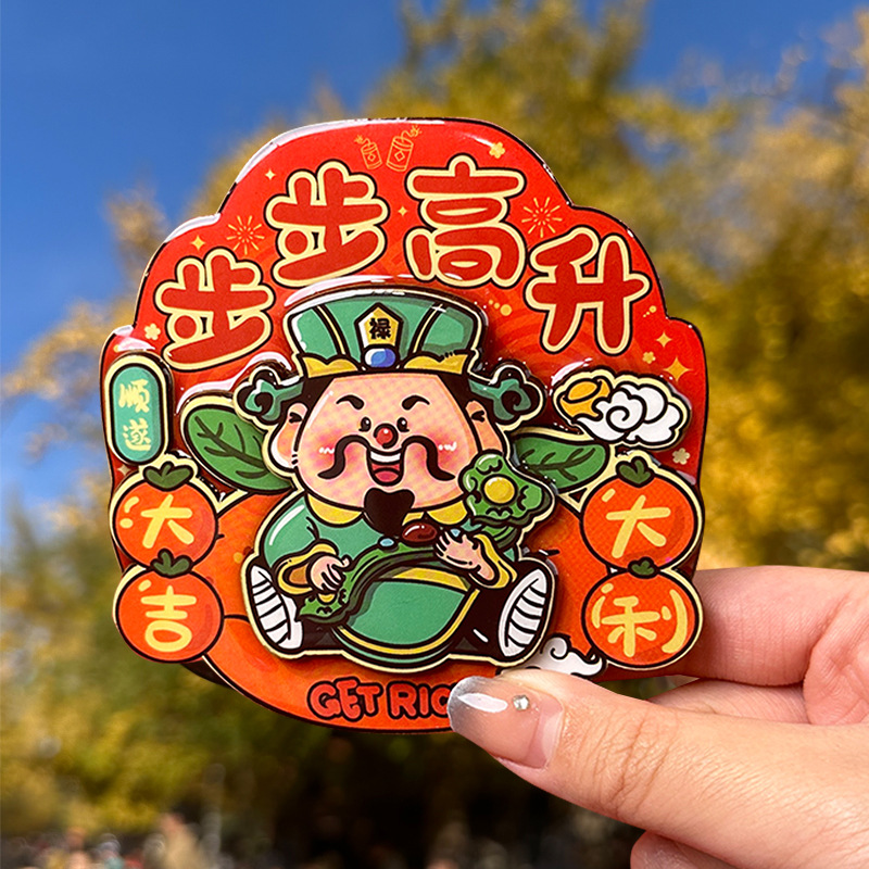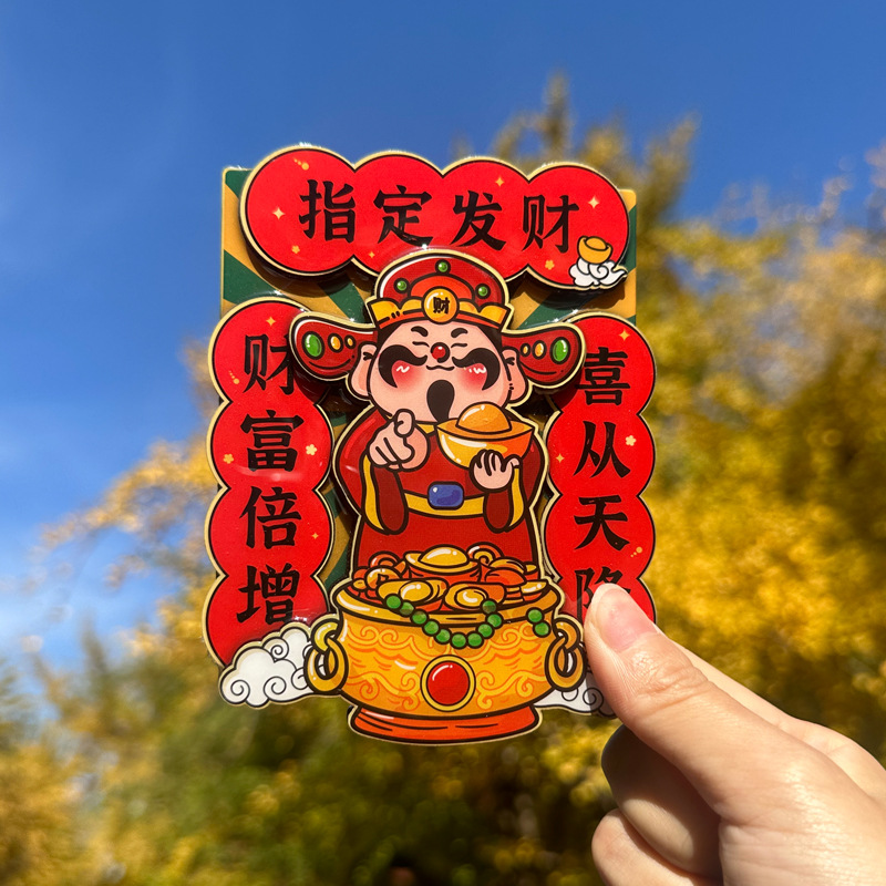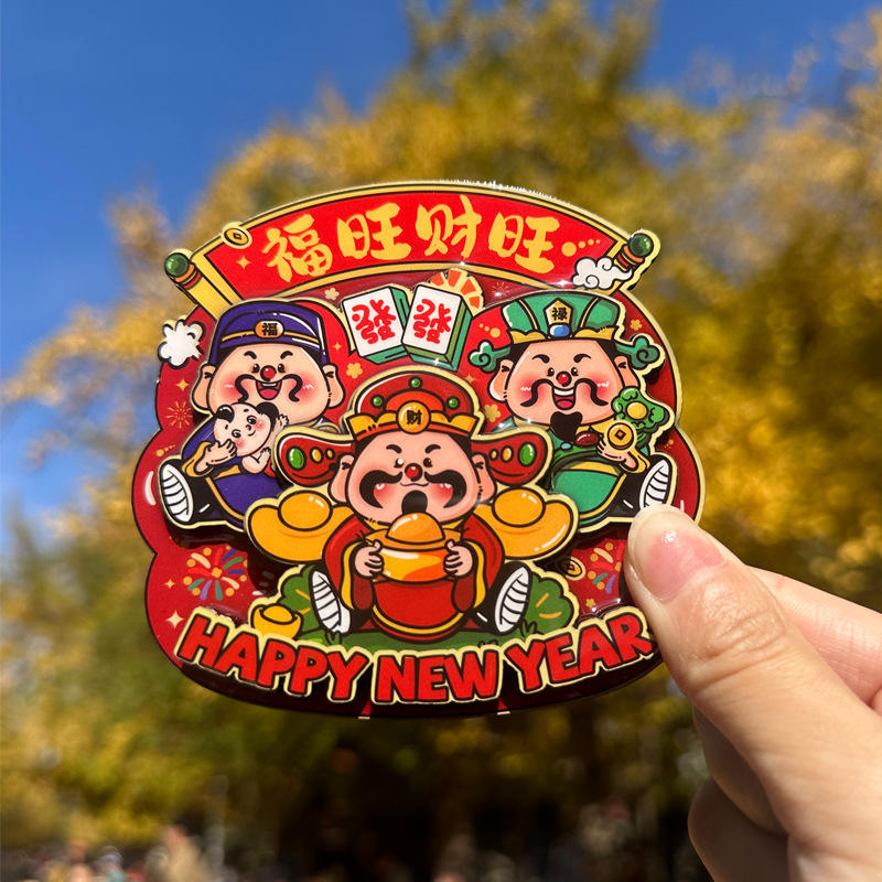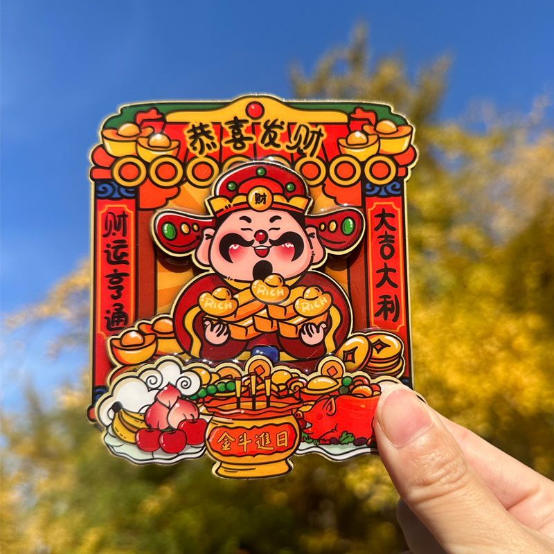 立体财神爷冰箱贴新年春节可爱卡通喜庆入户门装饰贴创意磁性贴饰