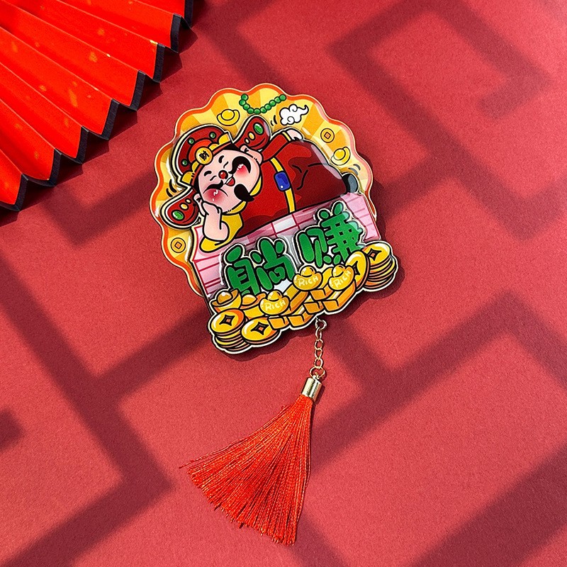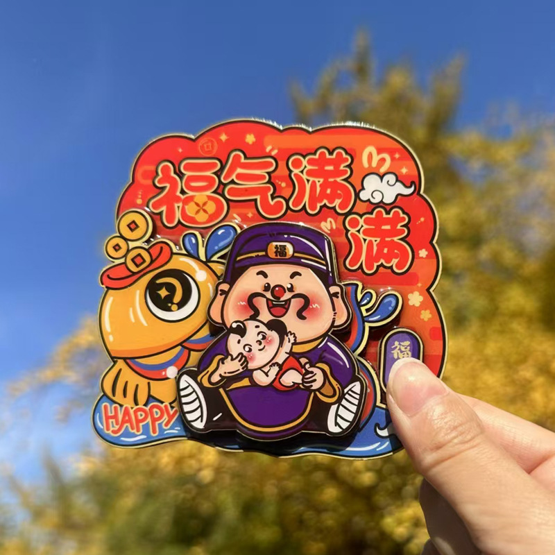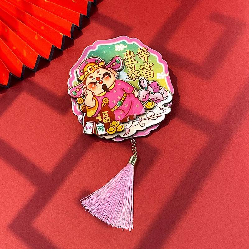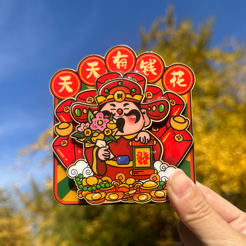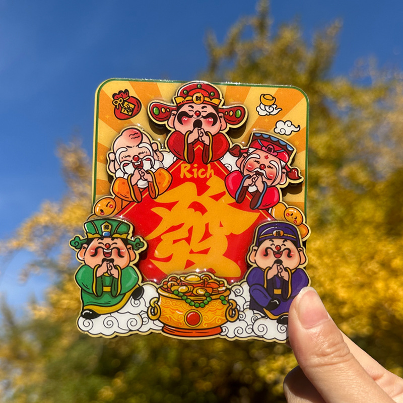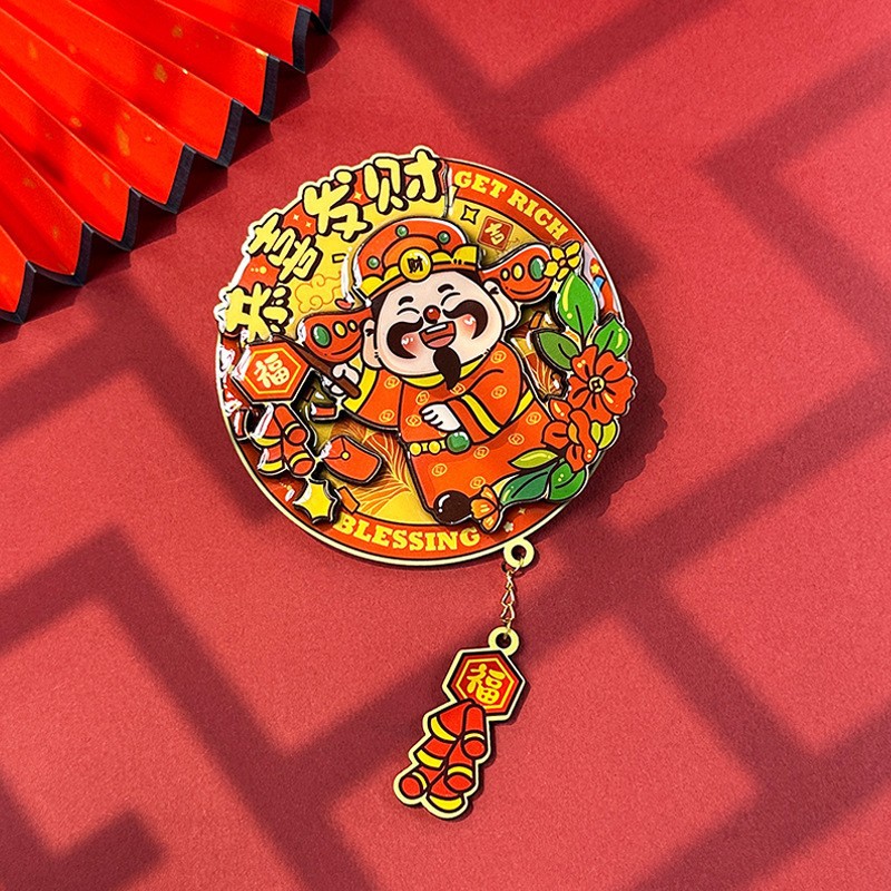 立体财神爷冰箱贴新年春节可爱卡通喜庆入户门装饰贴创意磁性贴饰
