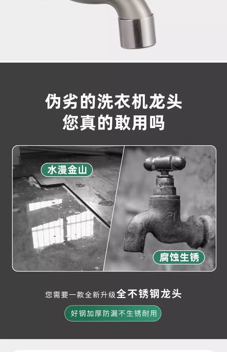 | high-end version-stainless steel four-point washing machine faucet(高配版-不锈钢四分洗衣机龙头) | USD $1.18 | 999999 piece available |