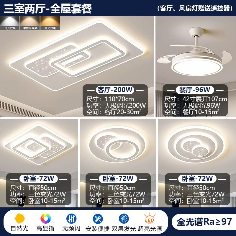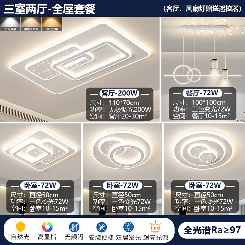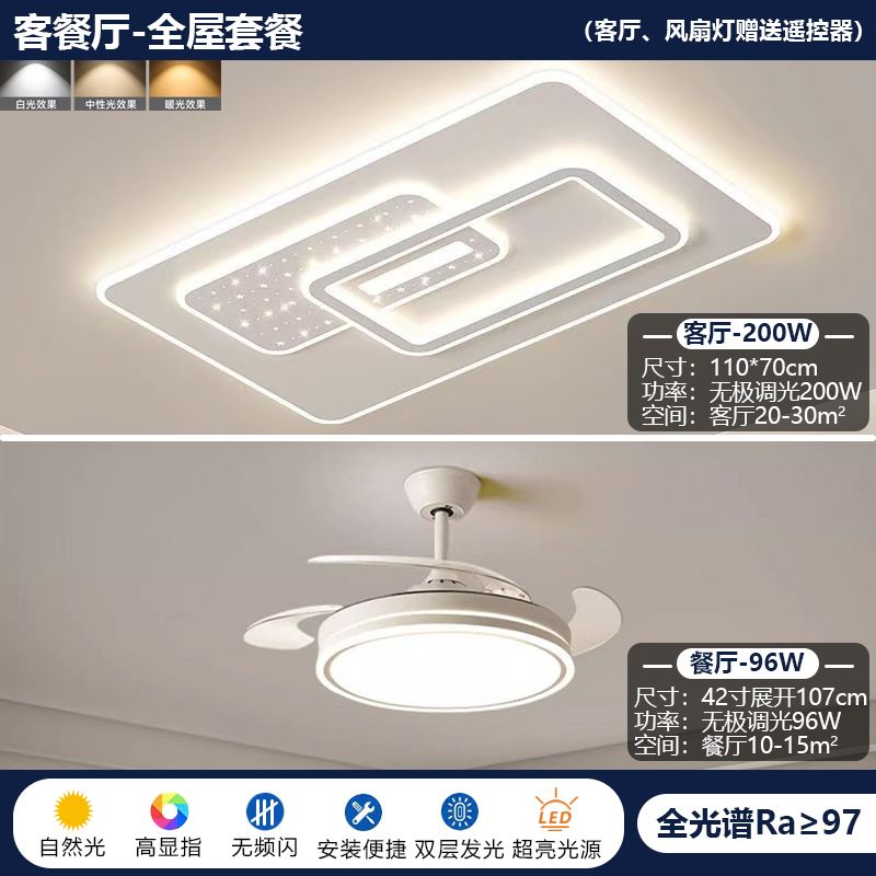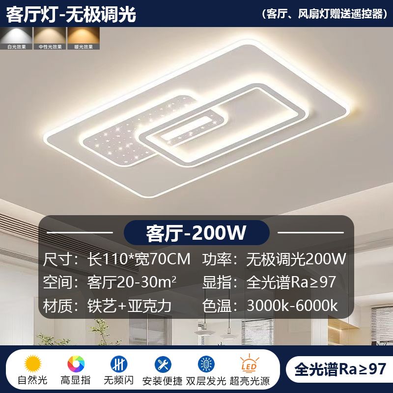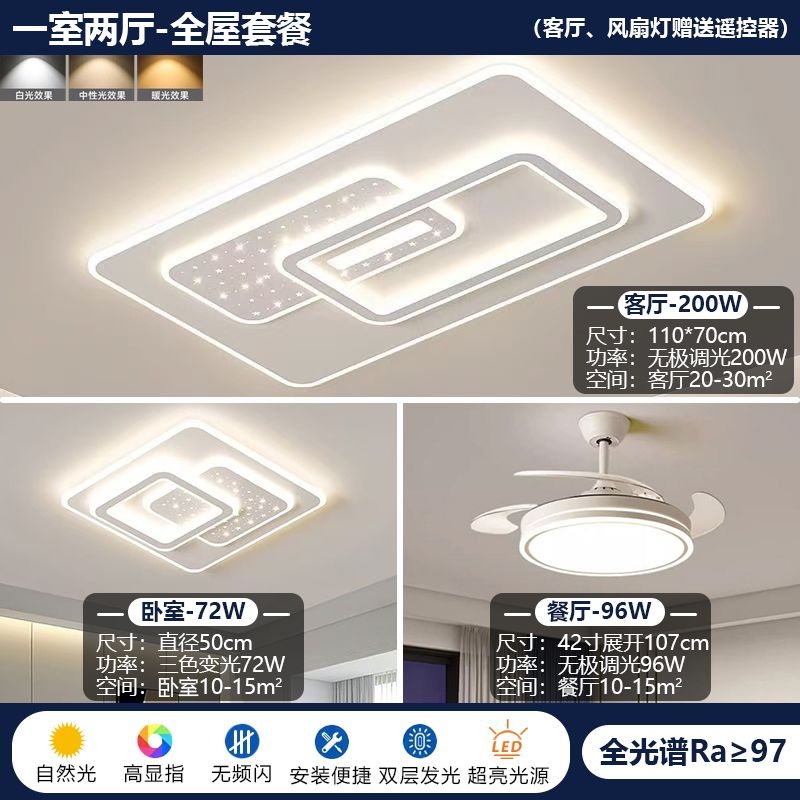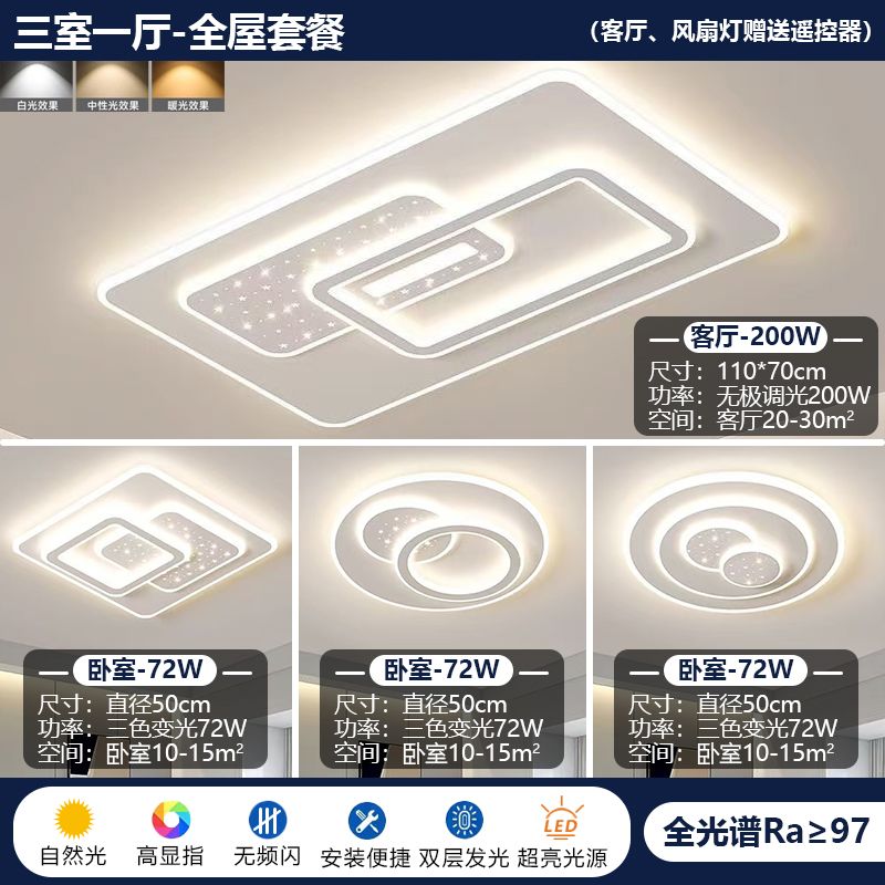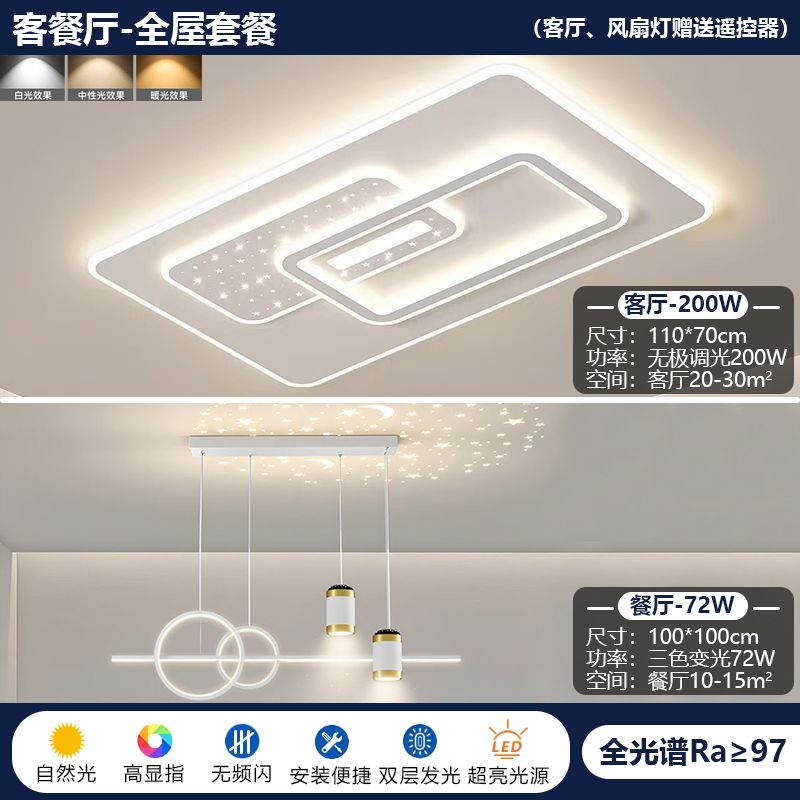 中山灯具长方形客厅星空吸顶灯卧室新款现代简约大气组合全屋套餐