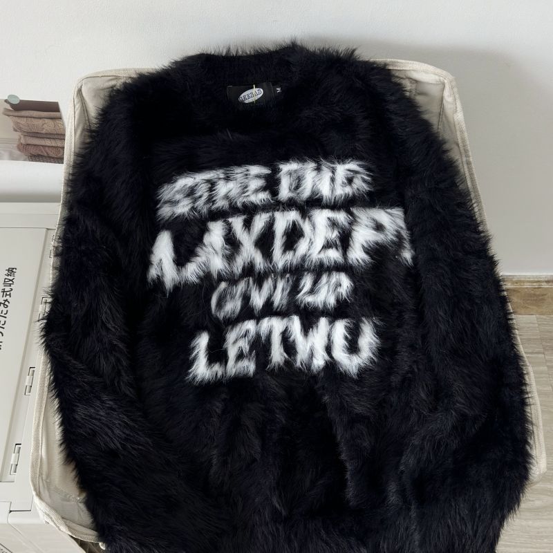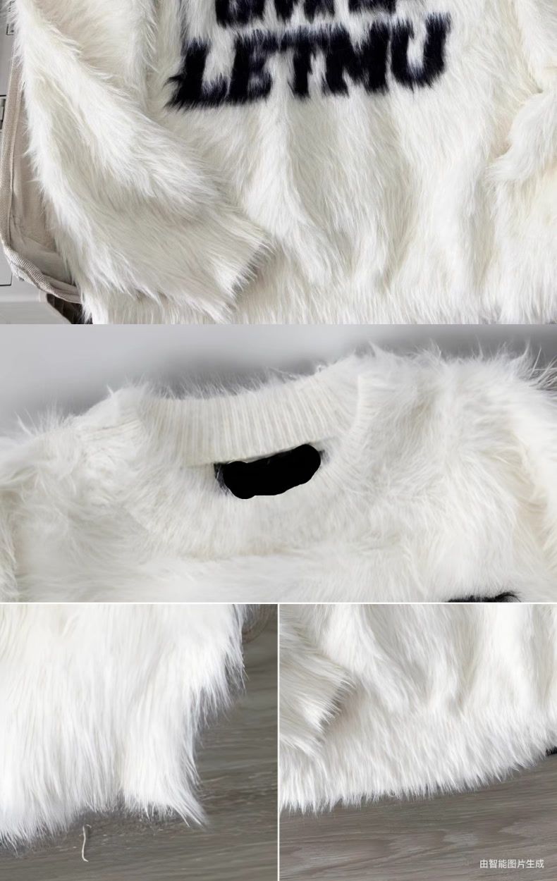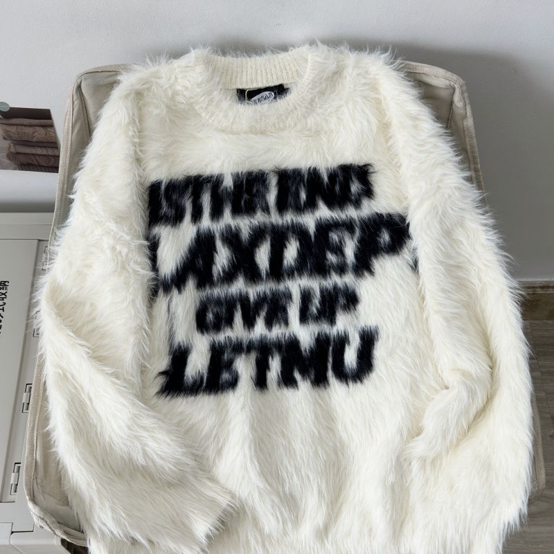 美式复古情侣毛衣男女秋冬季宽松字母仿貂毛小众慵懒风圆领针织衫