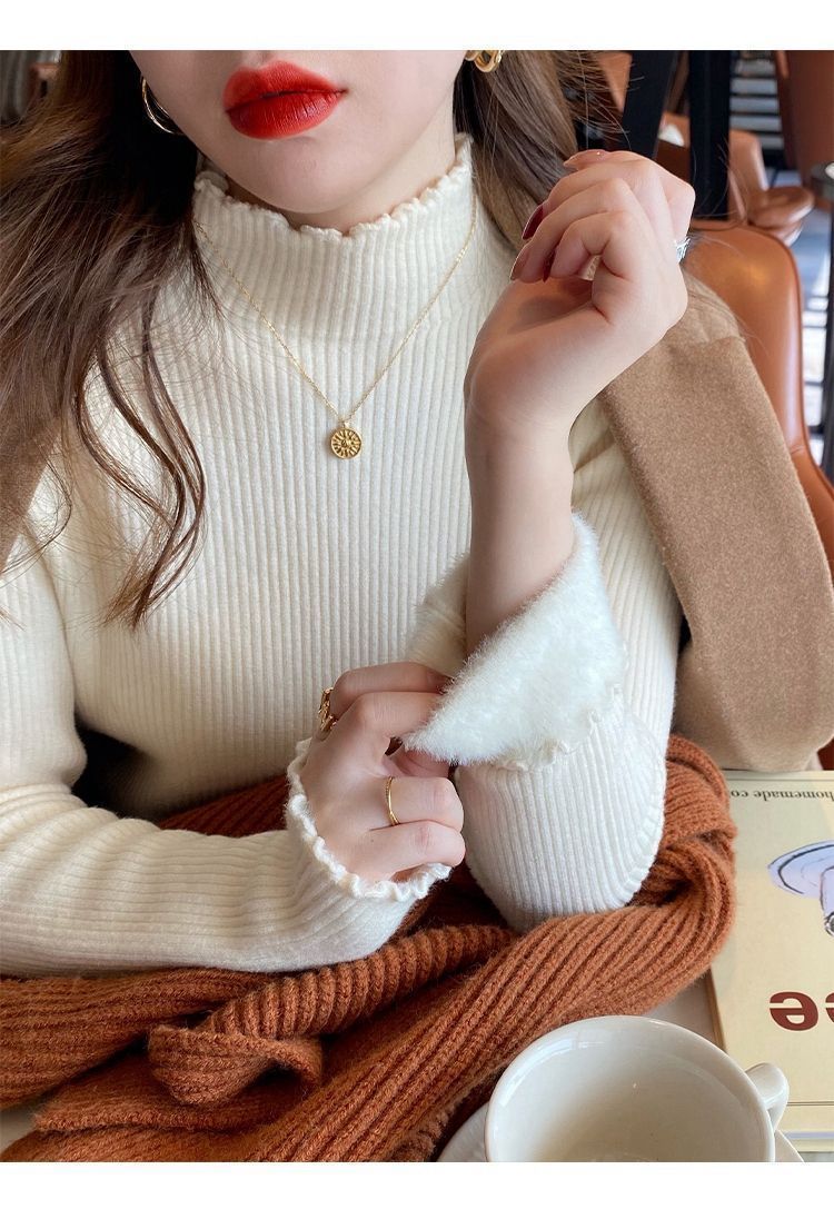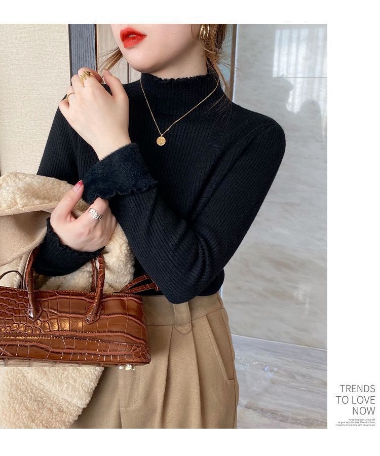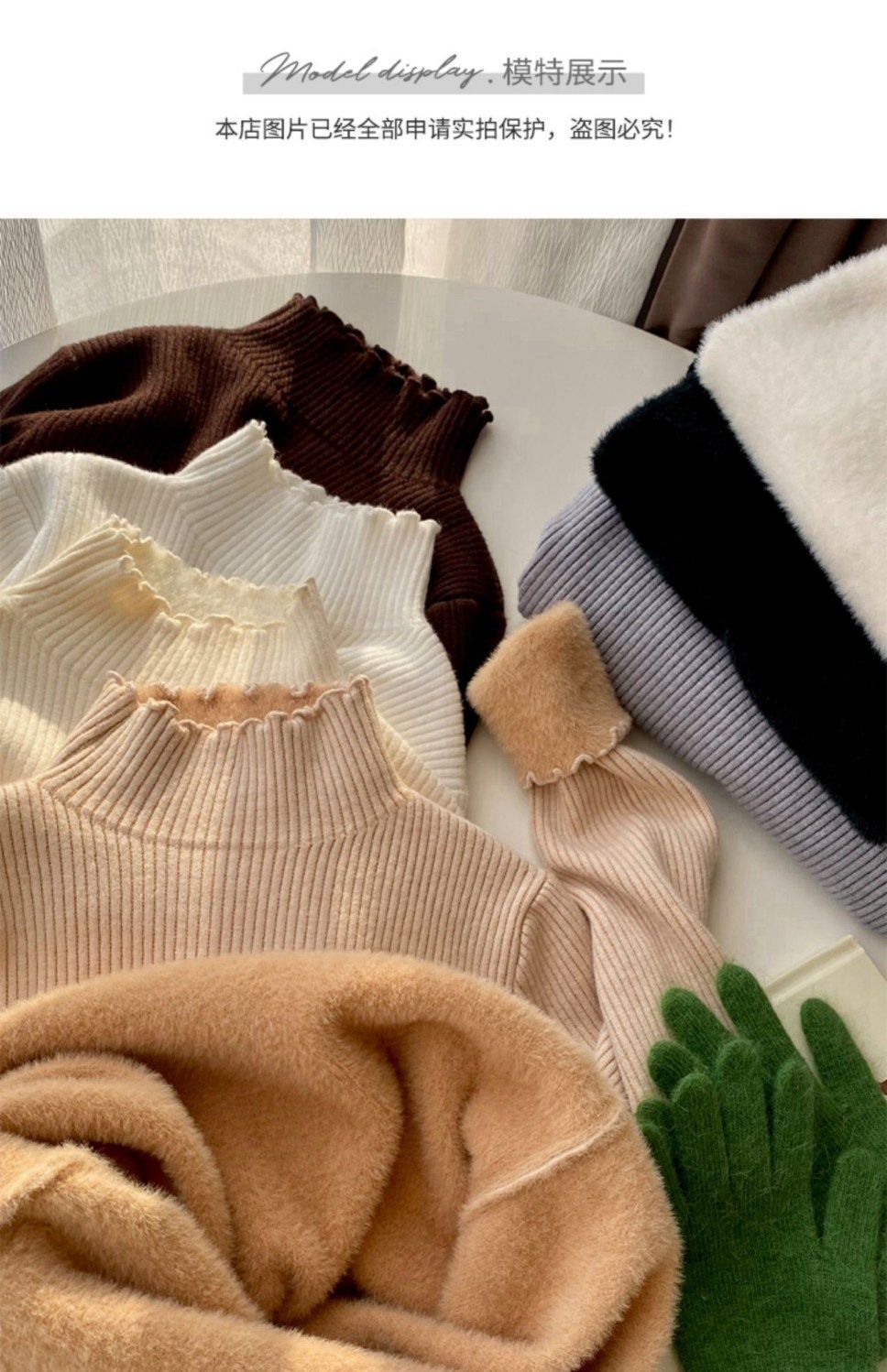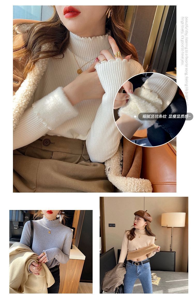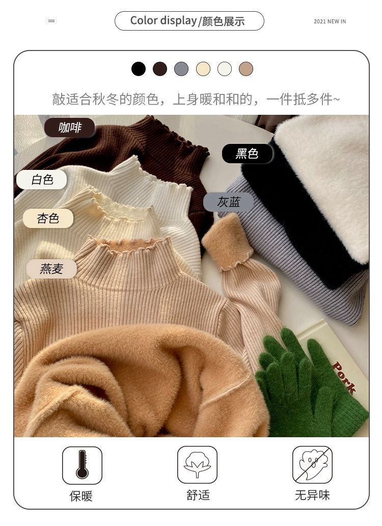 软糯风毛衣女秋冬季加厚半高领针织一体绒打底衫保暖内搭加绒上衣