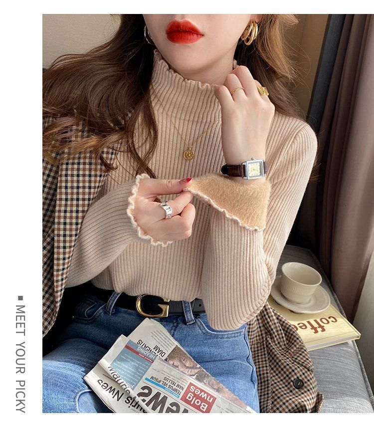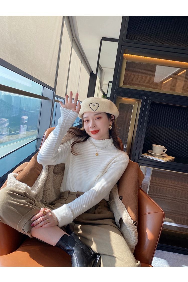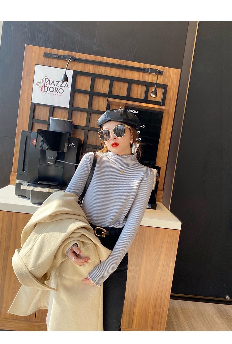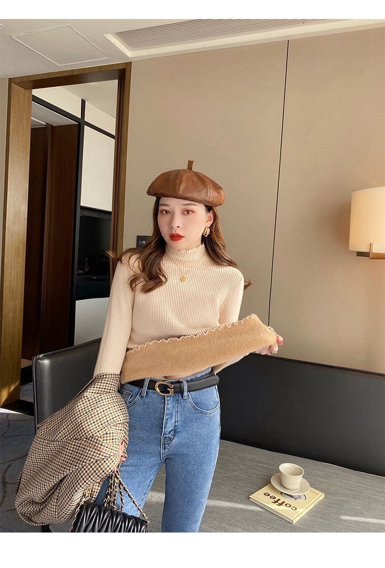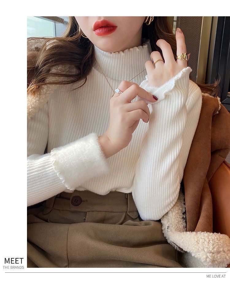 软糯风毛衣女秋冬季加厚半高领针织一体绒打底衫保暖内搭加绒上衣
