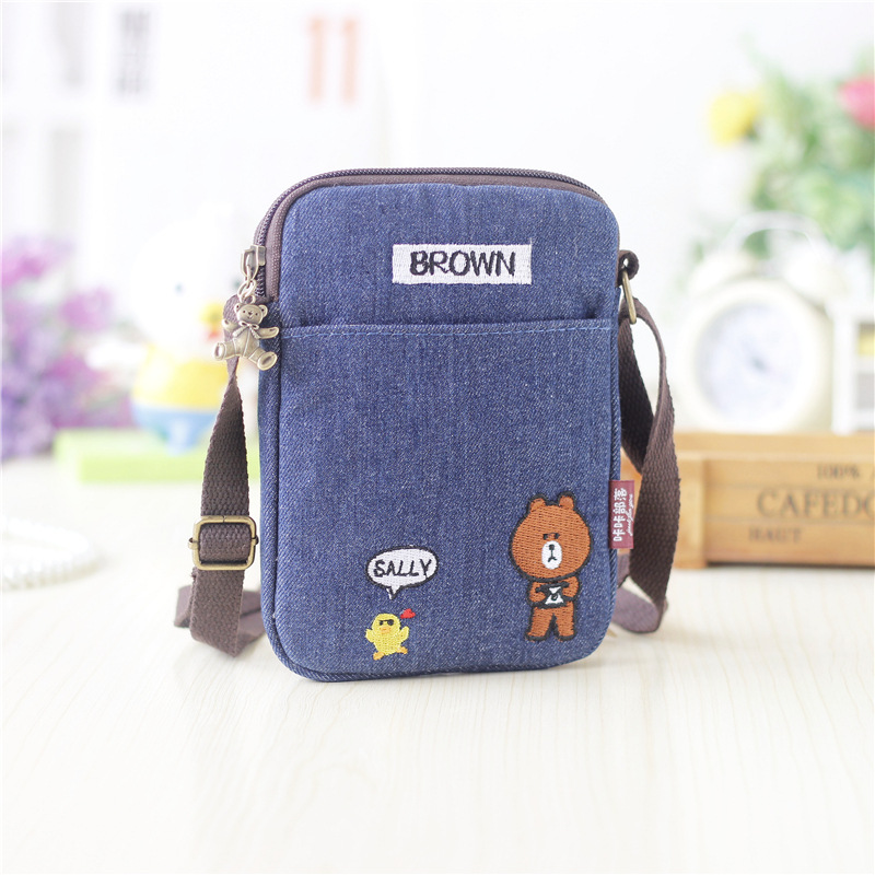 帆布斜跨女包个性创意卡通手拎斜挎两用布艺大屏手机包