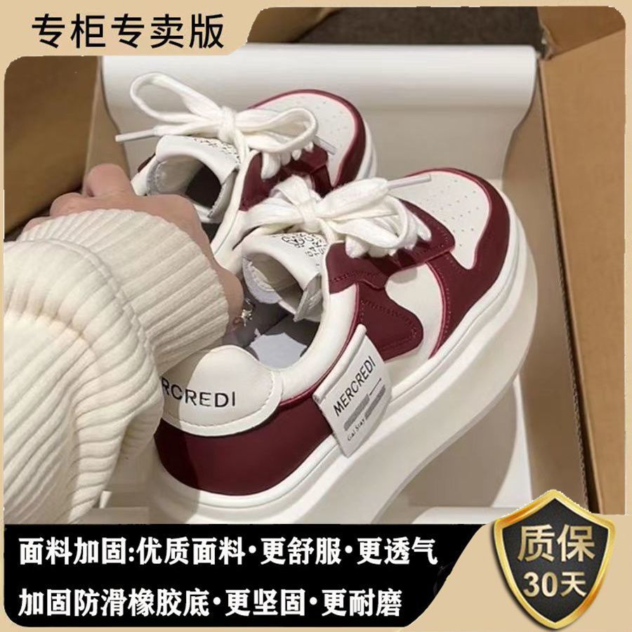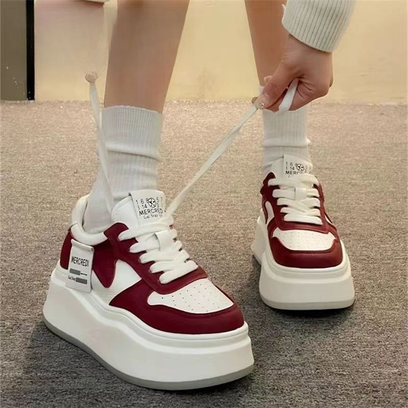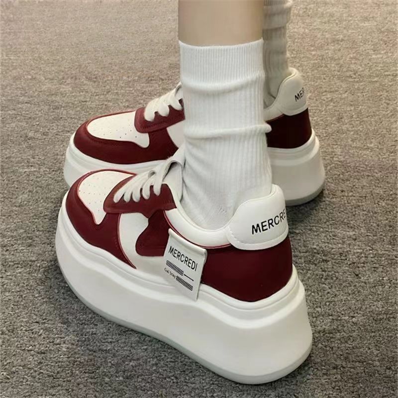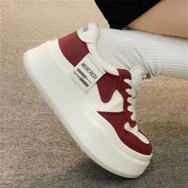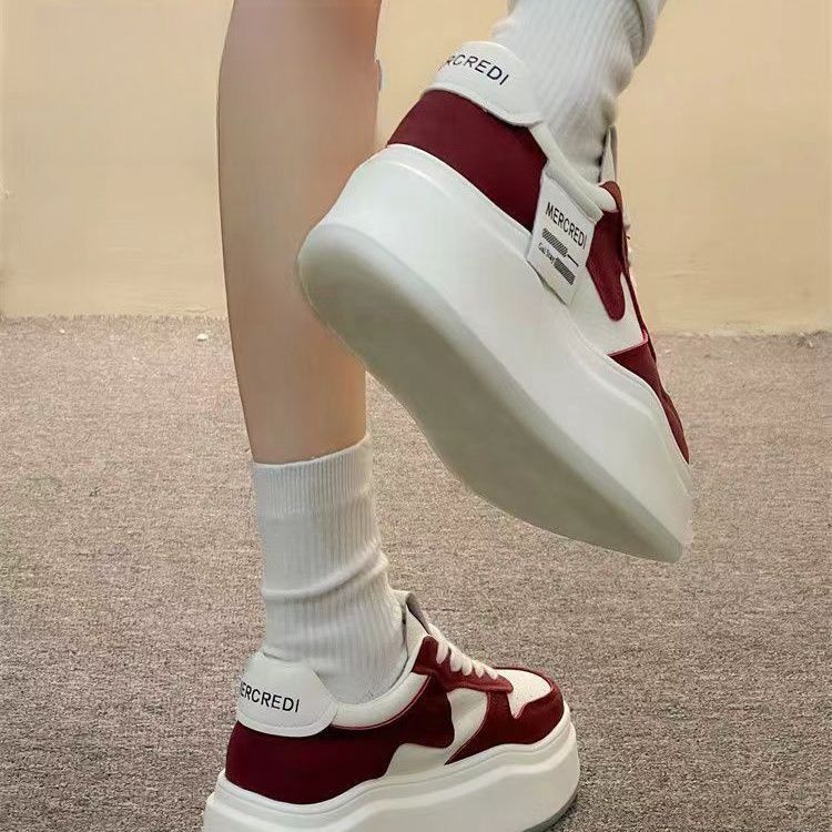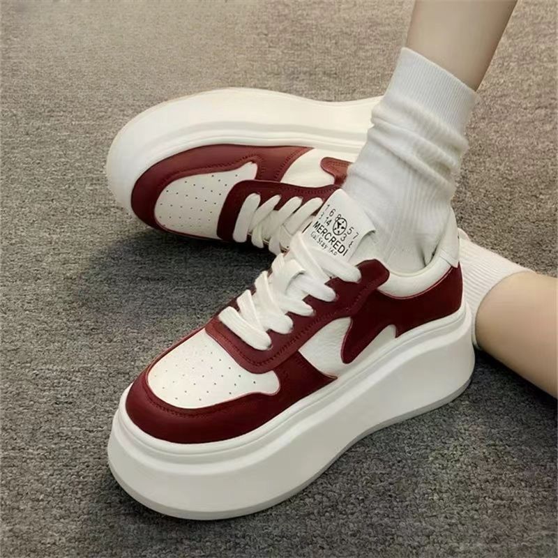 高颜值红色复古小白鞋女原创小众鞋2024春季新款厚底增高韩版街鞋