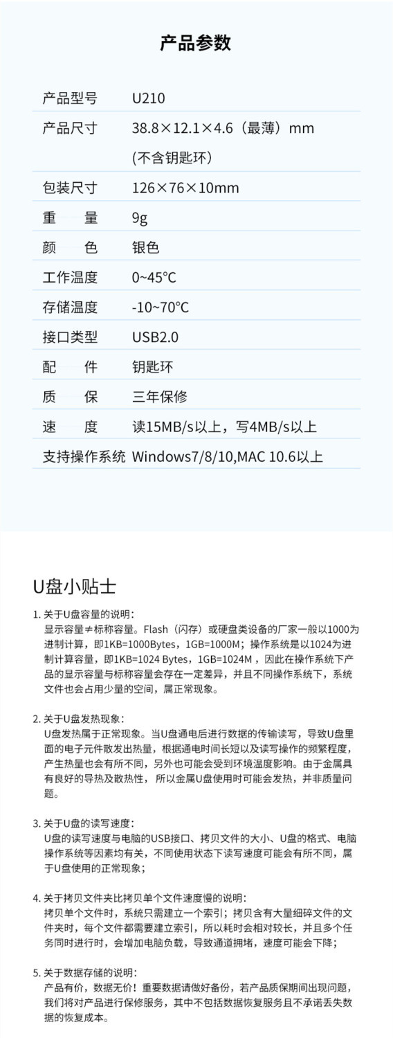 爱国者(U210)USB2.0 U盘 金属迷你电脑手机优盘 大学资料拷贝传输
