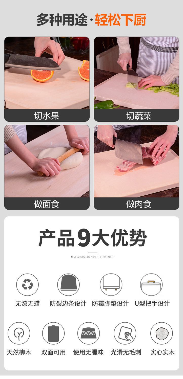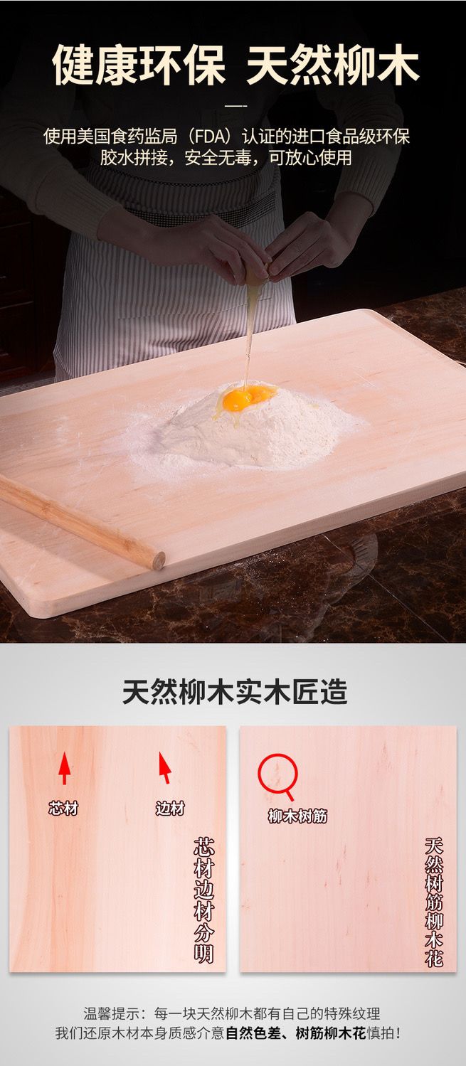 柳木面板菜板家用和面板厨房擀面揉面赶面案板砧板实木超大特大号