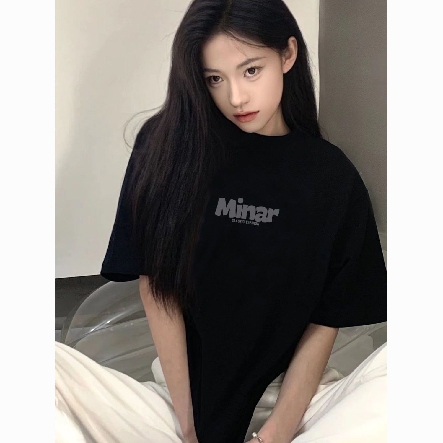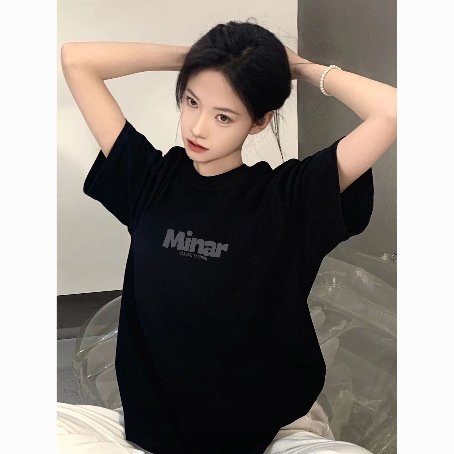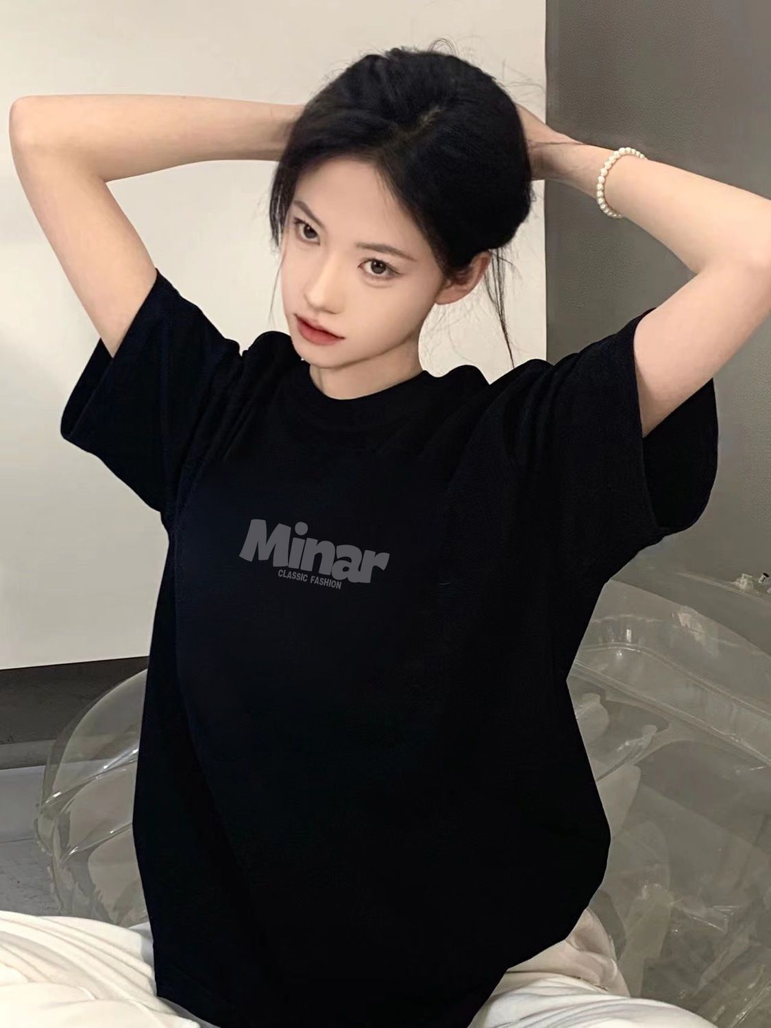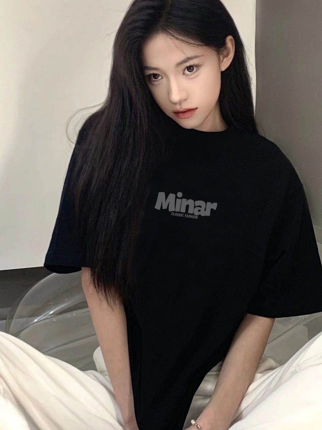 夏季爆款简约字母短袖美式复古oversize宽松上衣ins时尚甜美小众T