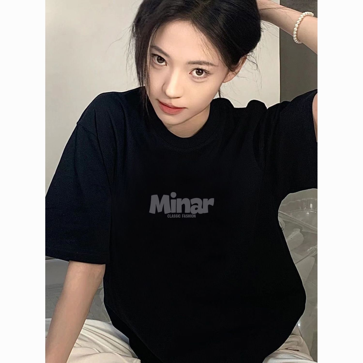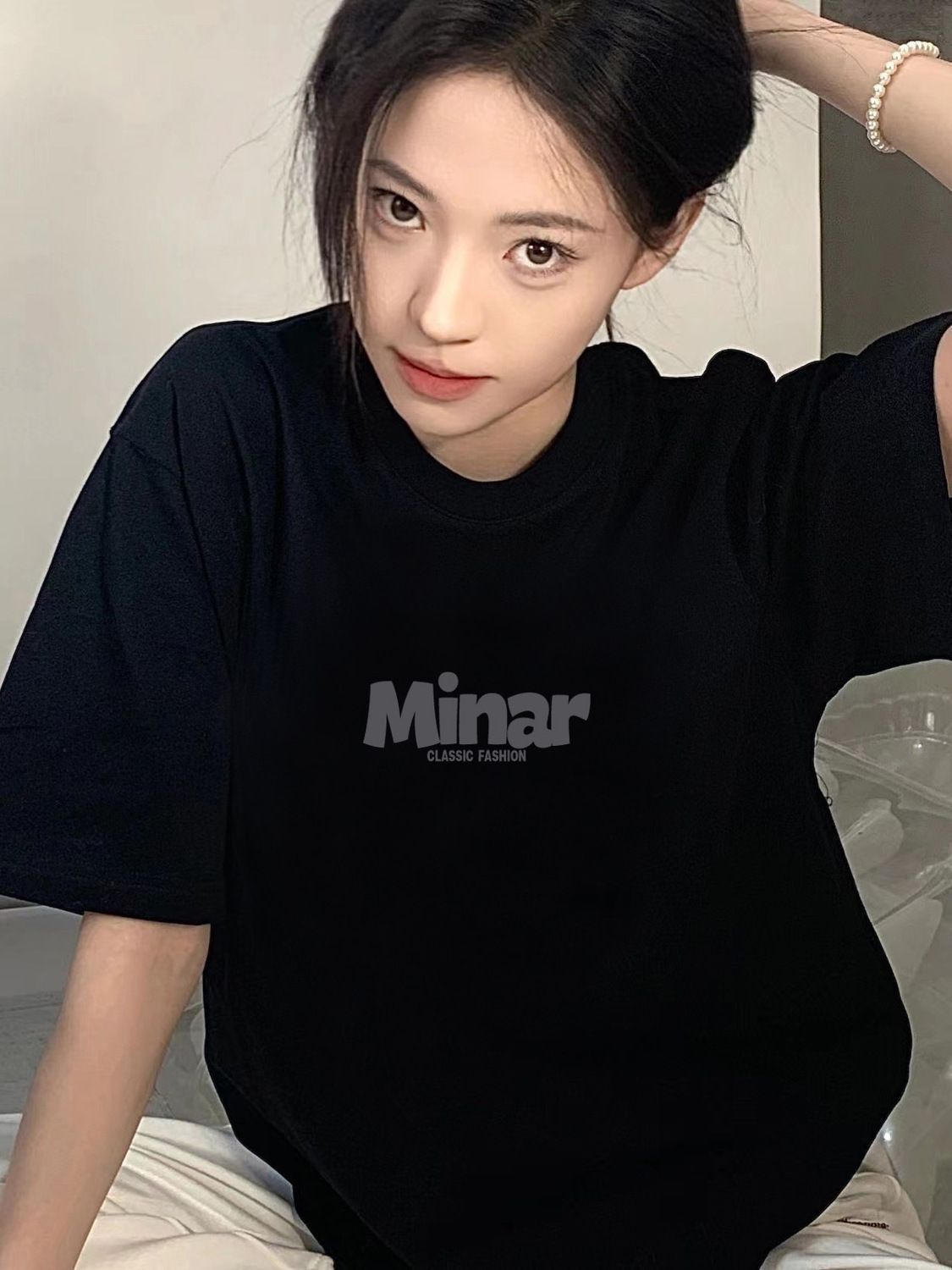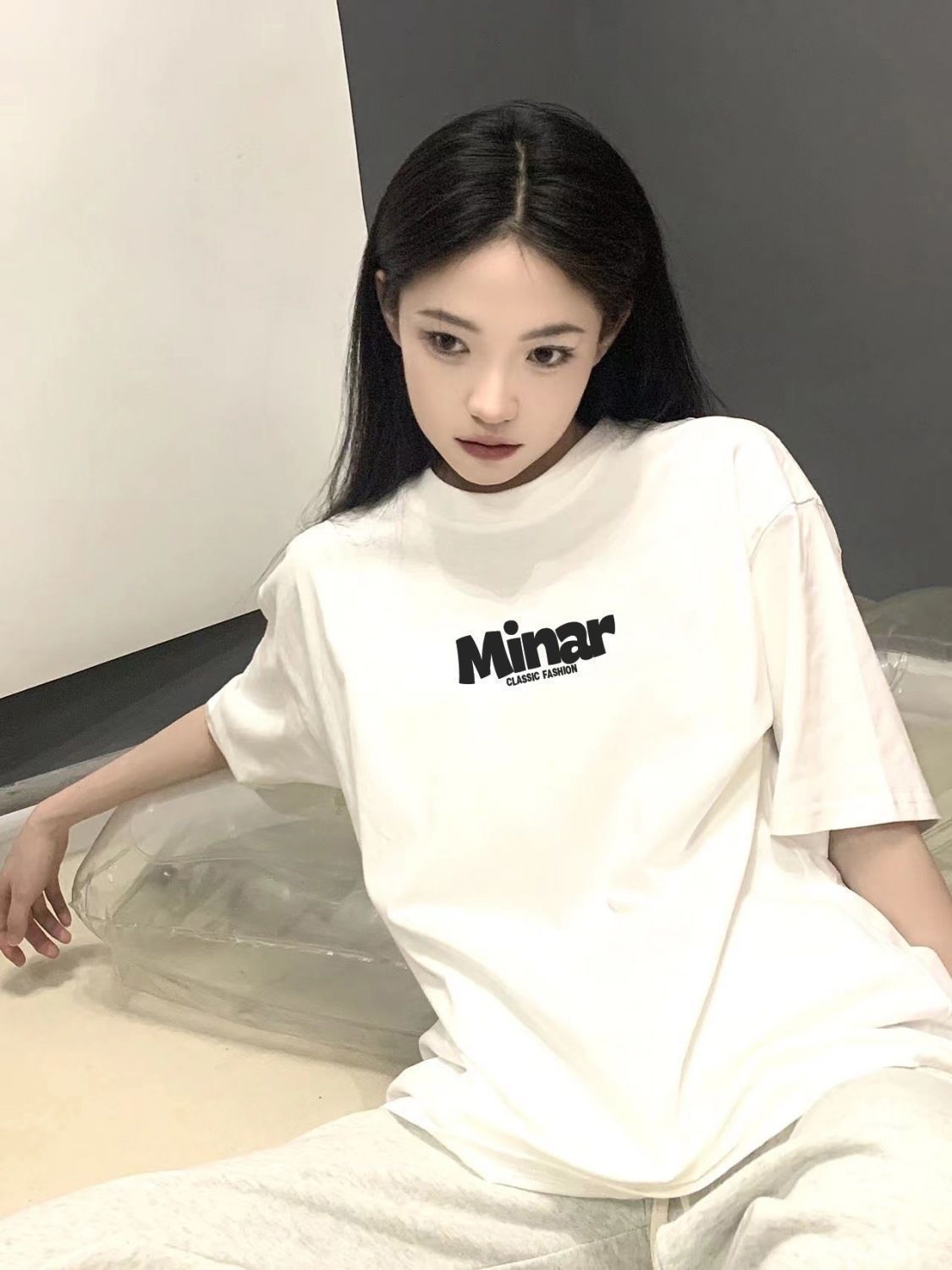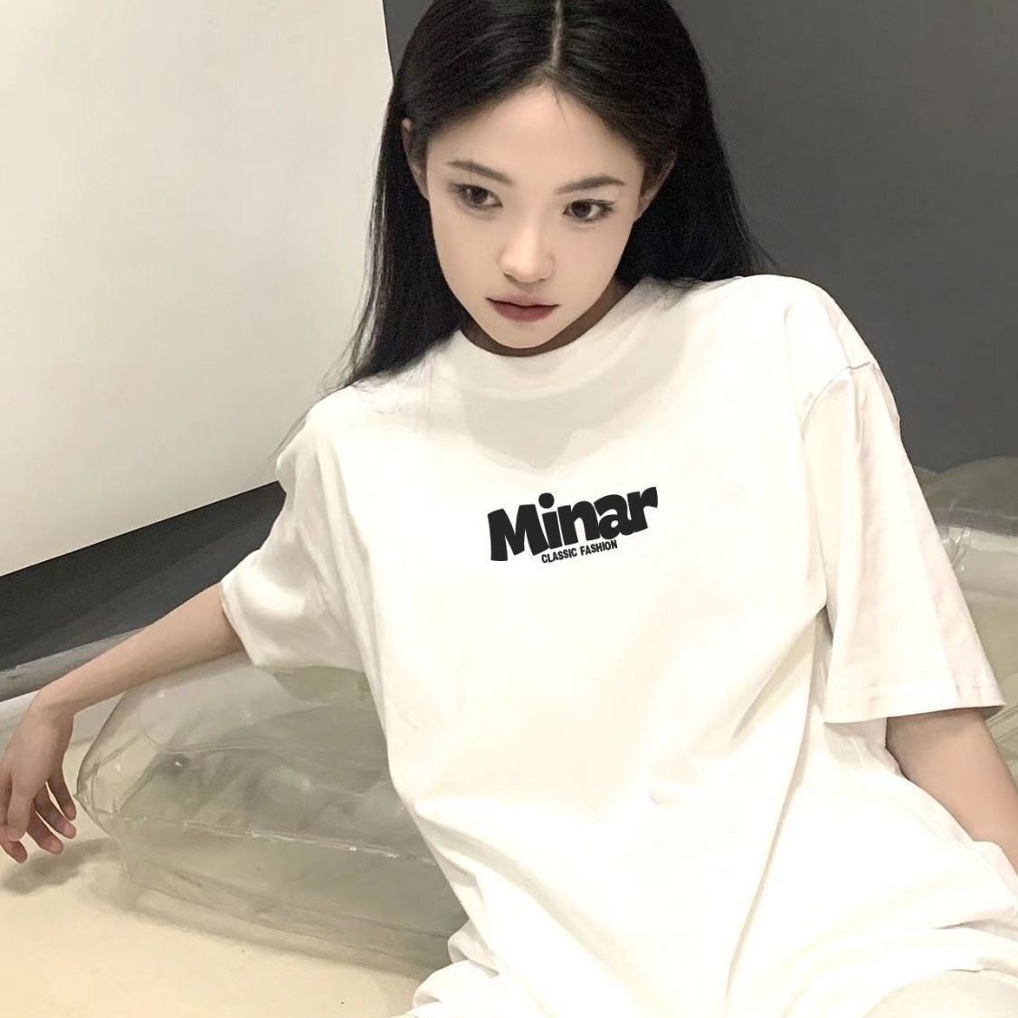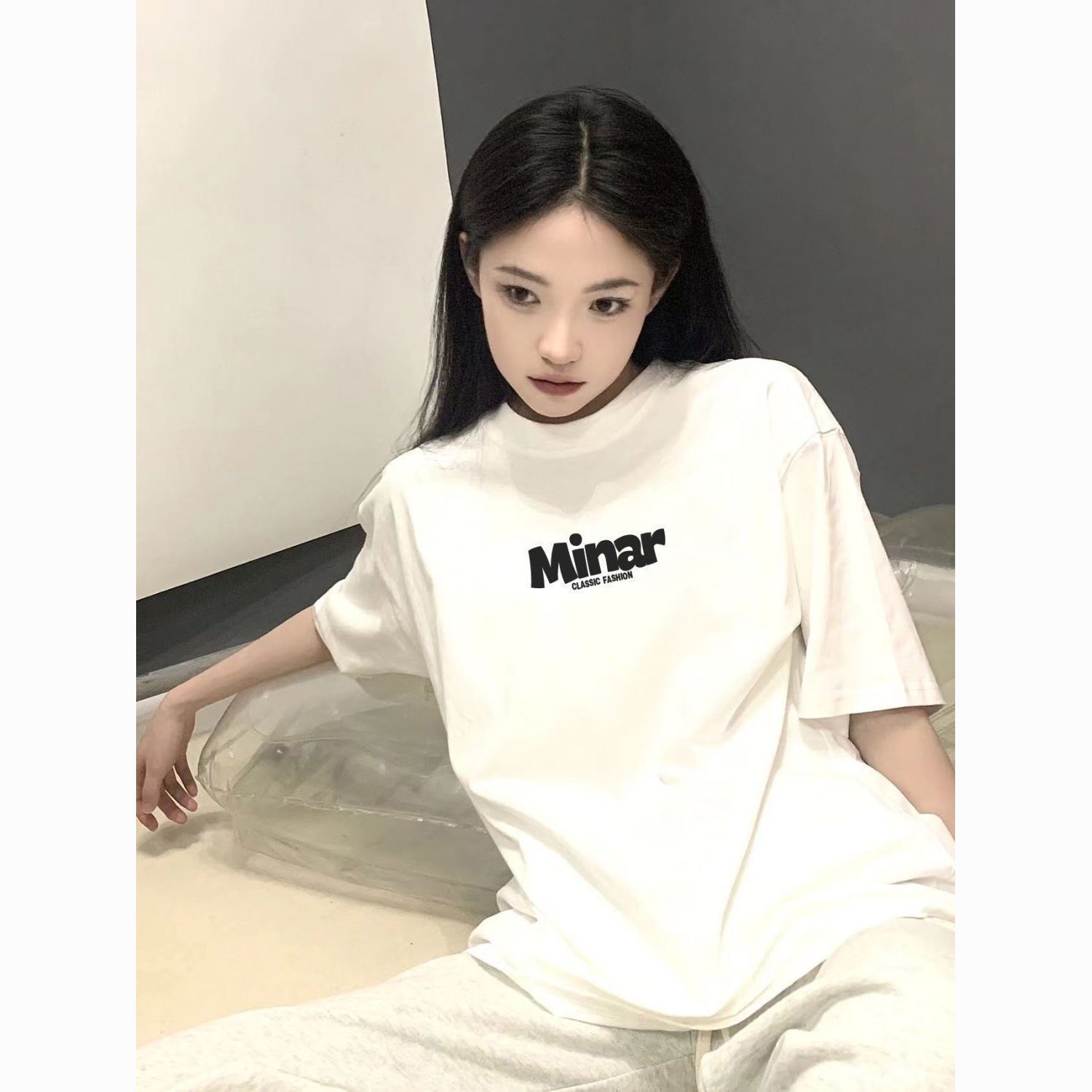 夏季爆款简约字母短袖美式复古oversize宽松上衣ins时尚甜美小众T
