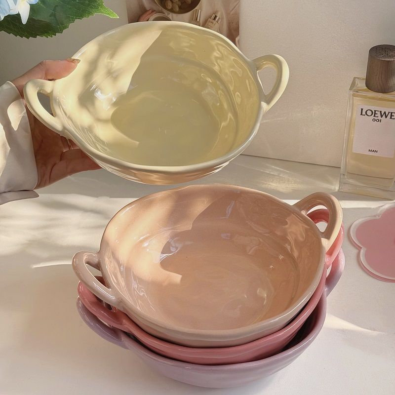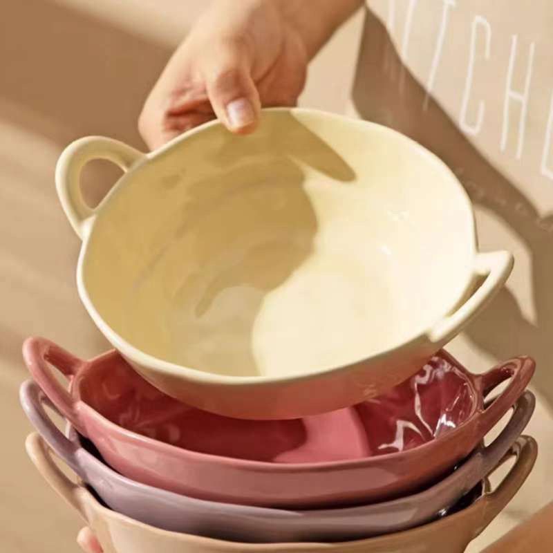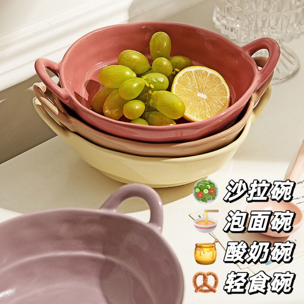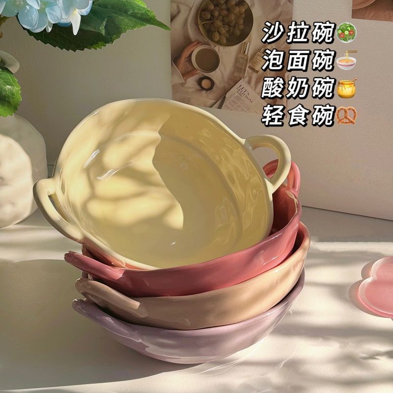 陶瓷收捏不规则双耳碗水果沙拉碗泡面碗家用宿舍学生一人食餐具