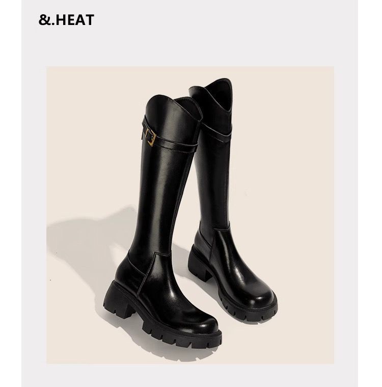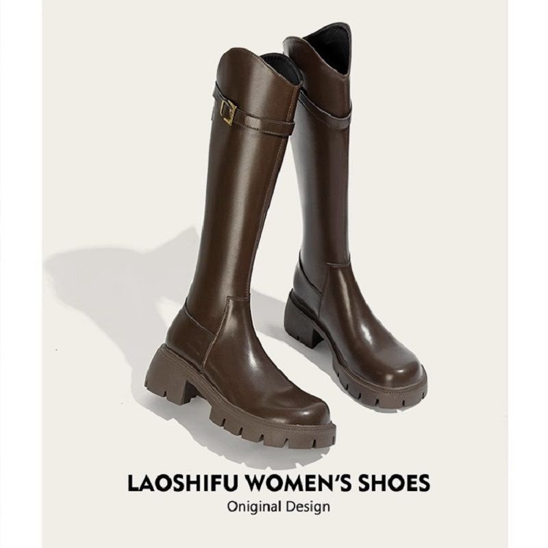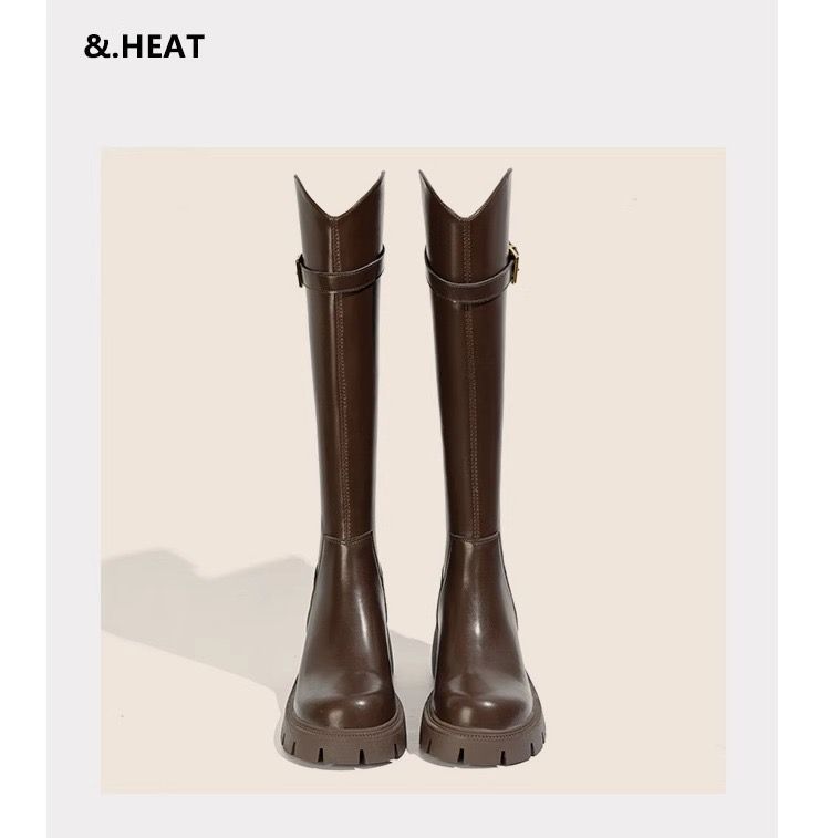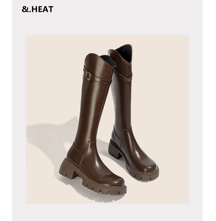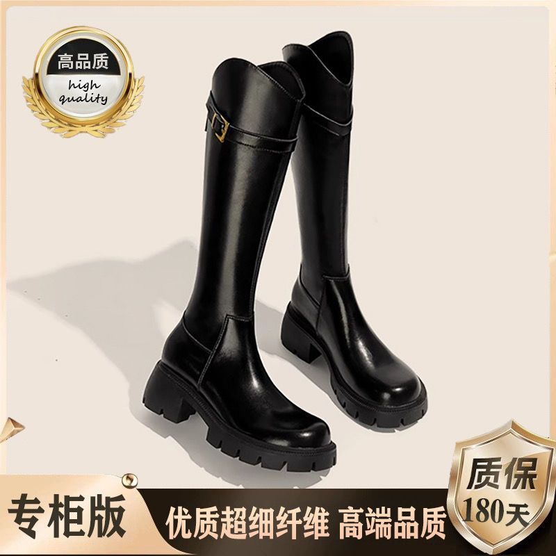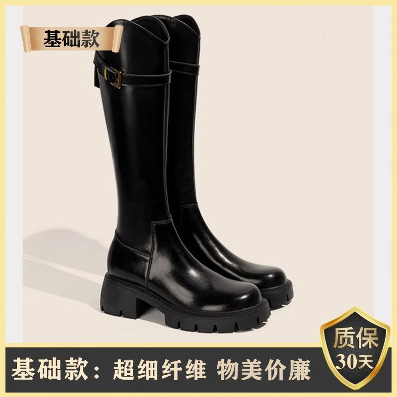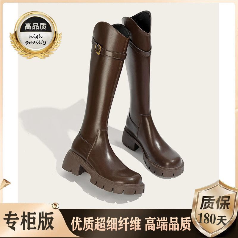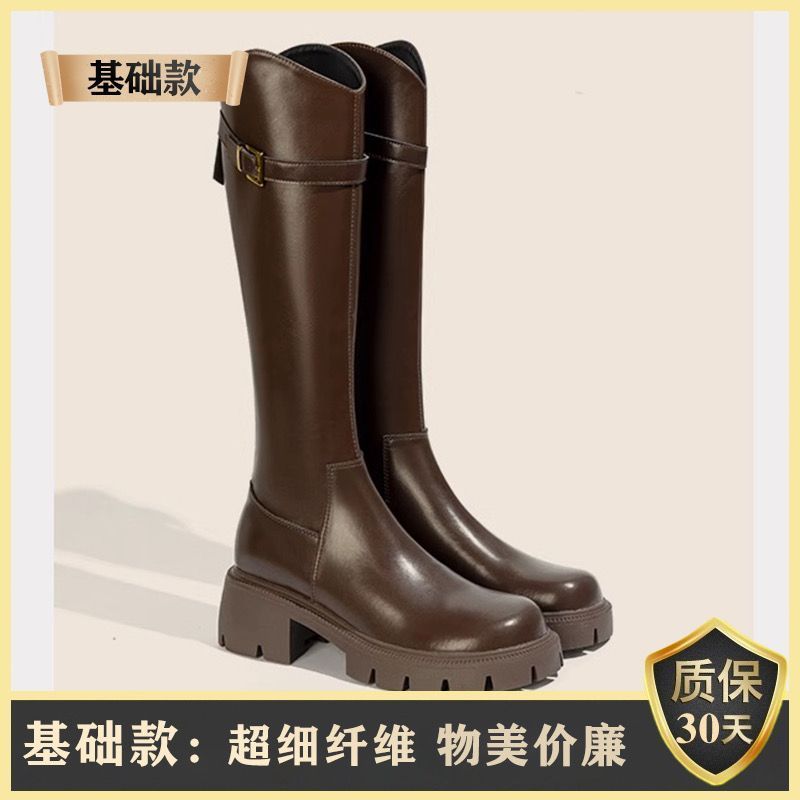 厚底骑士靴女2024新款秋冬季棕色显瘦粗腿胖mm大筒围高筒长筒靴子