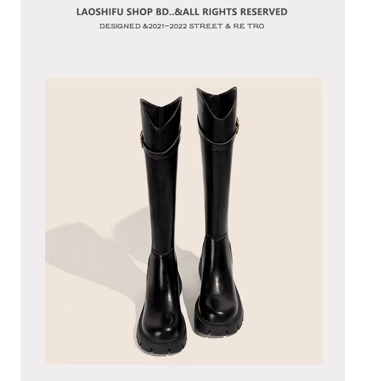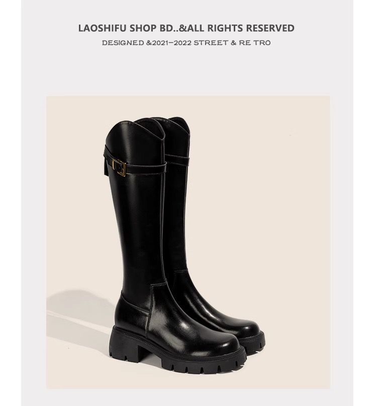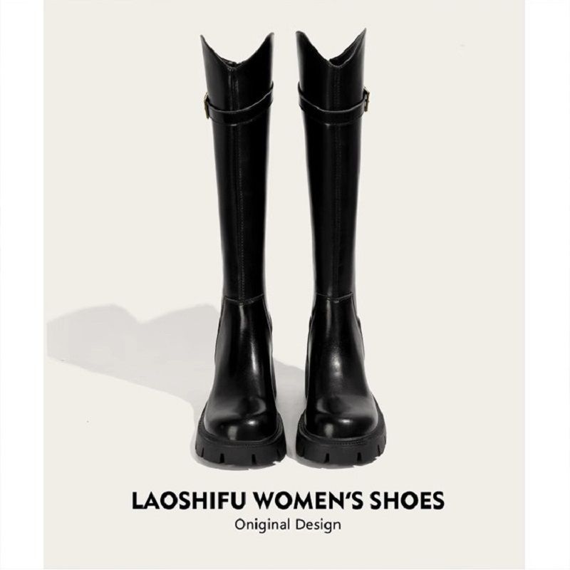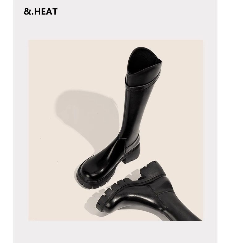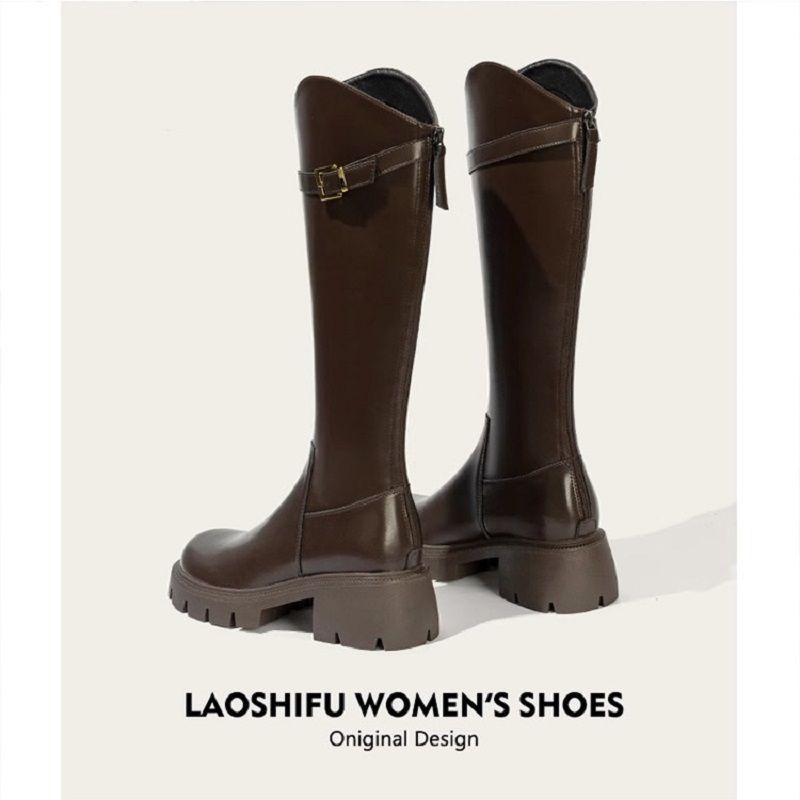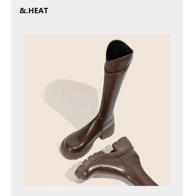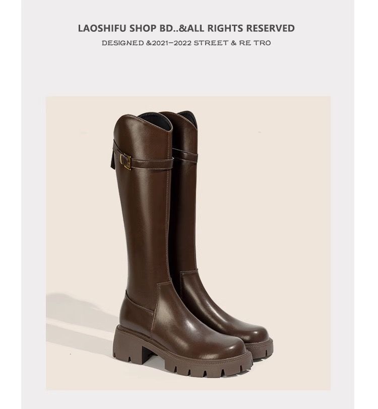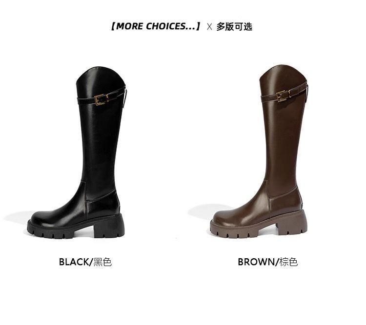 厚底骑士靴女2024新款秋冬季棕色显瘦粗腿胖mm大筒围高筒长筒靴子