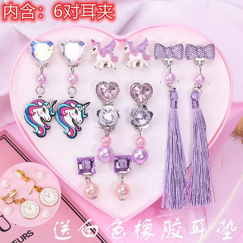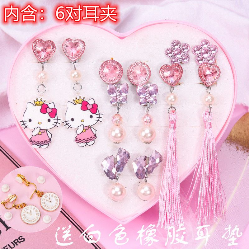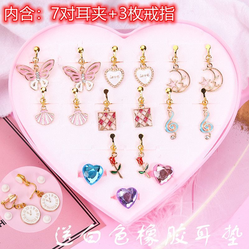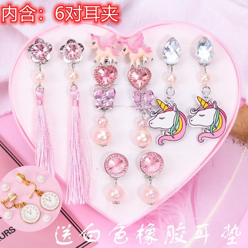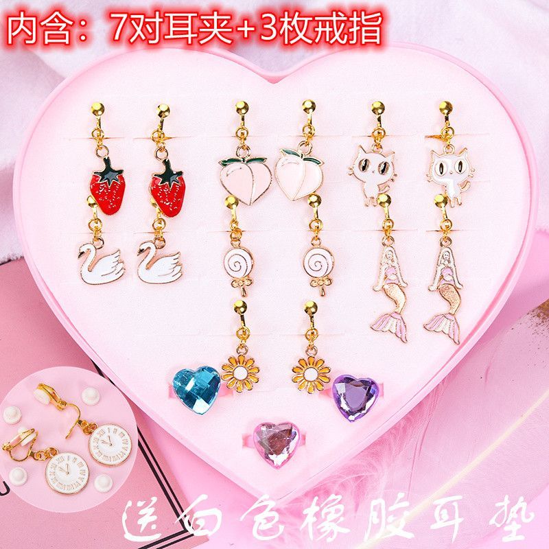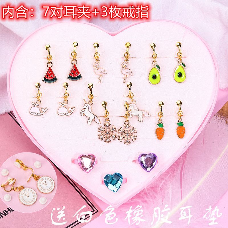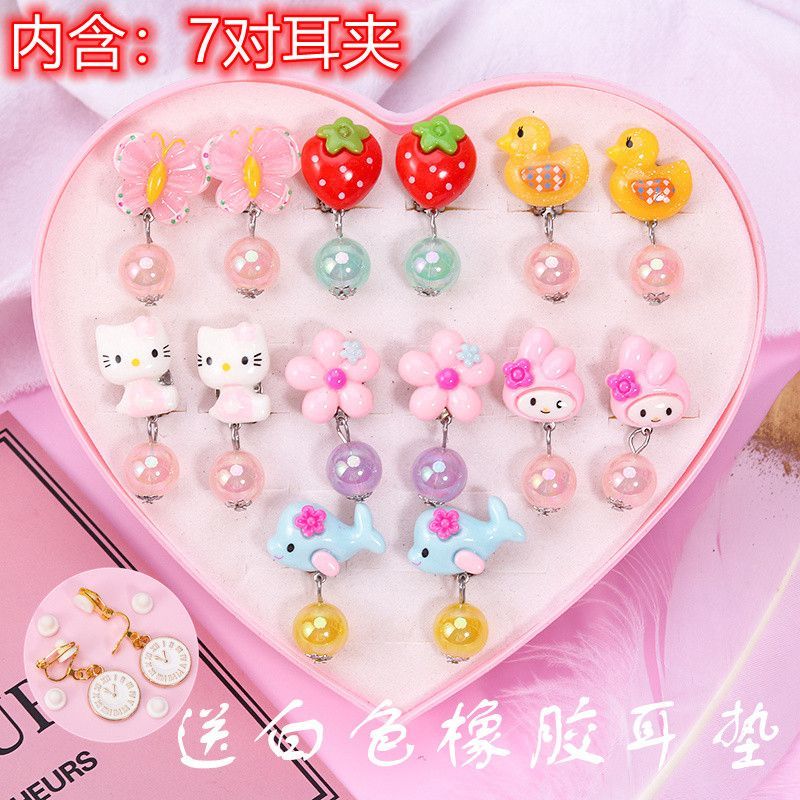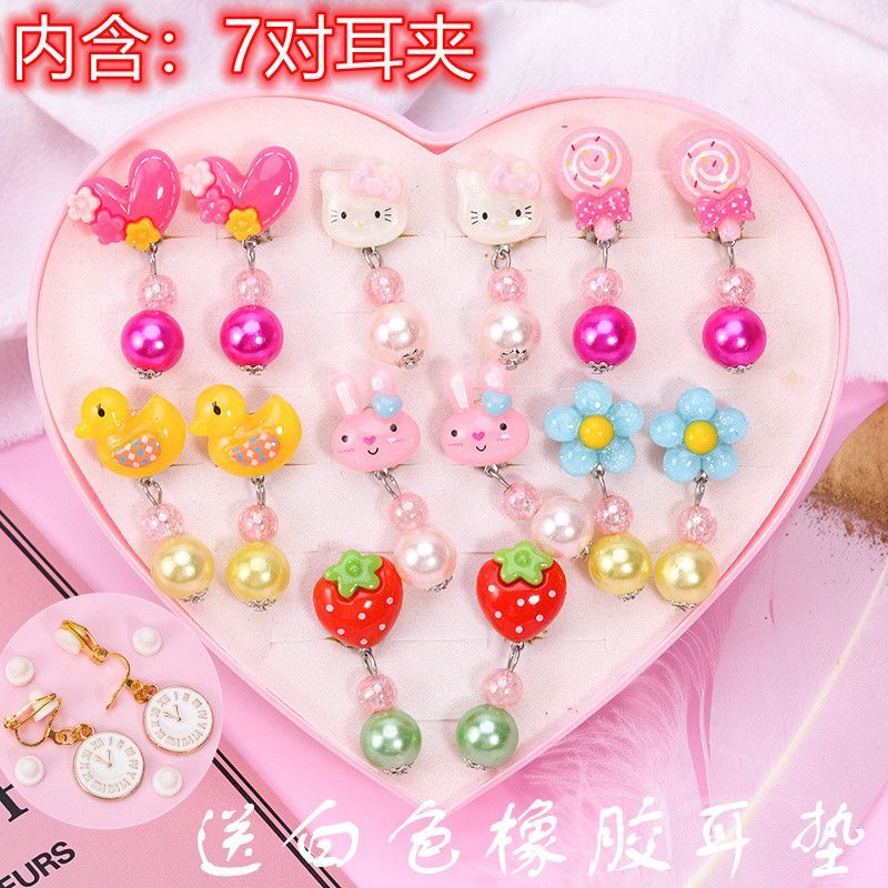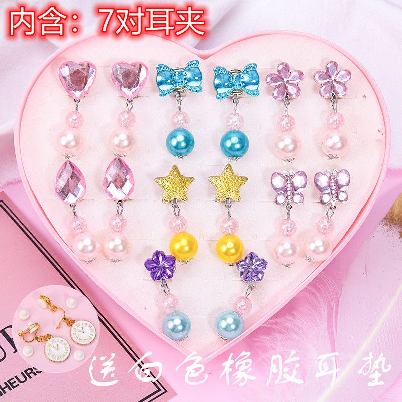 儿童耳环耳夹女无痛无耳洞防夹公主可爱卡通宝宝玩具女孩饰品ins