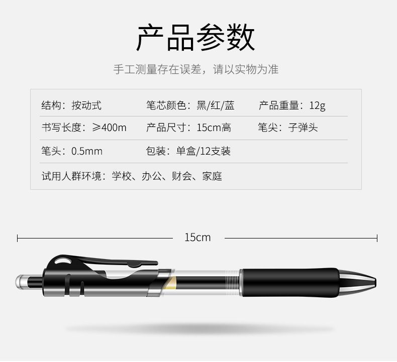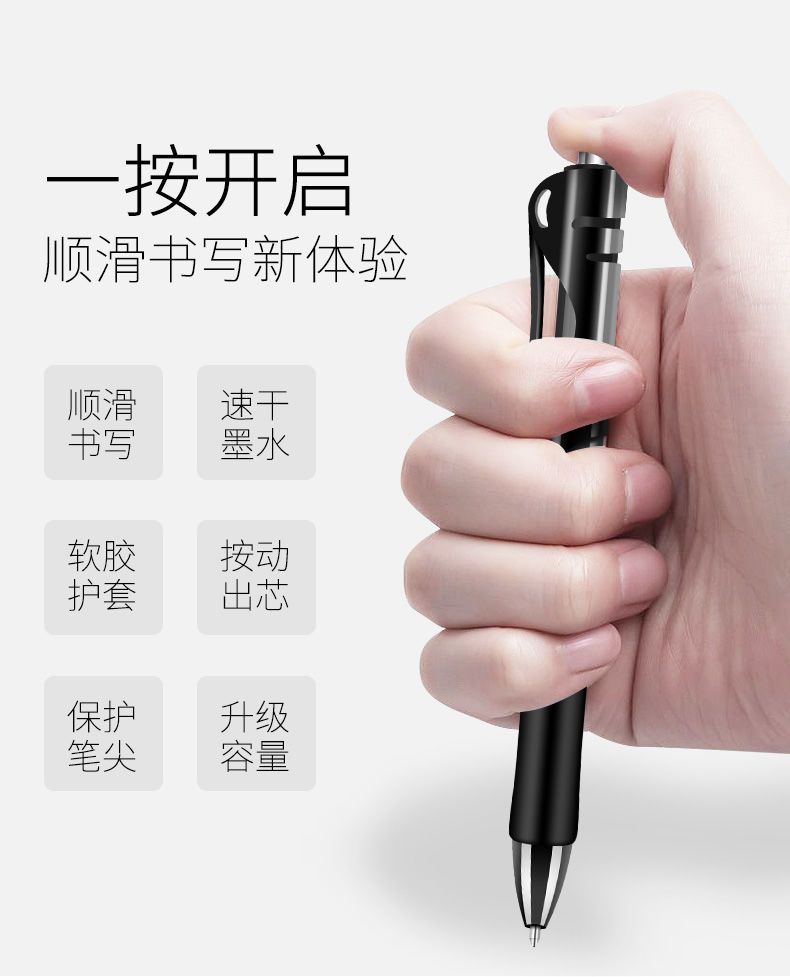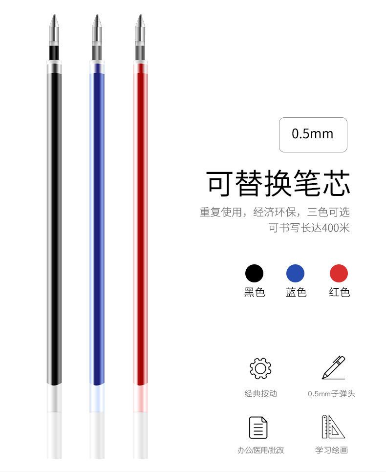 黑色速干按动中性笔0.5子弹头蓝色按动笔芯学生按压碳素笔芯批发