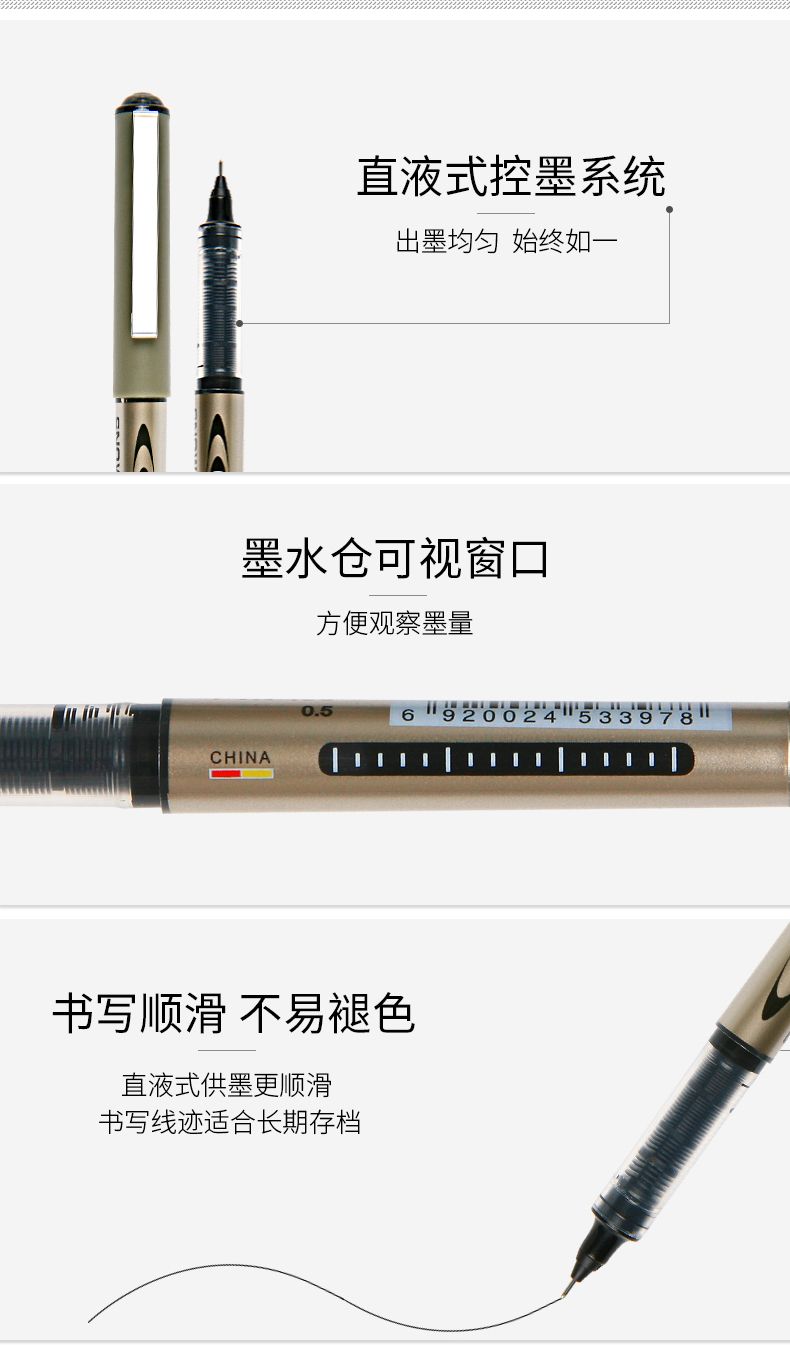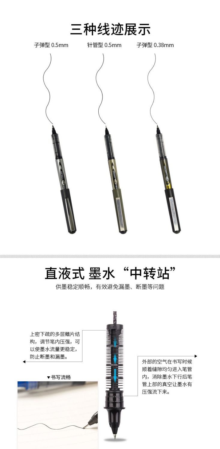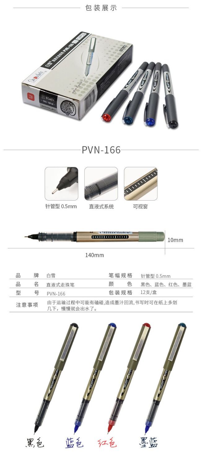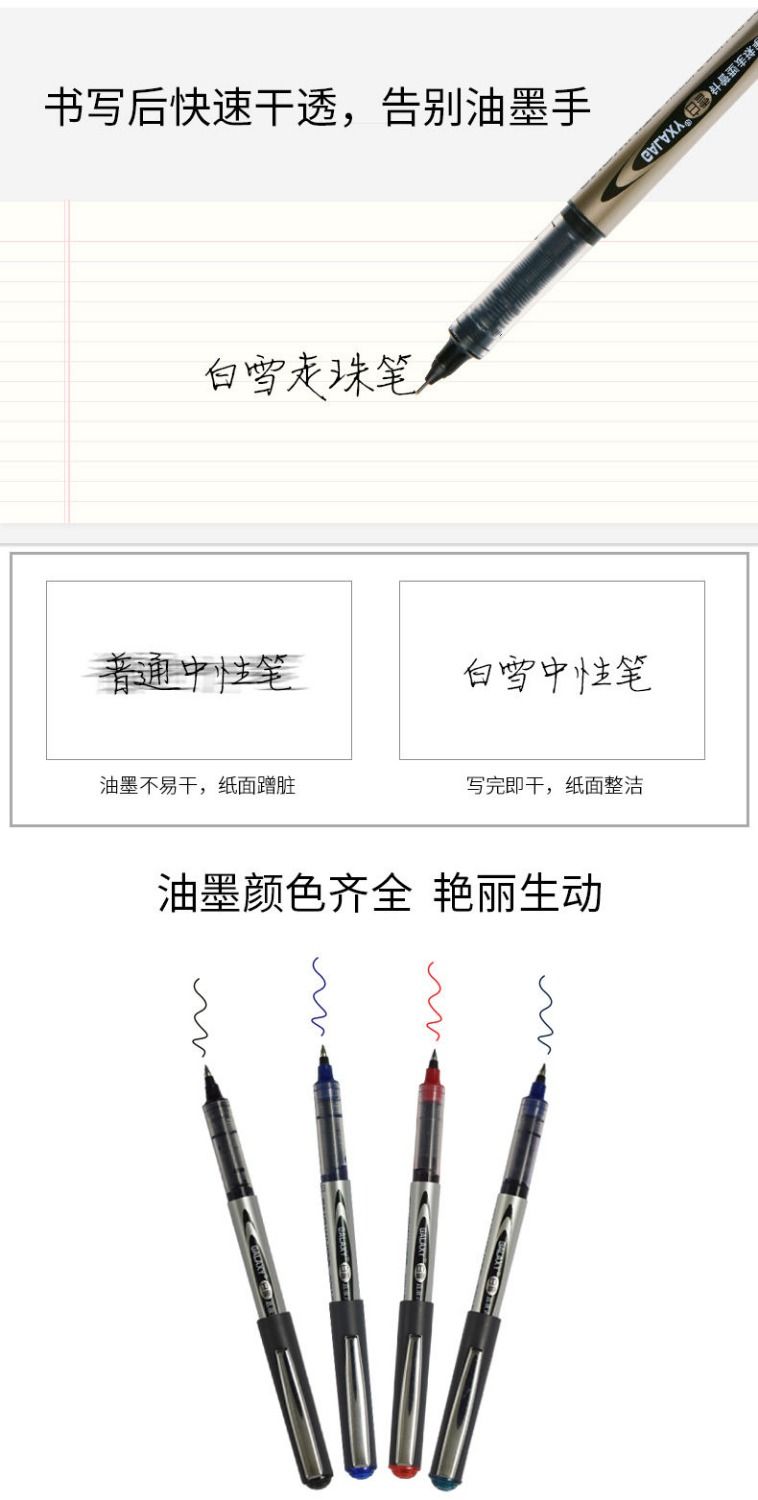 白雪直液式走珠笔中性笔0.5mm子弹头学生考试针管办公经典签字笔