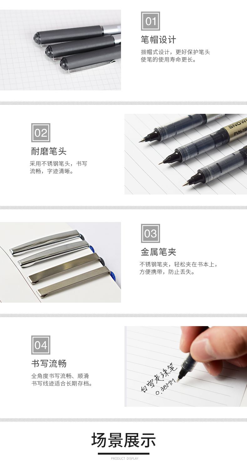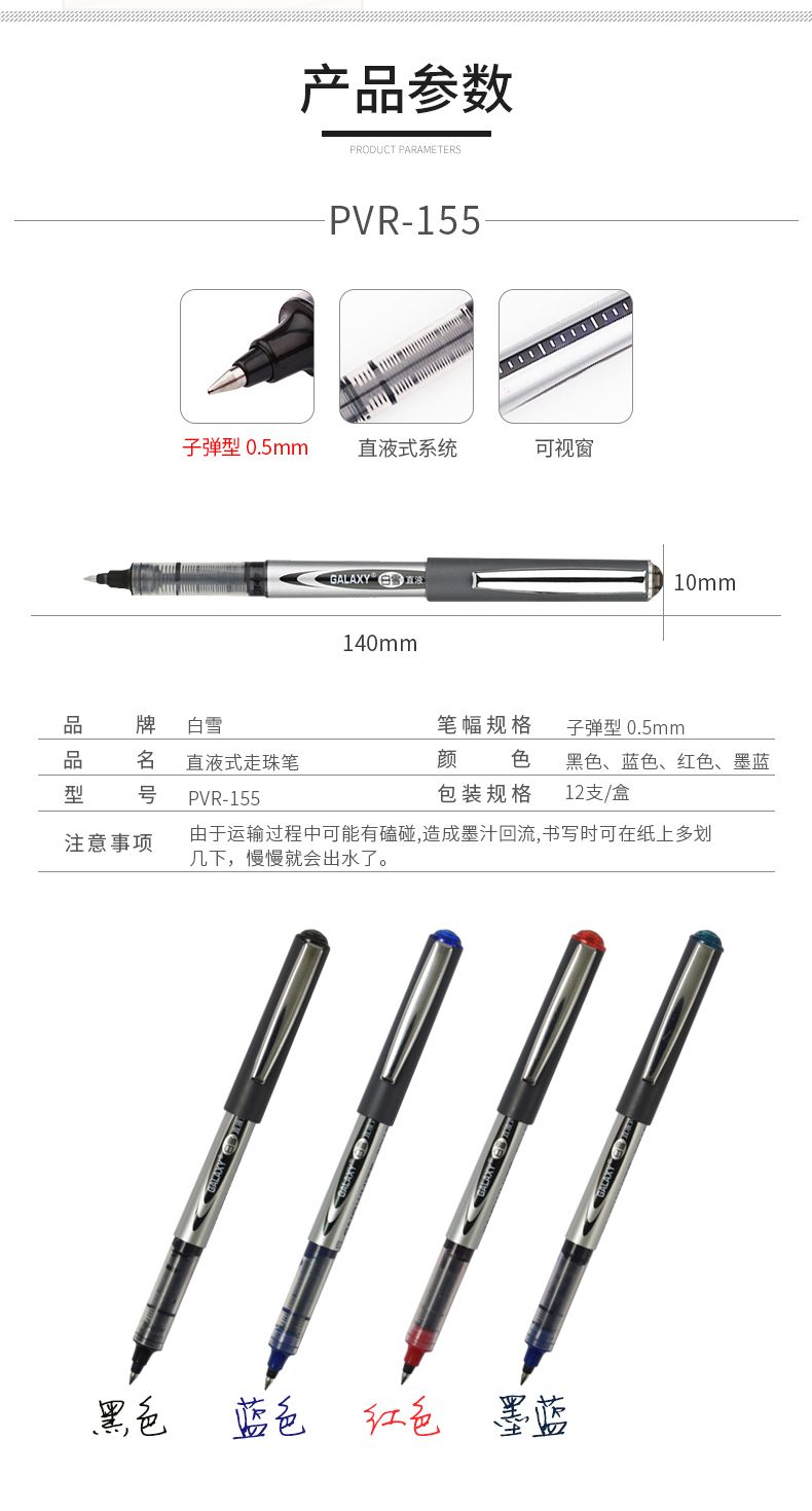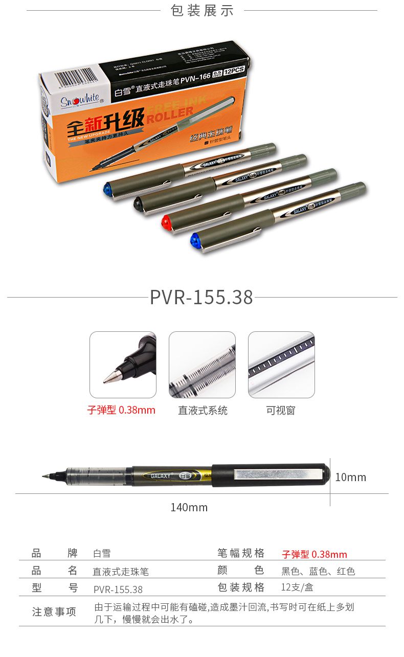 白雪直液式走珠笔中性笔0.5mm子弹头学生考试针管办公经典签字笔