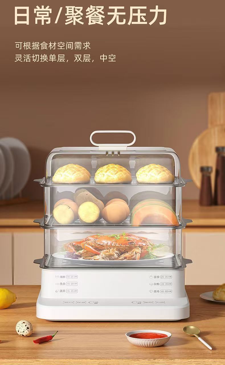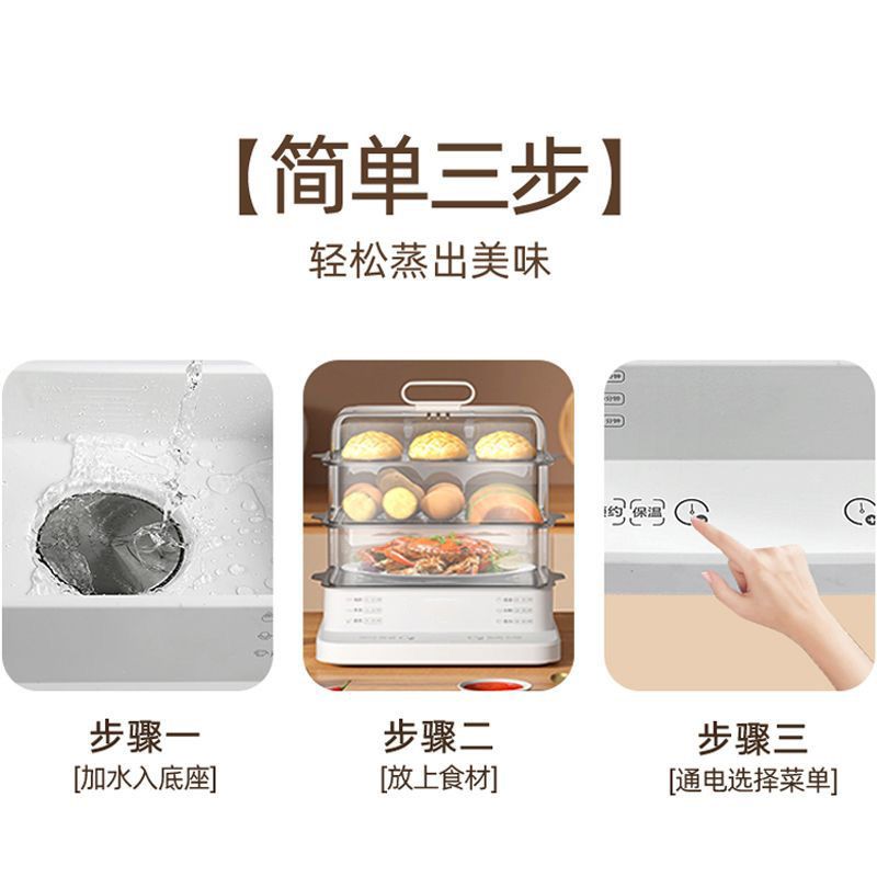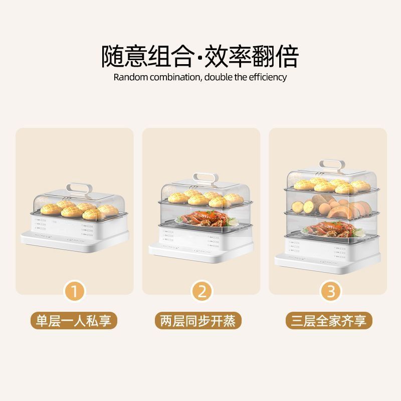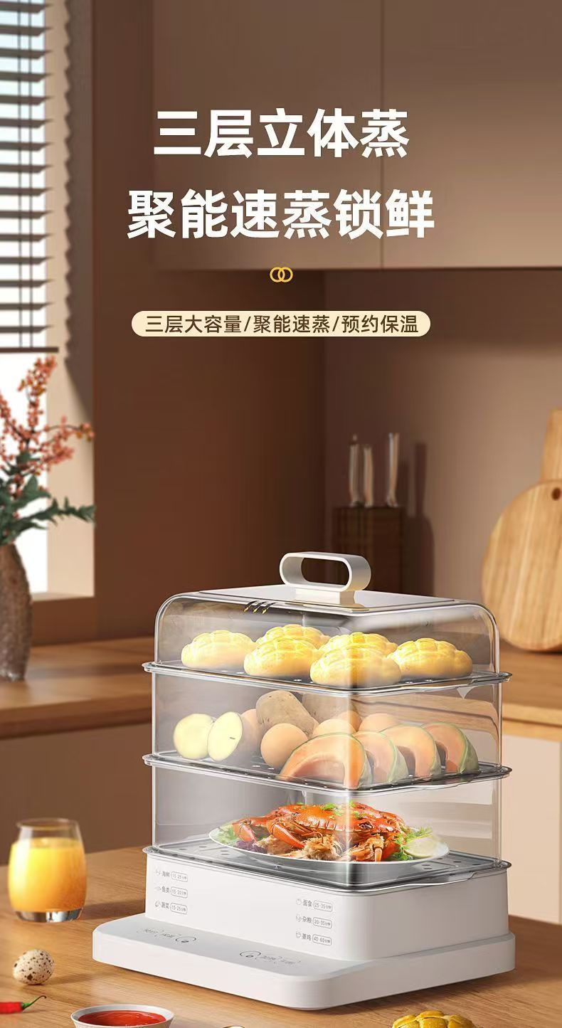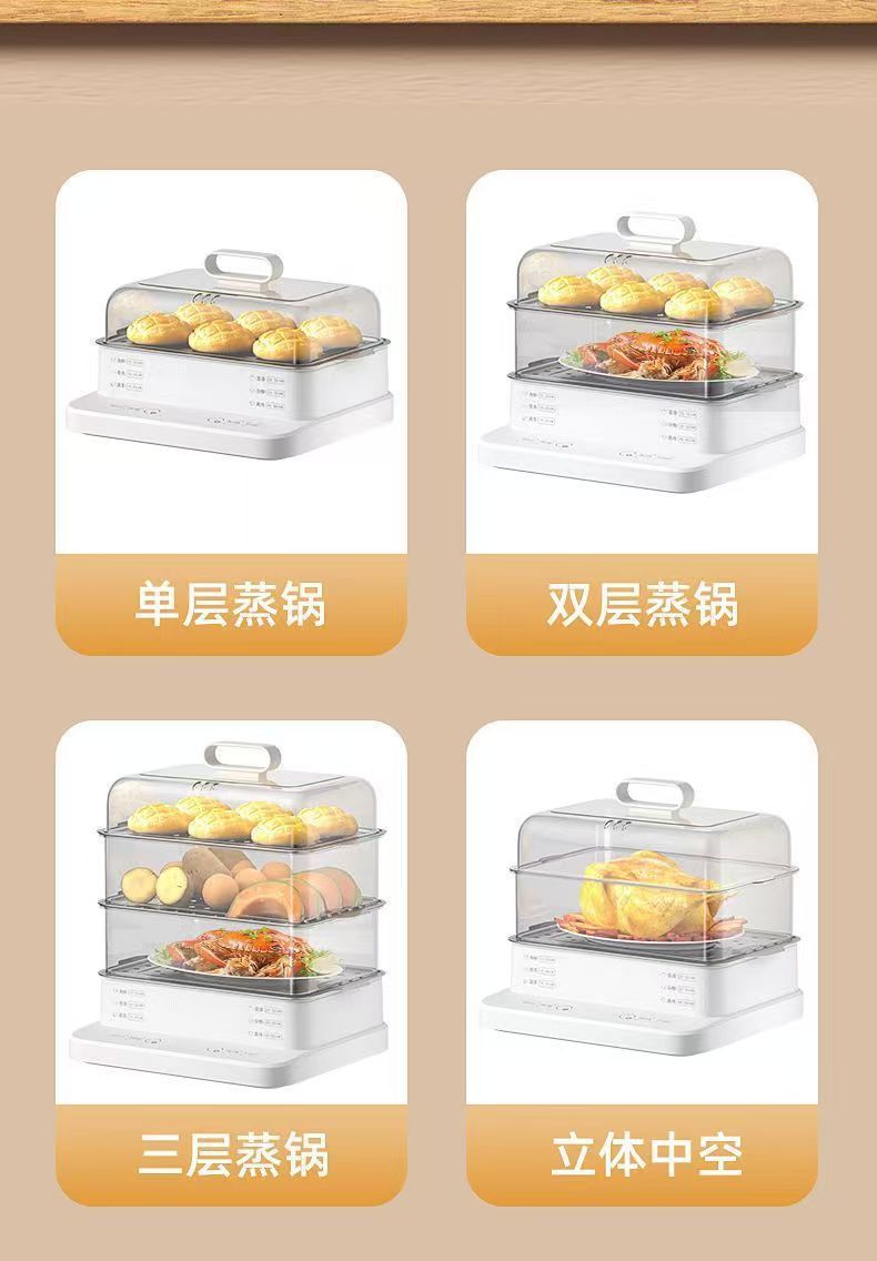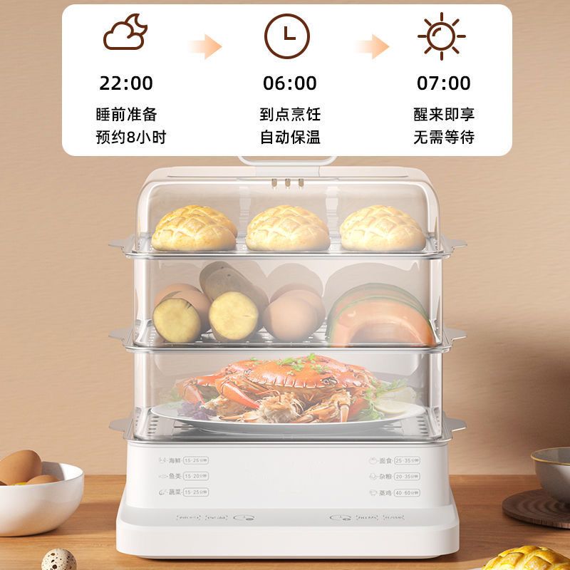 万利达多功能家用三层电蒸锅大容量特大号不锈钢蒸笼蒸煮一体预约