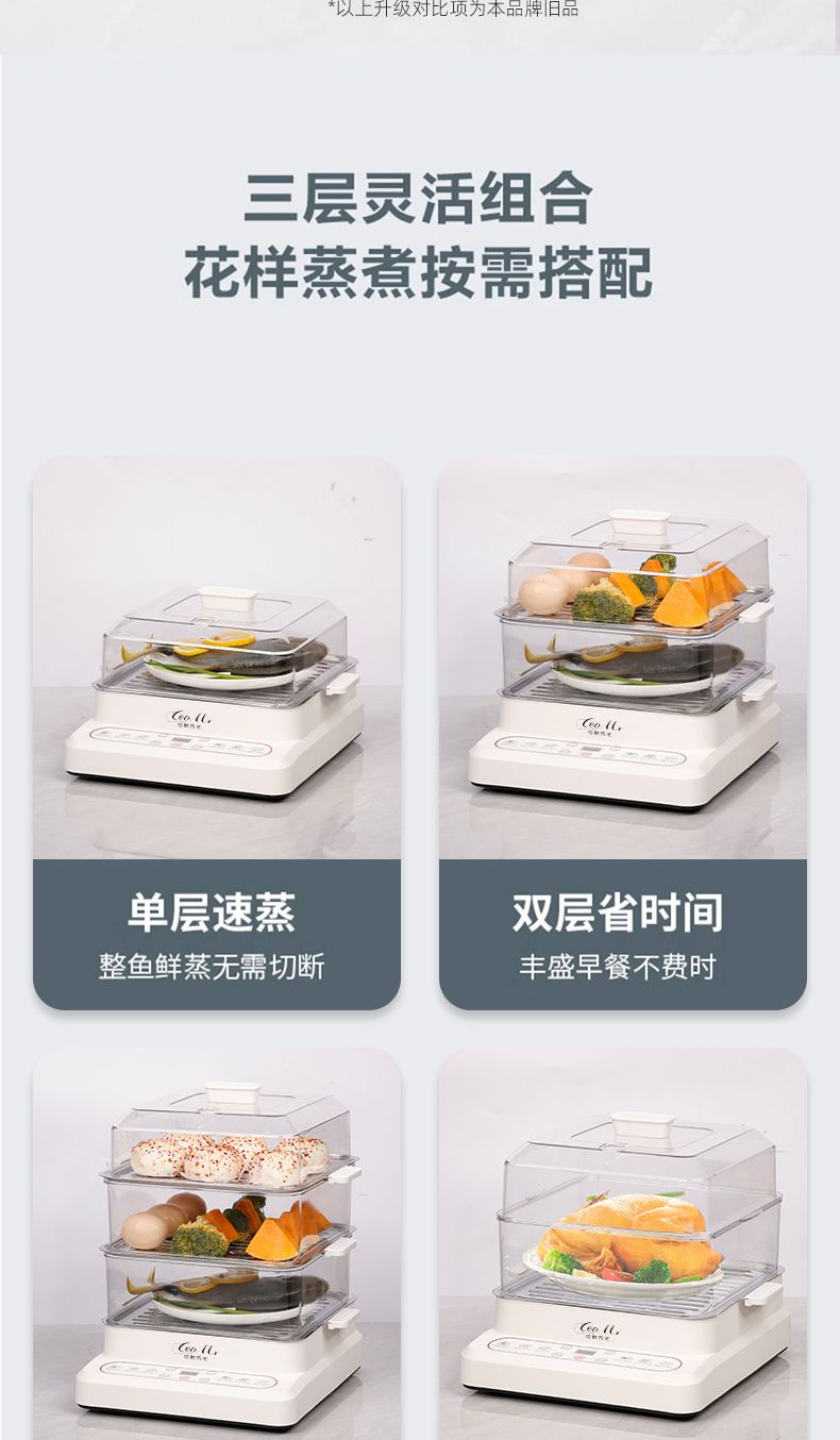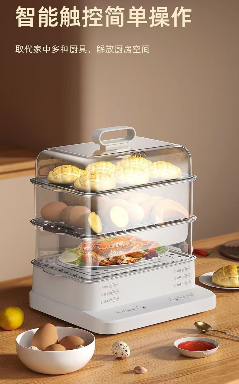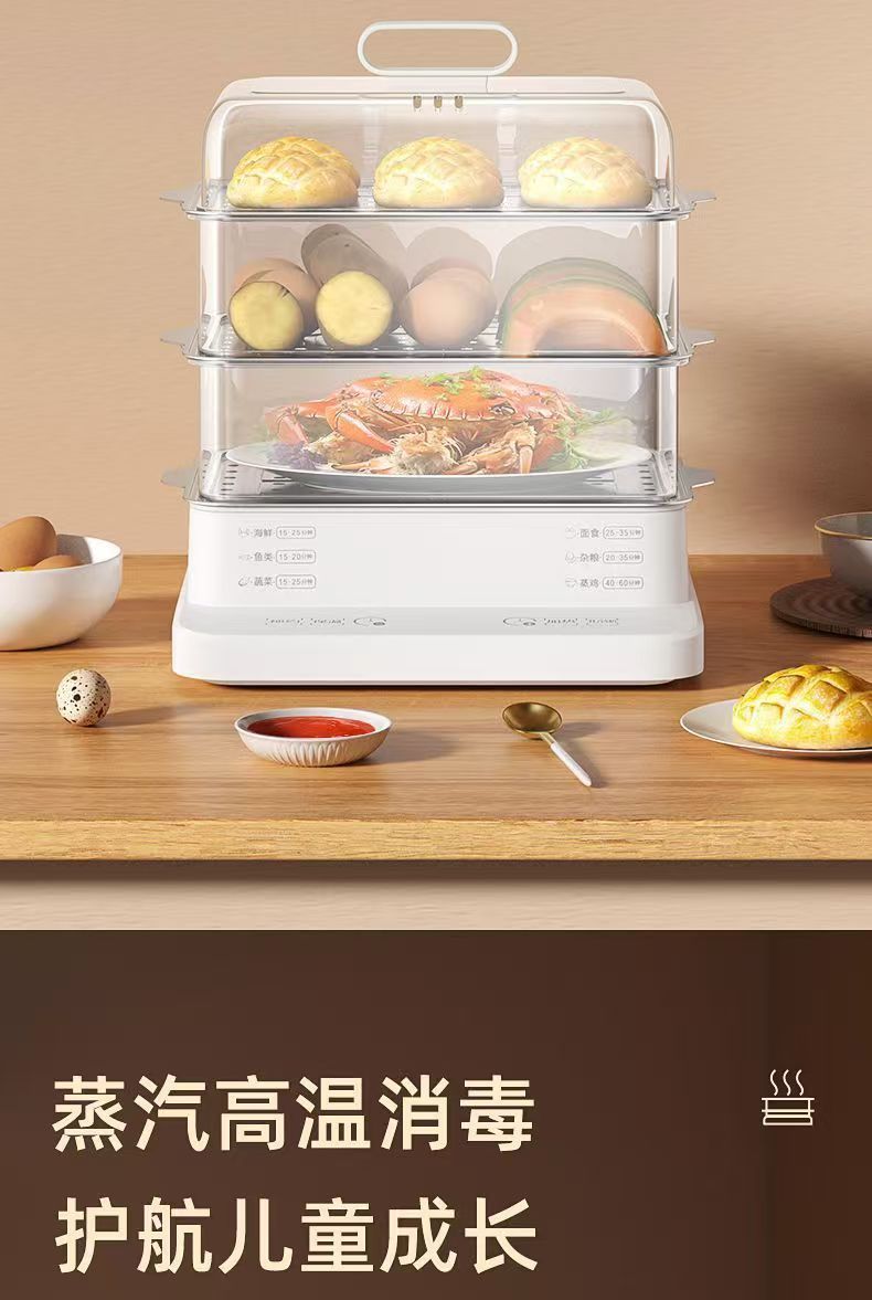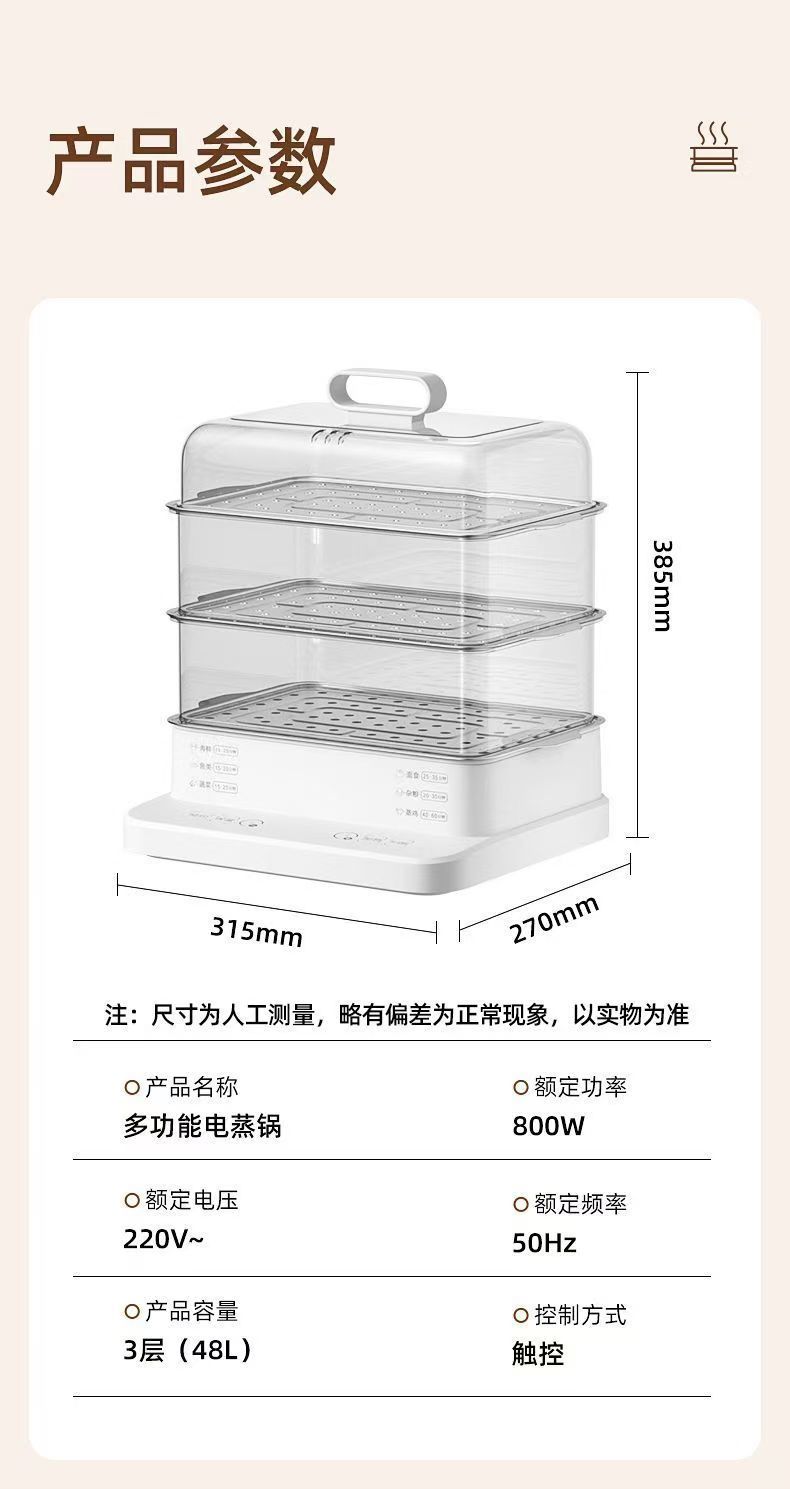 万利达多功能家用三层电蒸锅大容量特大号不锈钢蒸笼蒸煮一体预约