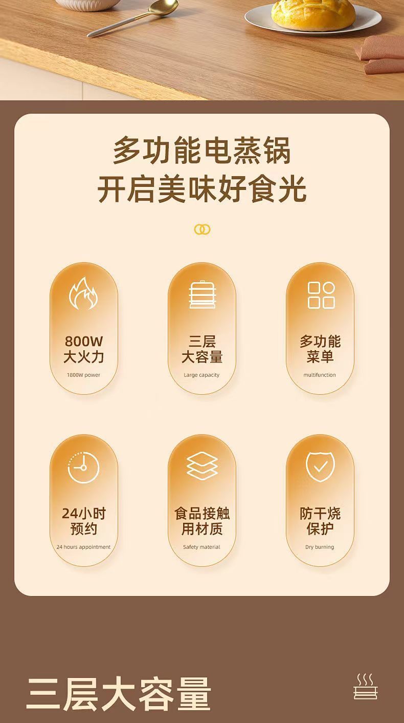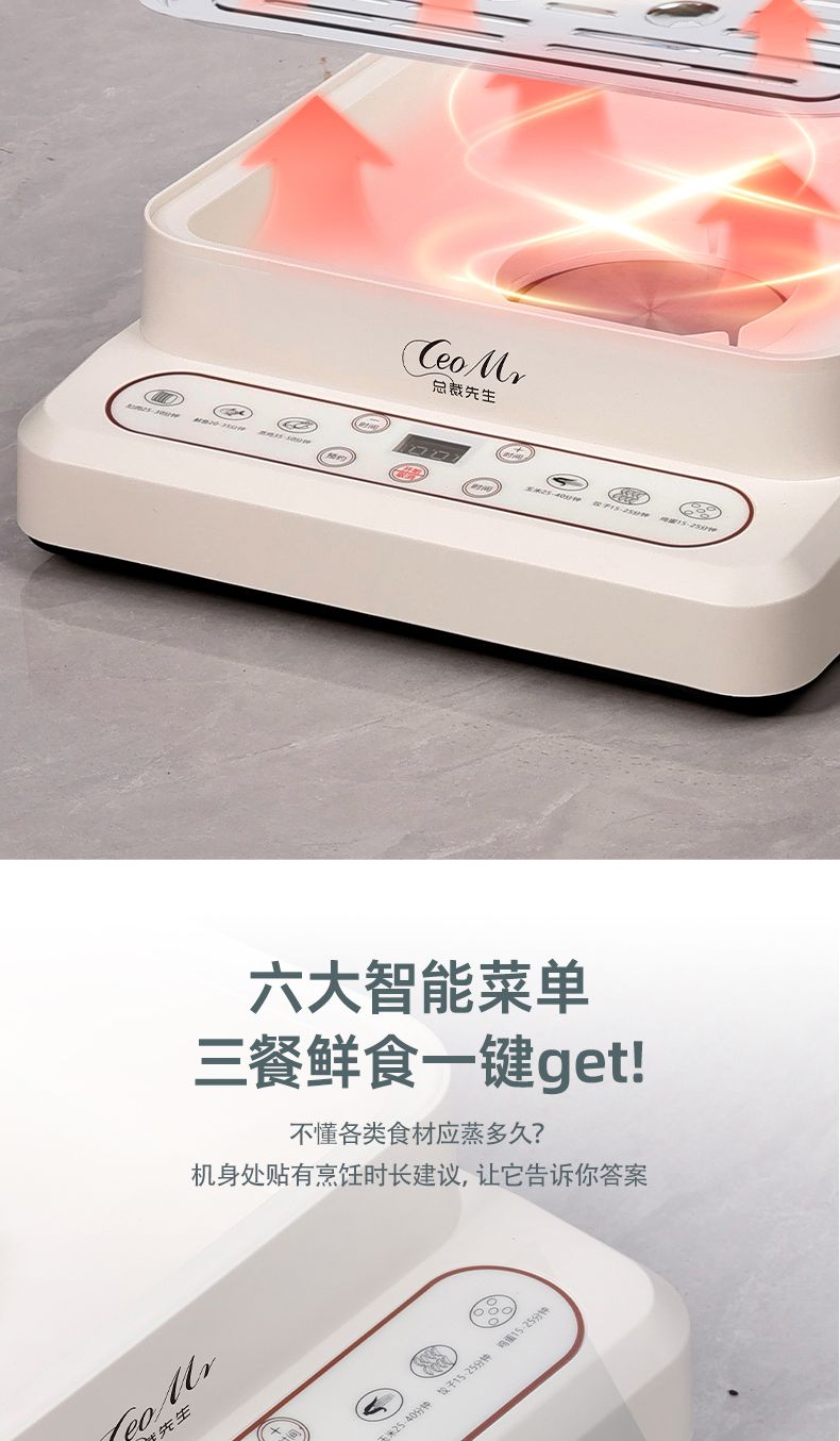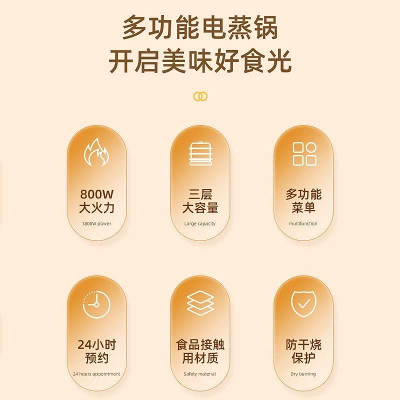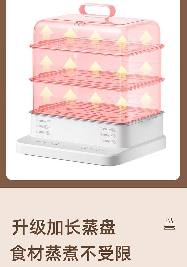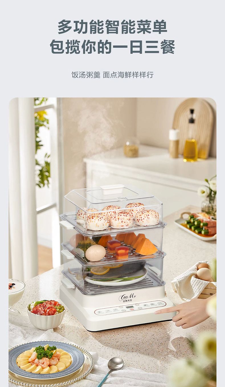万利达多功能家用三层电蒸锅大容量特大号不锈钢蒸笼蒸煮一体预约