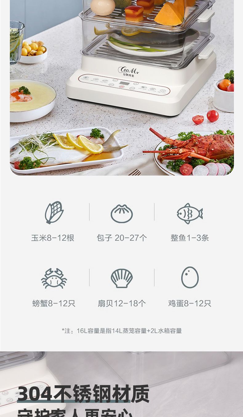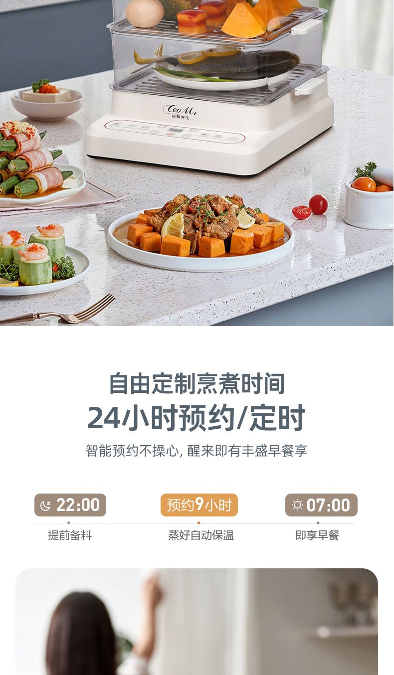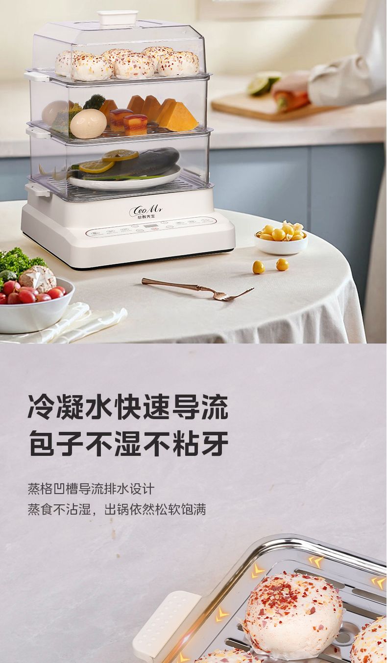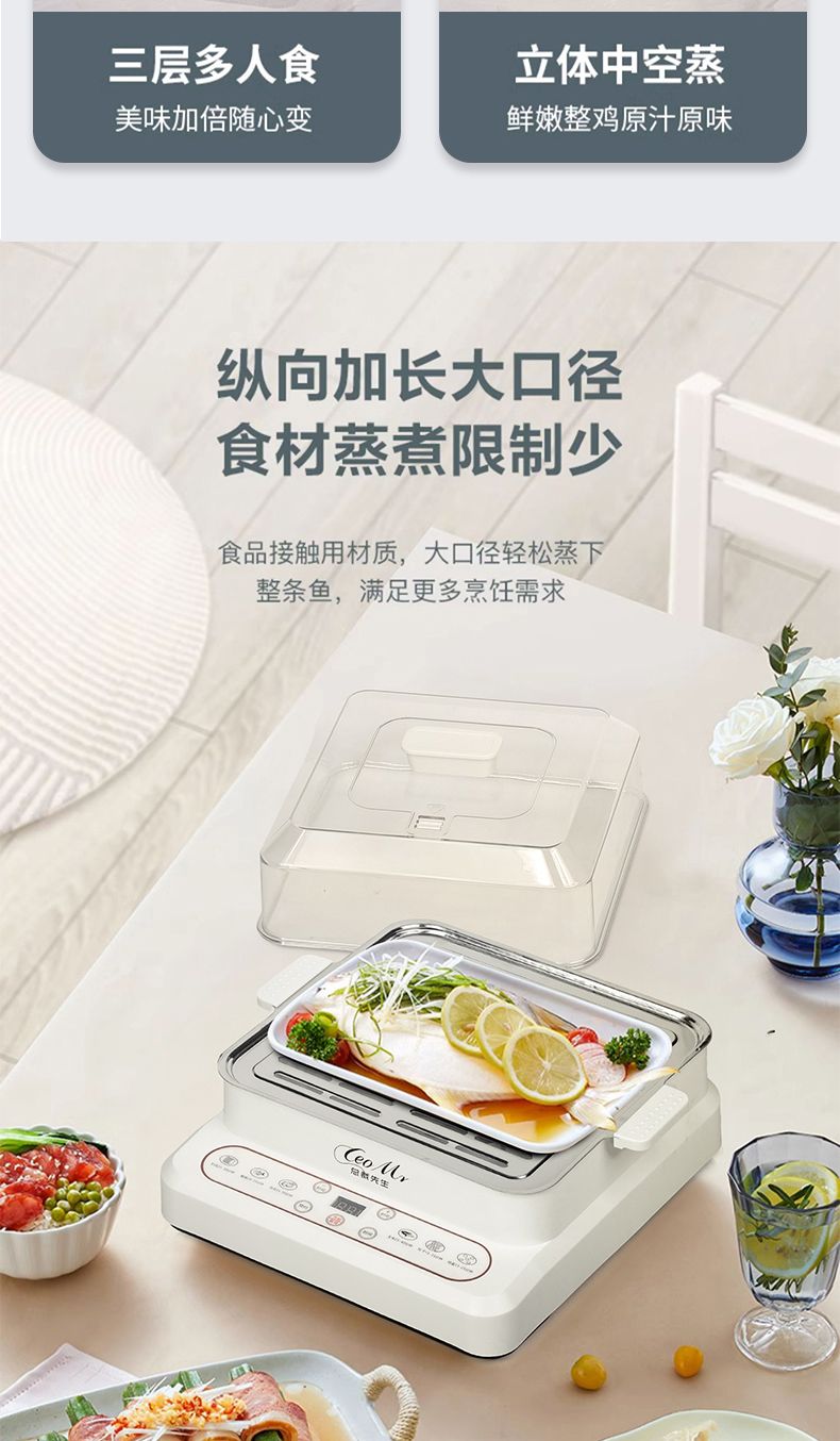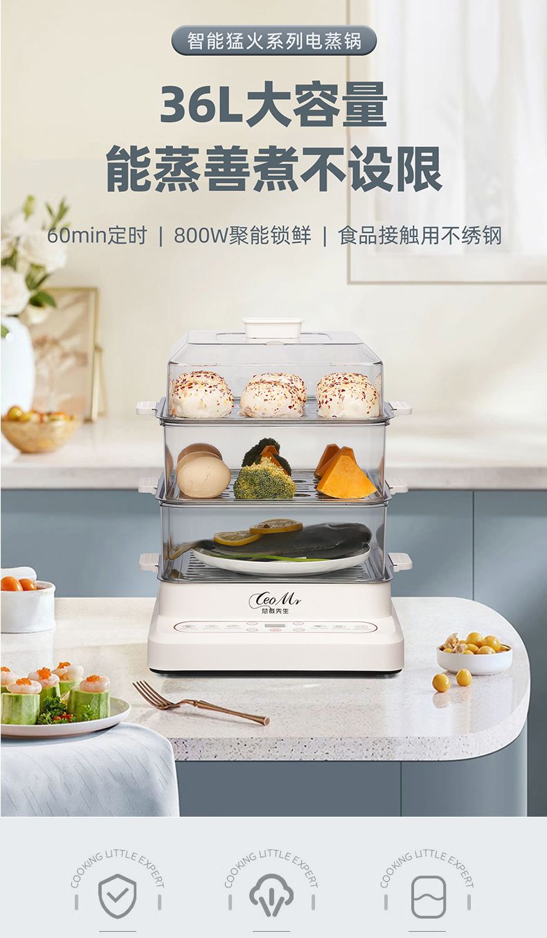 万利达多功能家用三层电蒸锅大容量特大号不锈钢蒸笼蒸煮一体预约