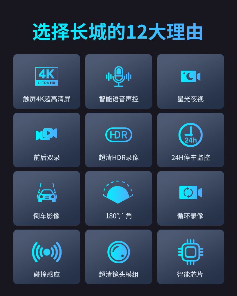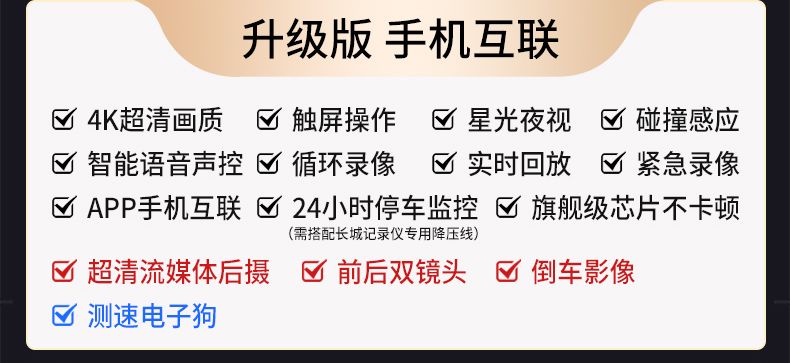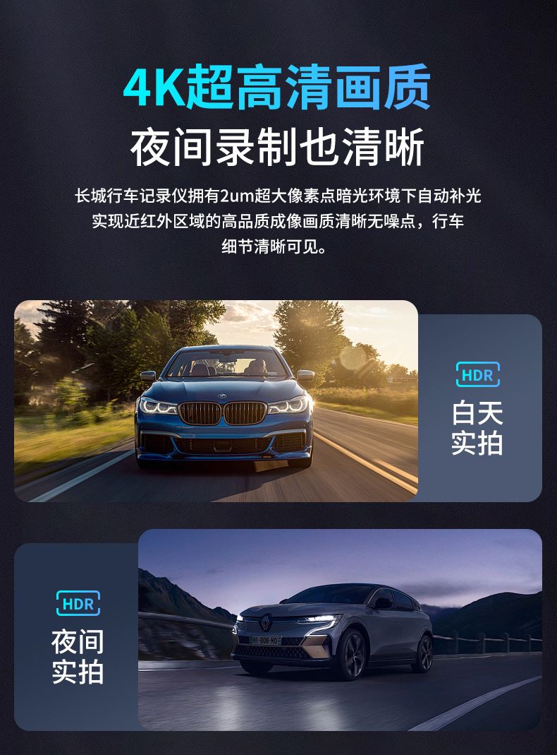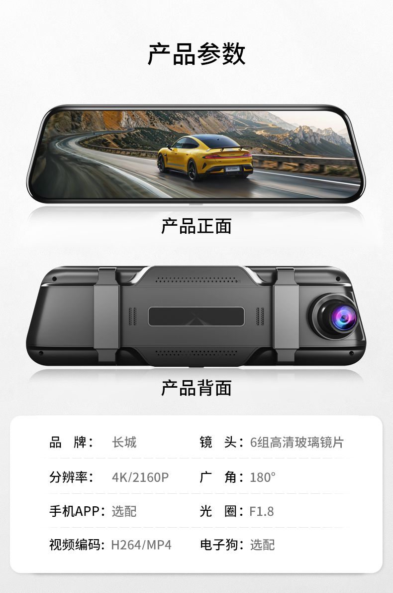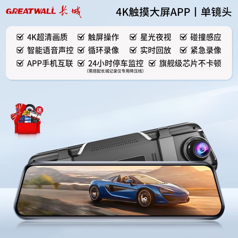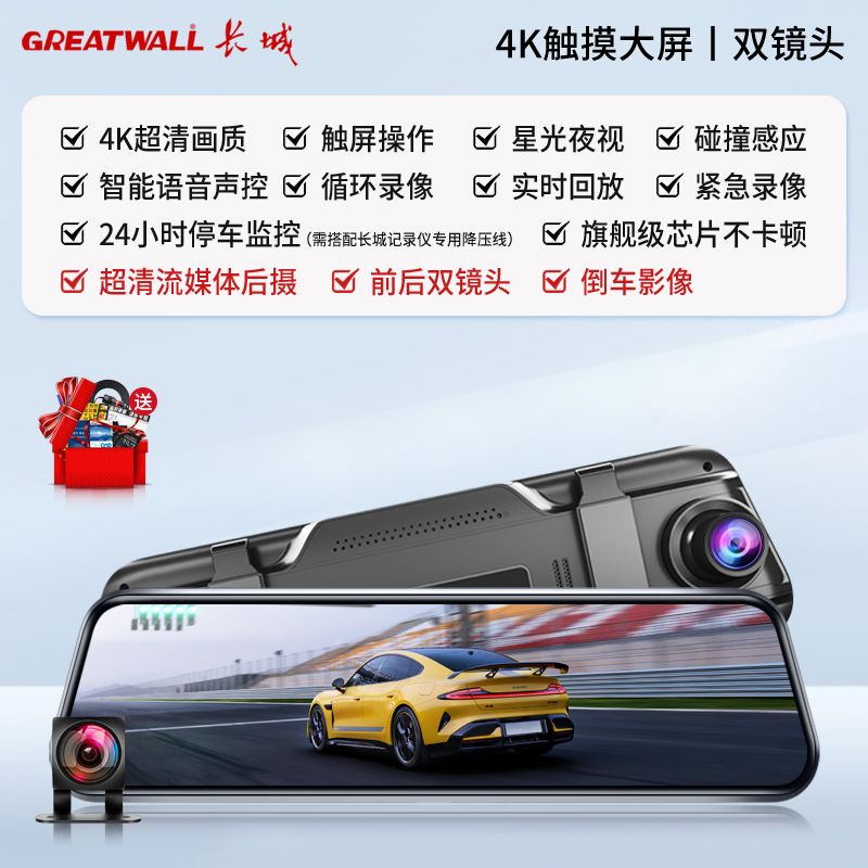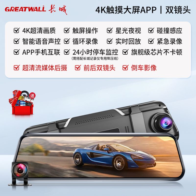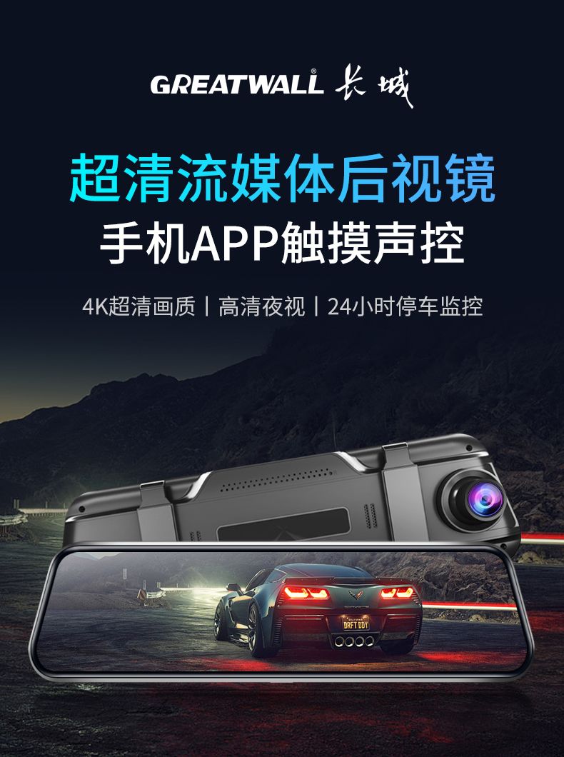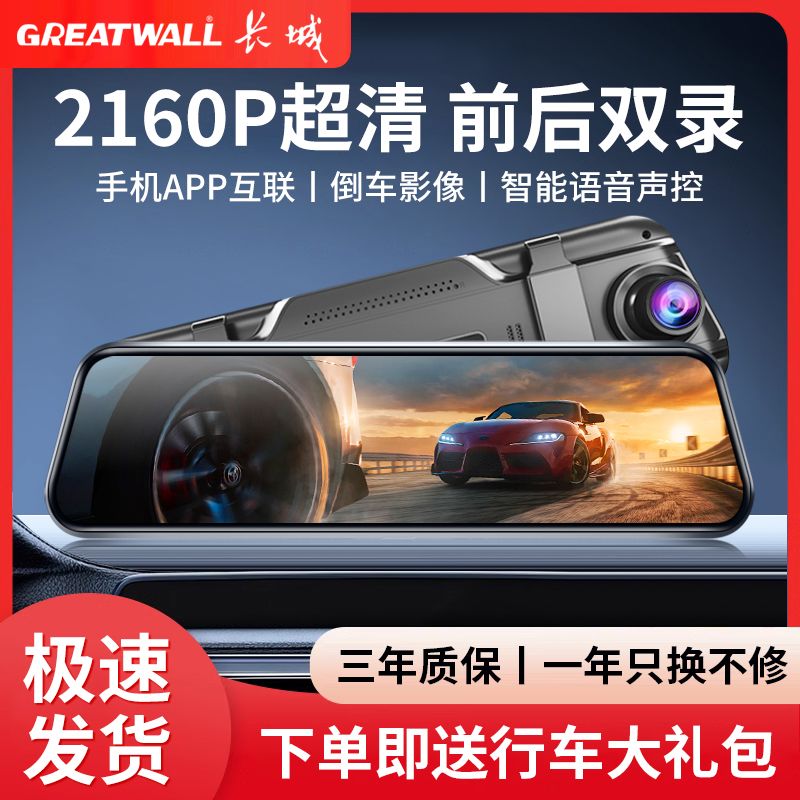 长城旗舰超清4K大屏行车记录仪APP互联双镜头倒车影像声控免安装