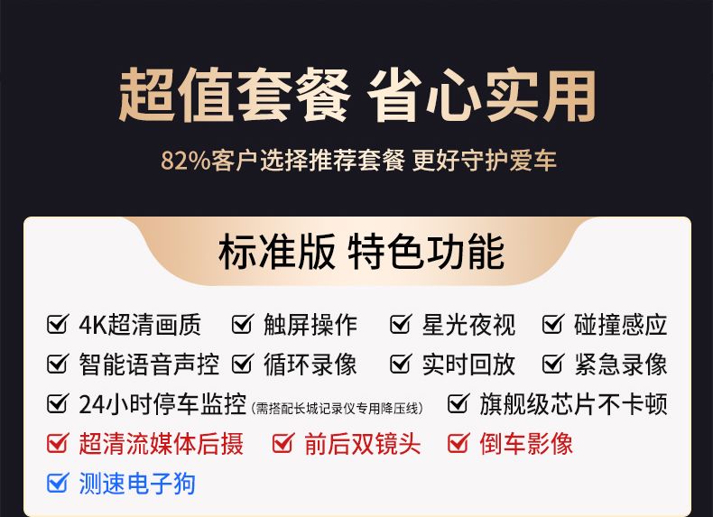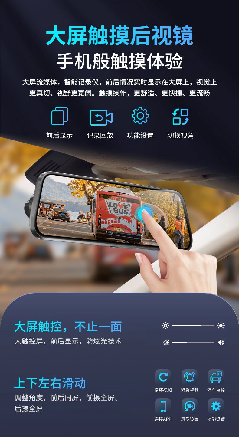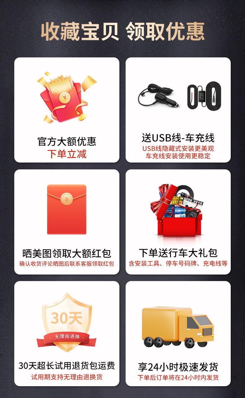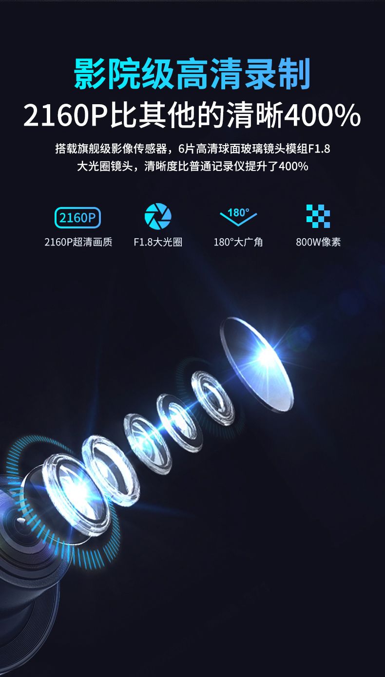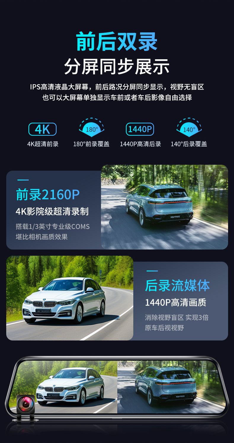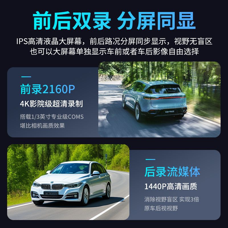 长城旗舰超清4K大屏行车记录仪APP互联双镜头倒车影像声控免安装