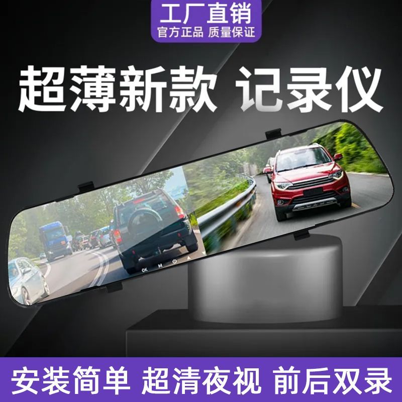 行车记录仪2024新款免走线超薄大屏高清夜视双镜头倒车影像摄像头