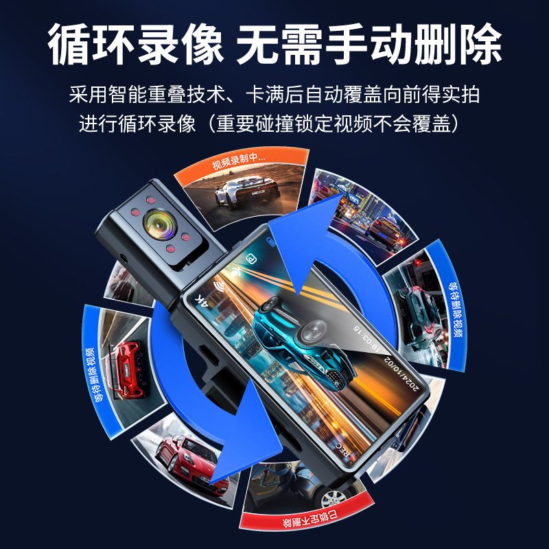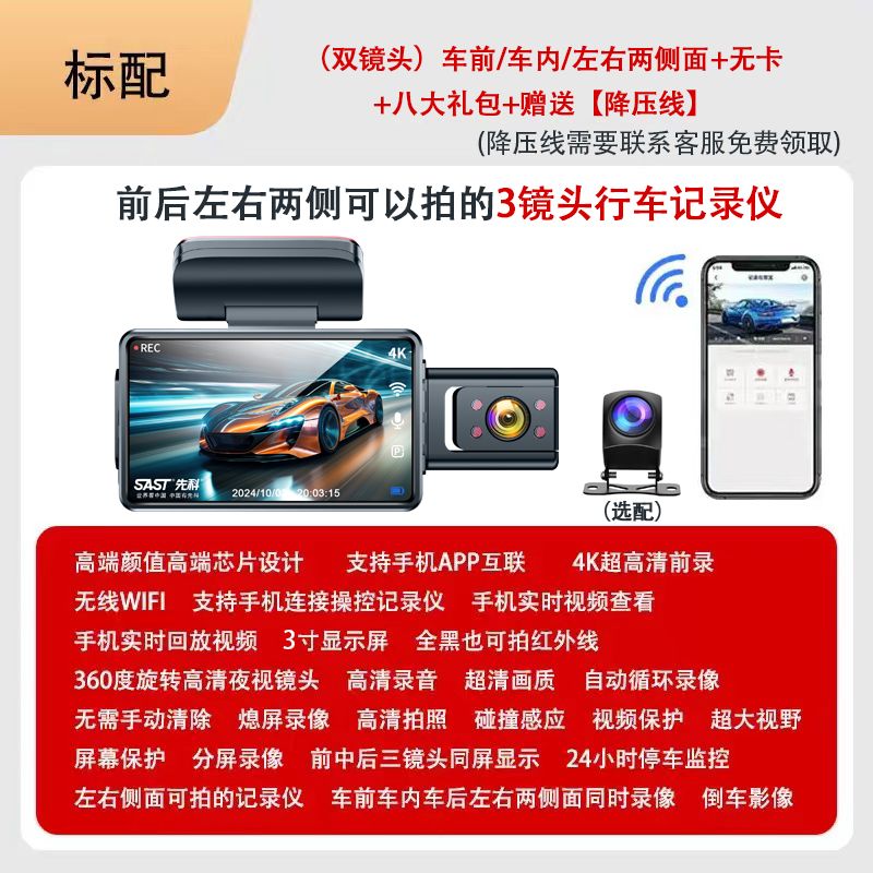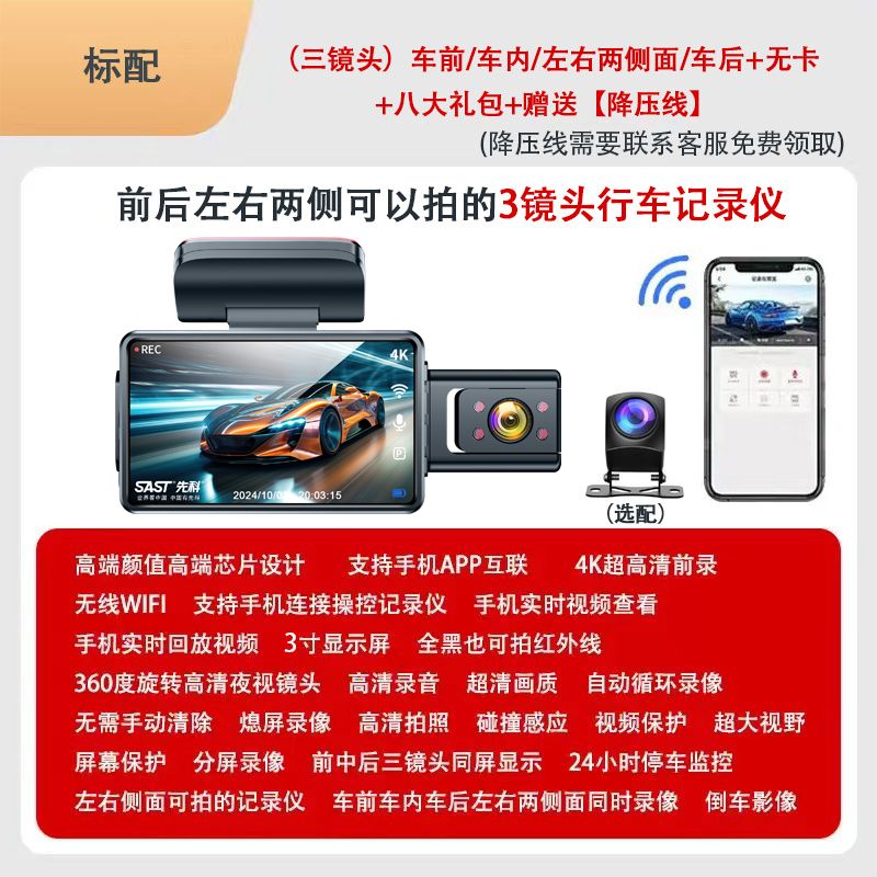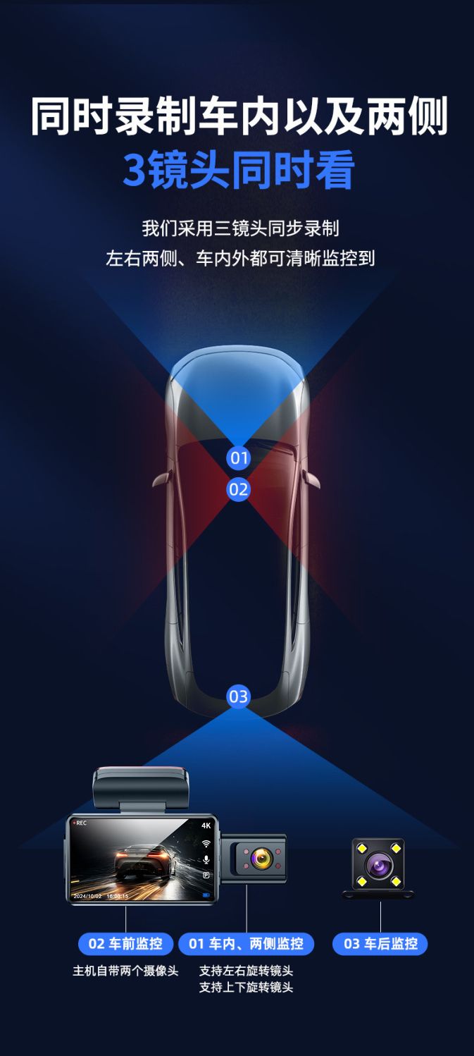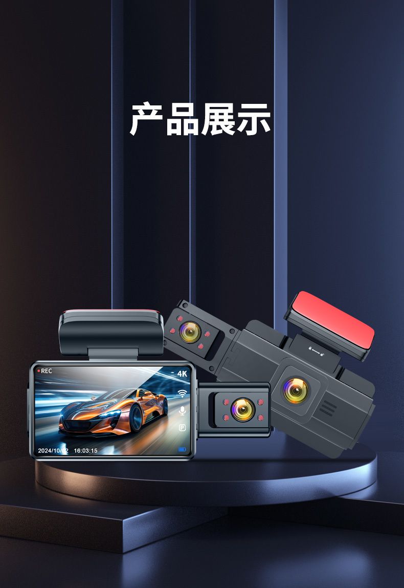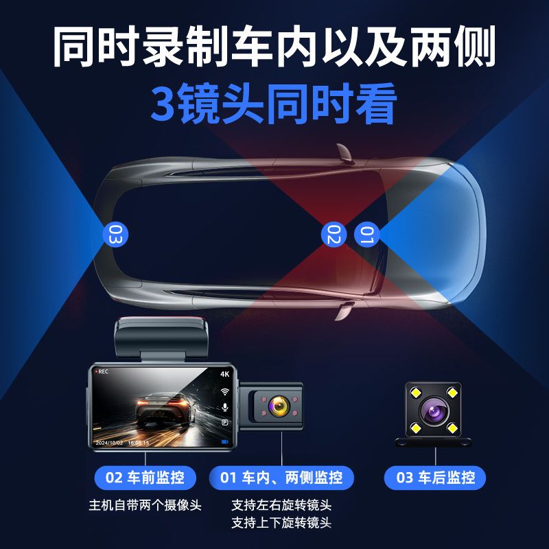 行车记录仪三录同屏360度全景录像4K超高清夜视倒车影像免安装