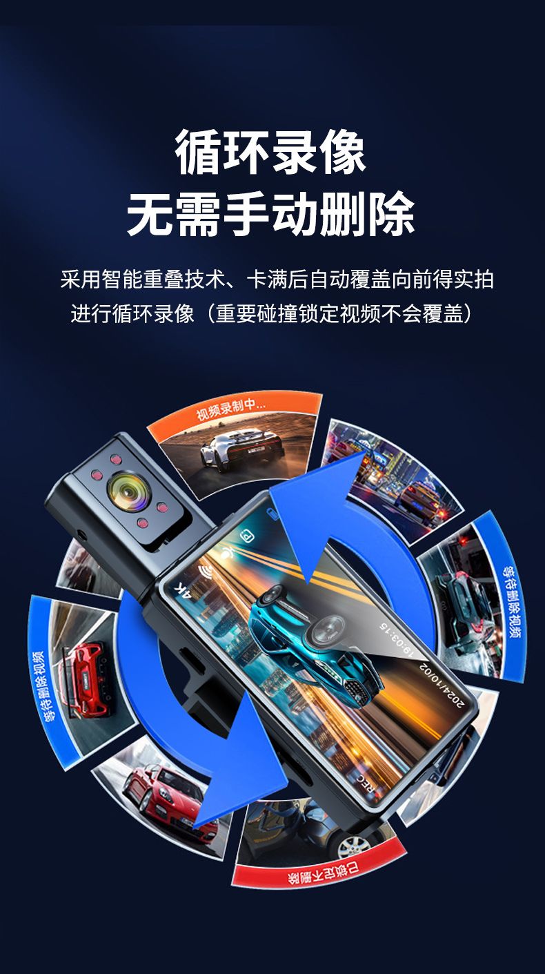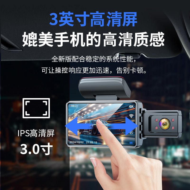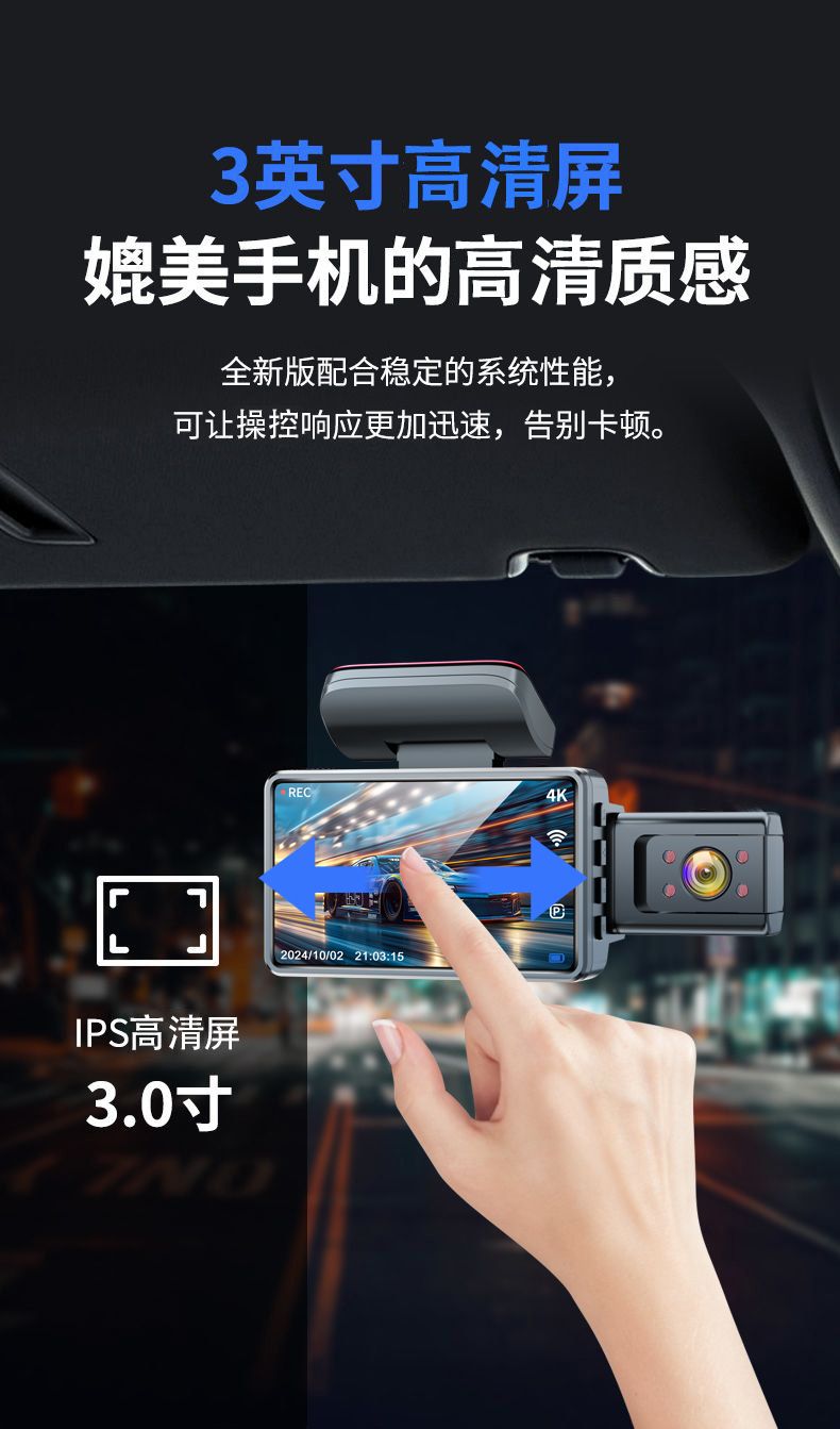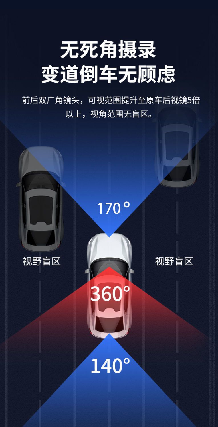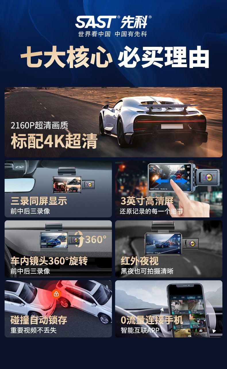 行车记录仪三录同屏360度全景录像4K超高清夜视倒车影像免安装