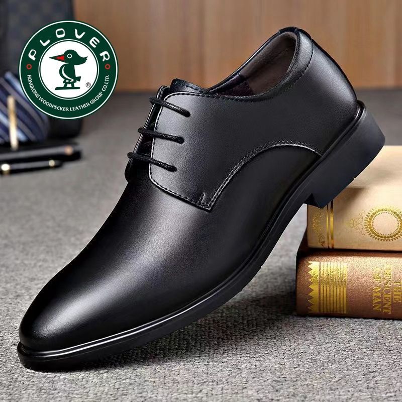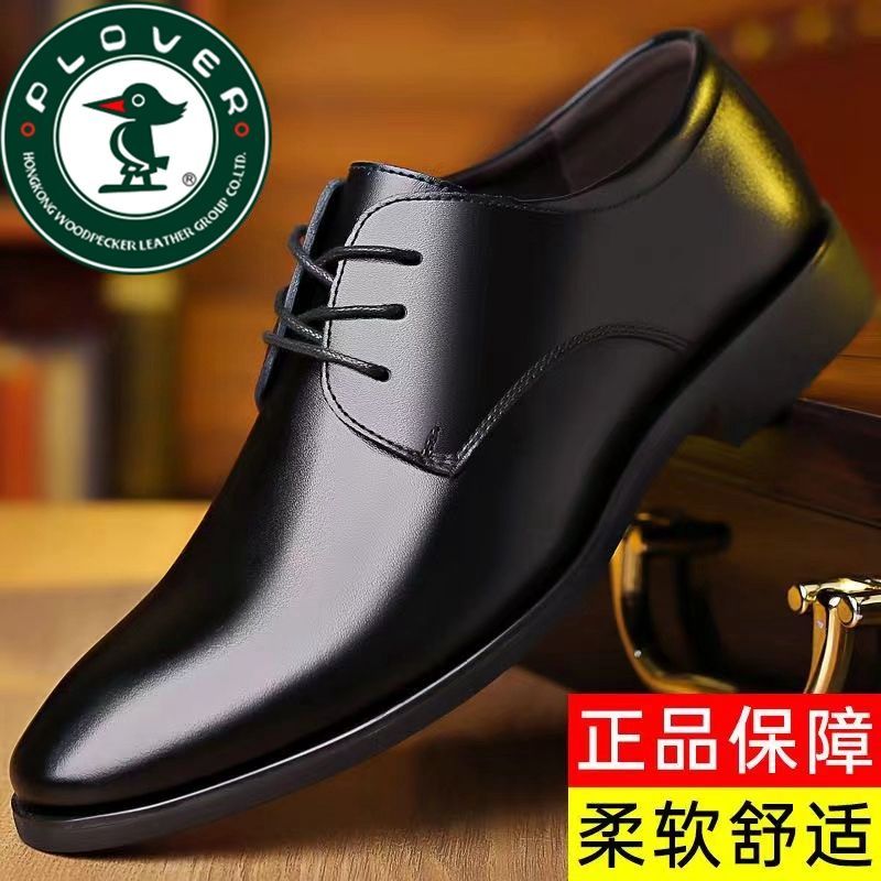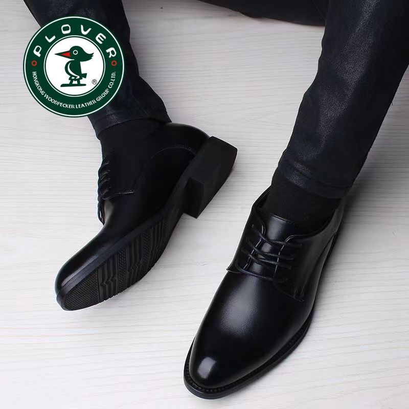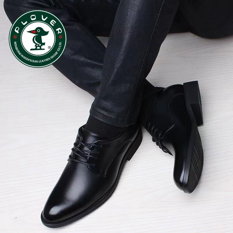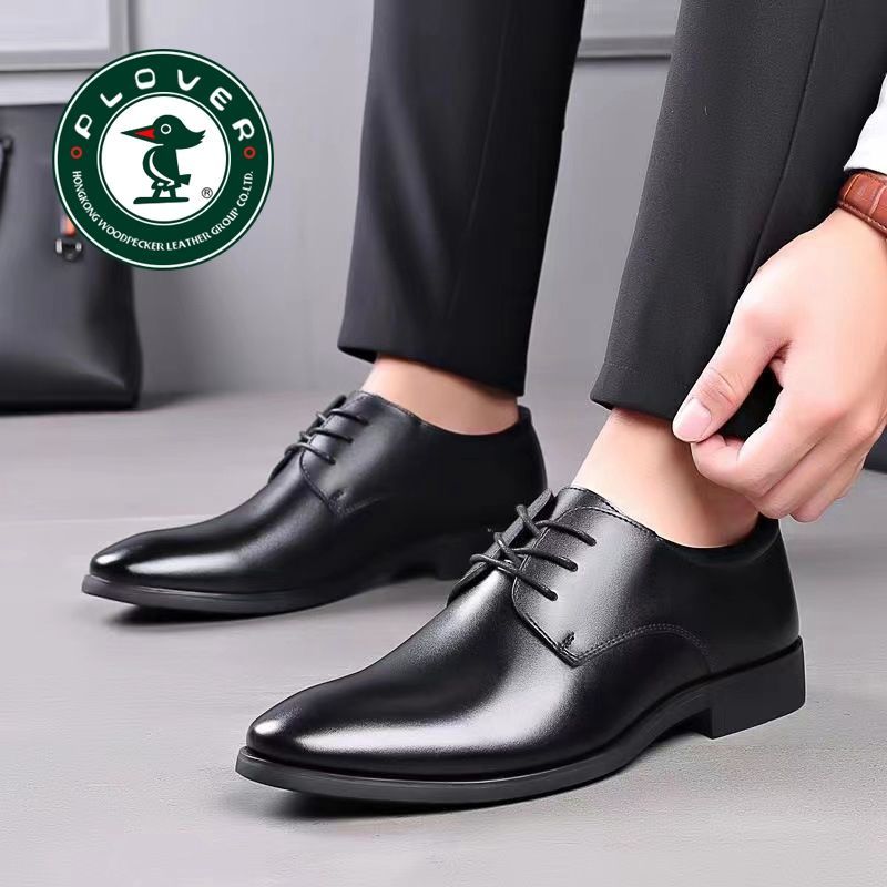 PLOVER真皮2024新款春秋季商务休闲皮鞋男青年正装透气男鞋子增高