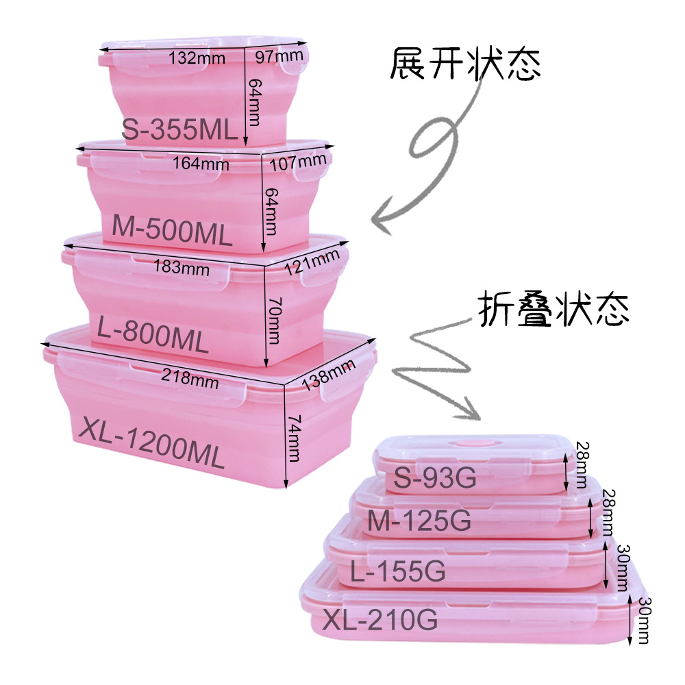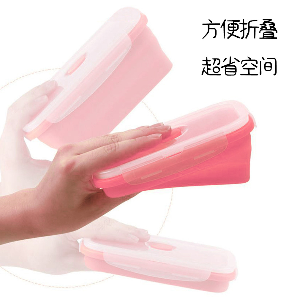 硅胶可折叠饭盒可入微波炉 长方形午餐便当盒 食品收纳密封保鲜盒