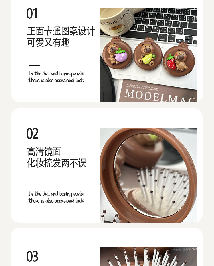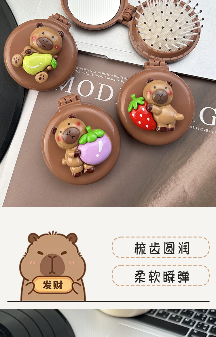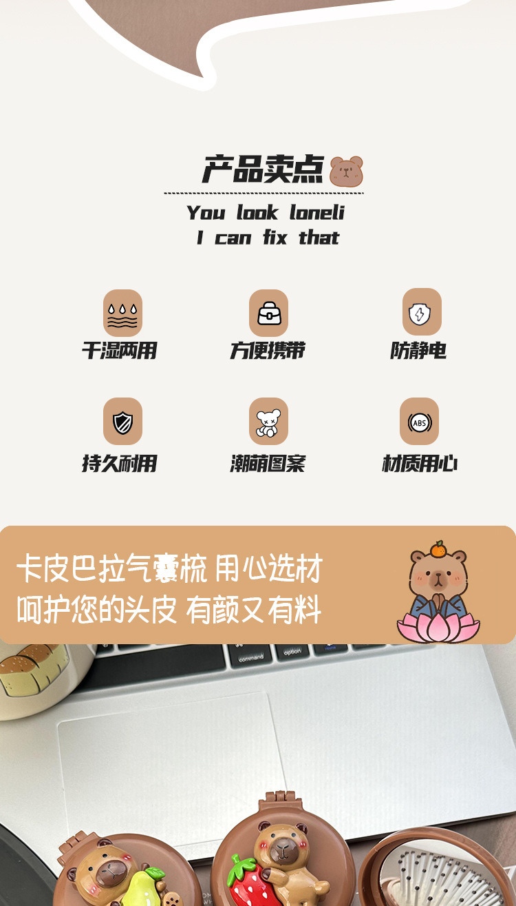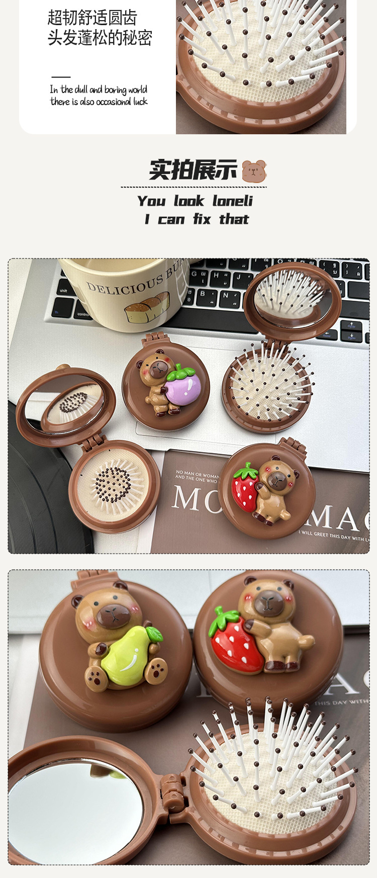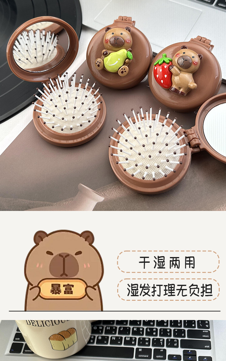 ins可爱卡皮巴拉水豚气囊梳子迷你便携式随身蓬松按摩小型气垫梳