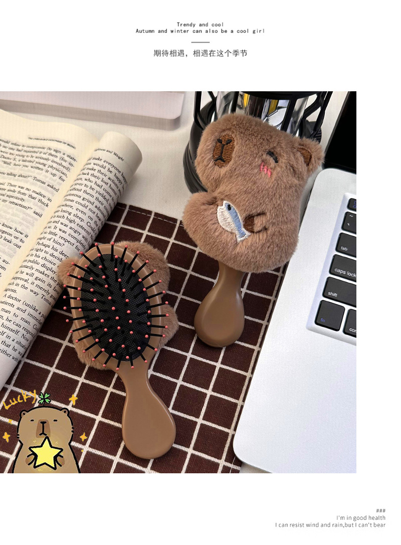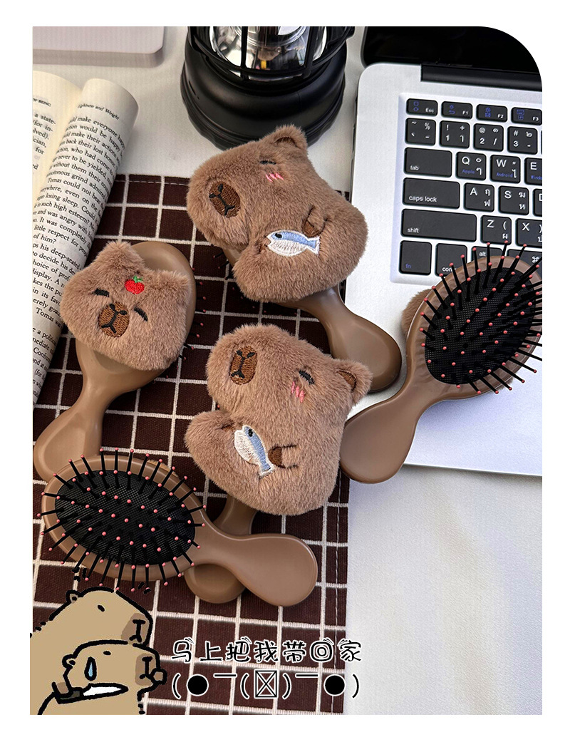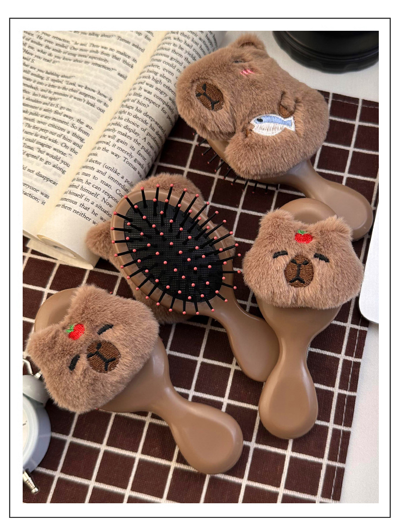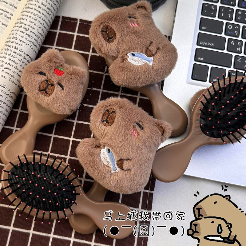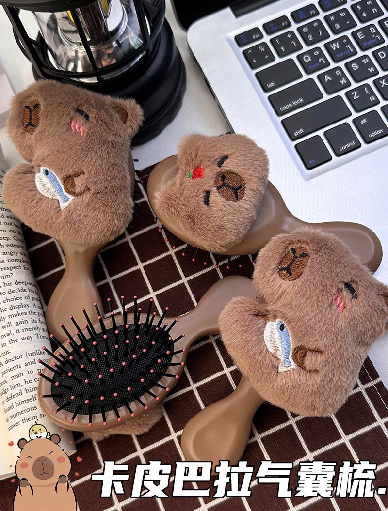 卡通可爱毛绒卡皮巴拉水豚气囊梳子小巧便携式少女学生按摩气垫梳