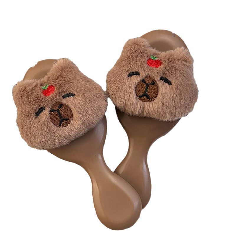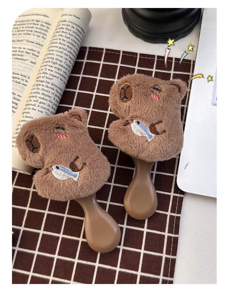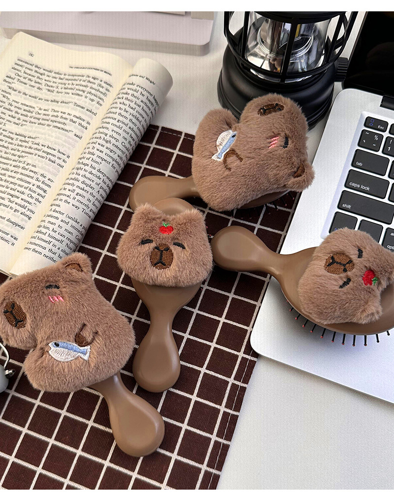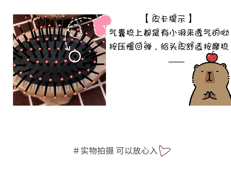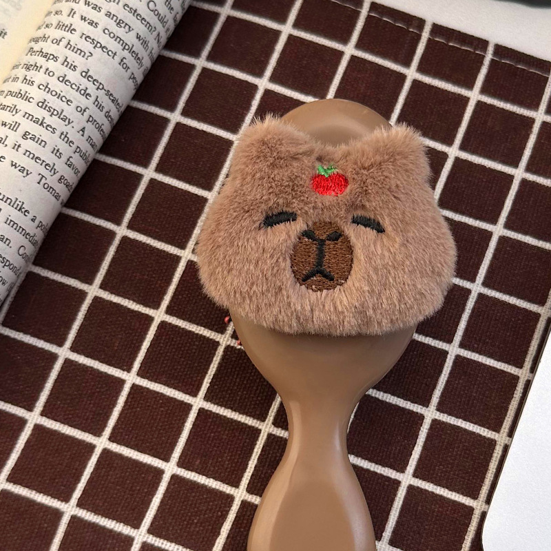卡通可爱毛绒卡皮巴拉水豚气囊梳子小巧便携式少女学生按摩气垫梳
