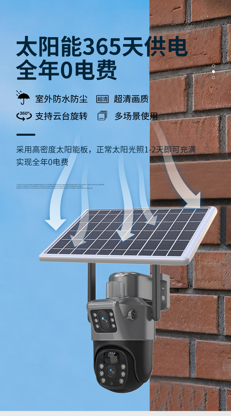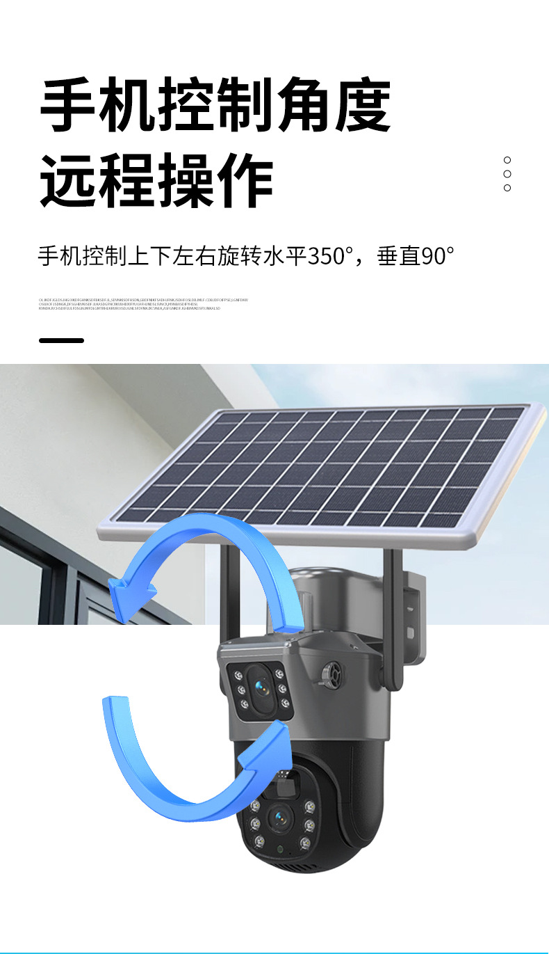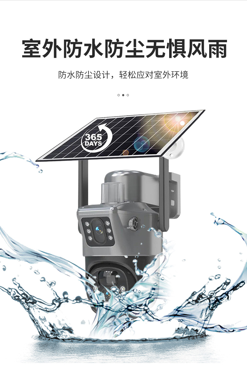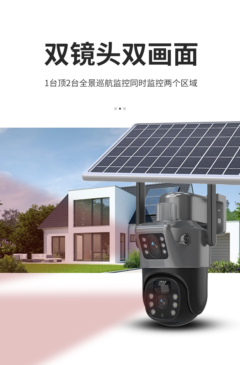 4G太阳能360度全景枪球双镜头双画面监控摄像头远程WiFi摄像机