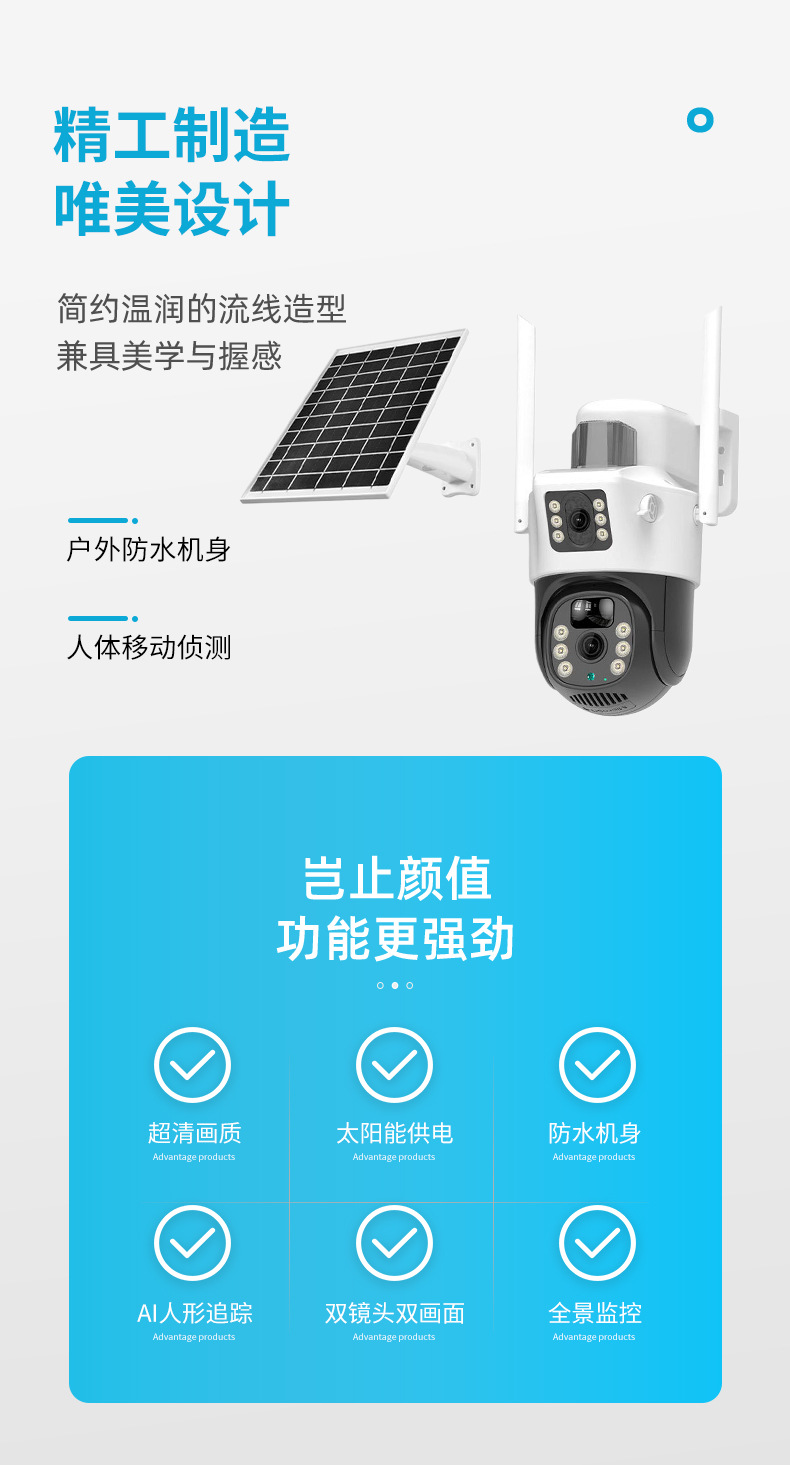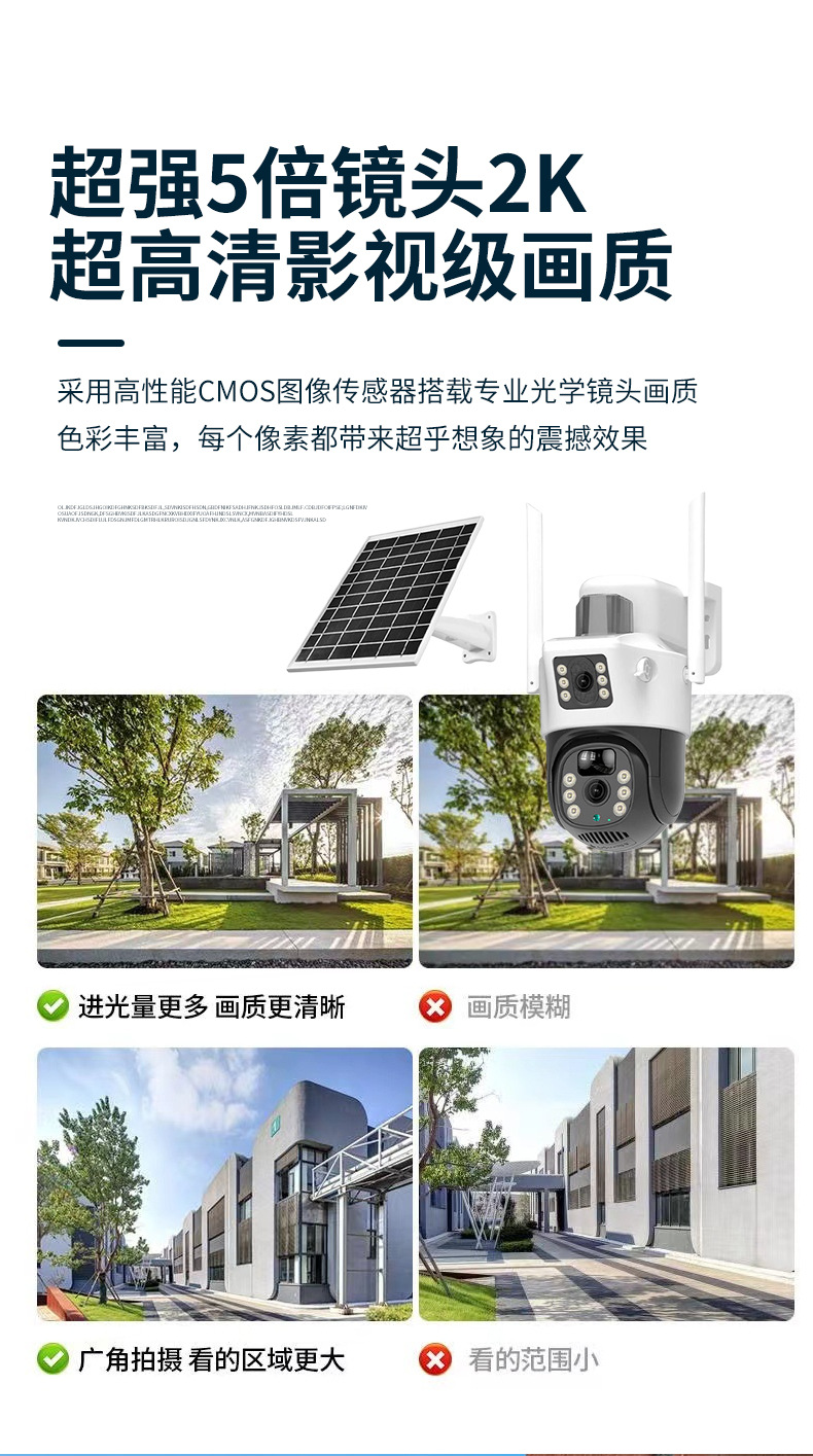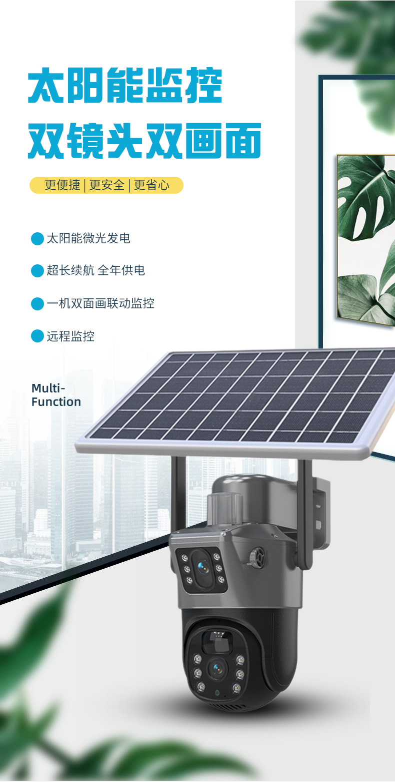 4G太阳能360度全景枪球双镜头双画面监控摄像头远程WiFi摄像机