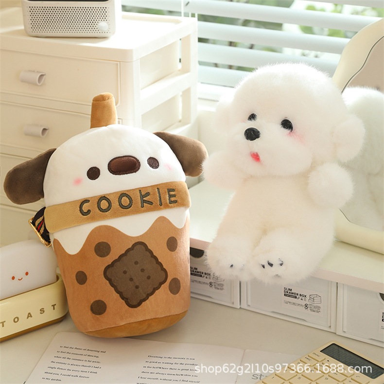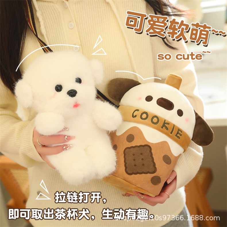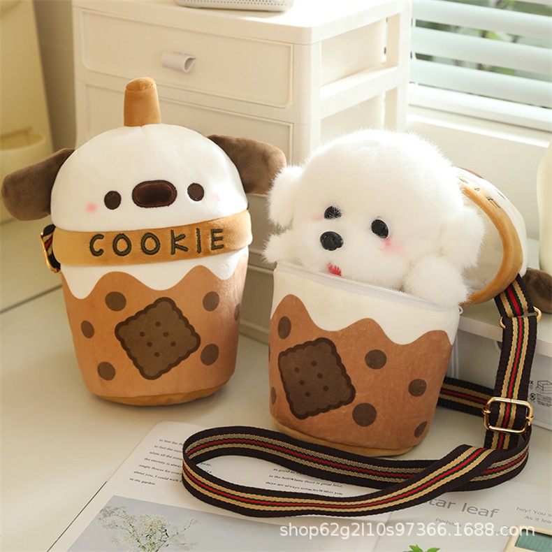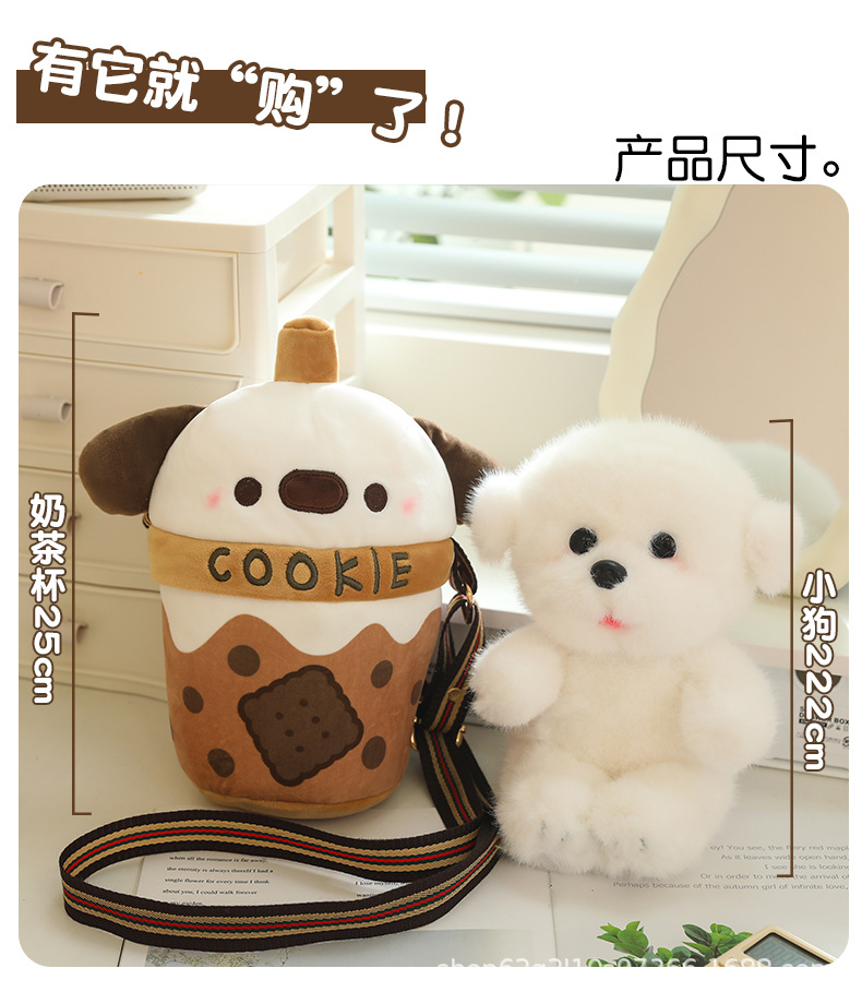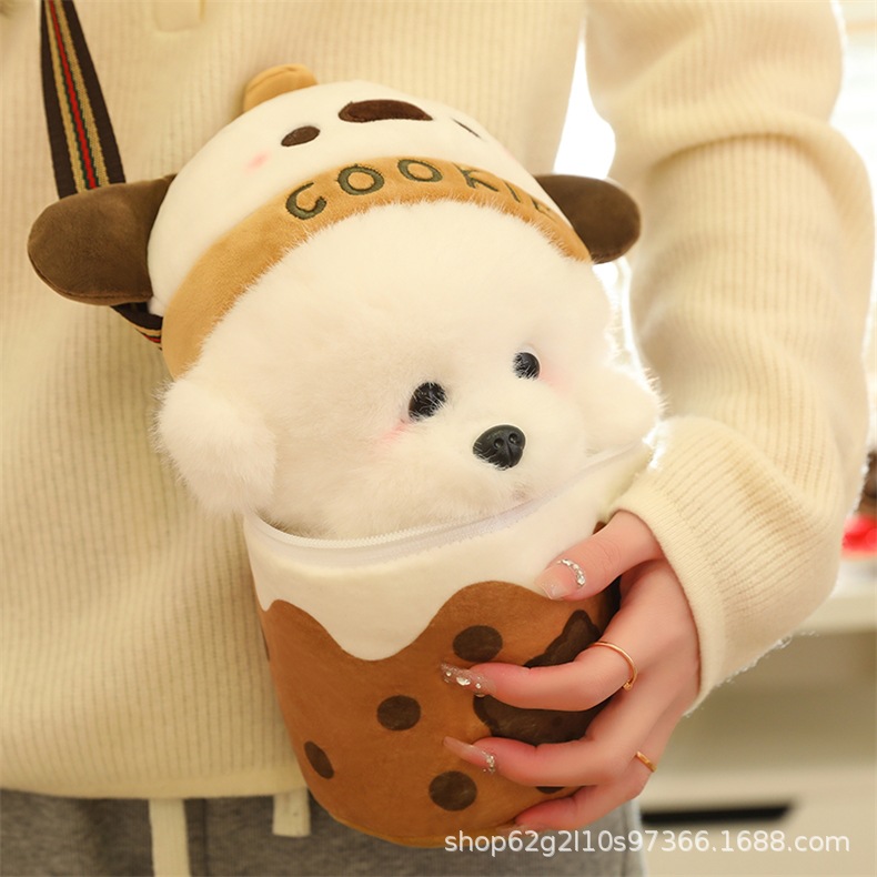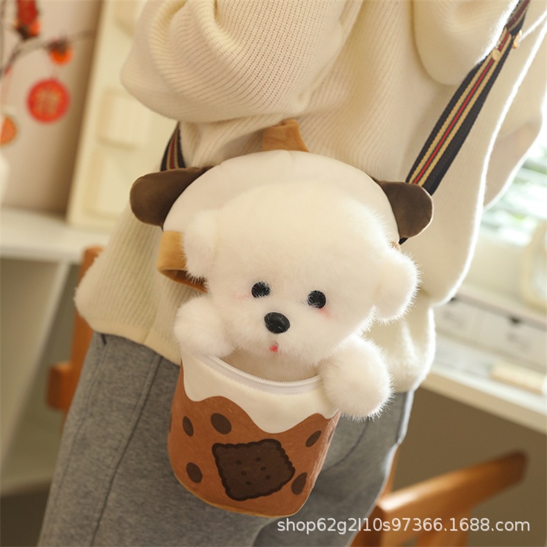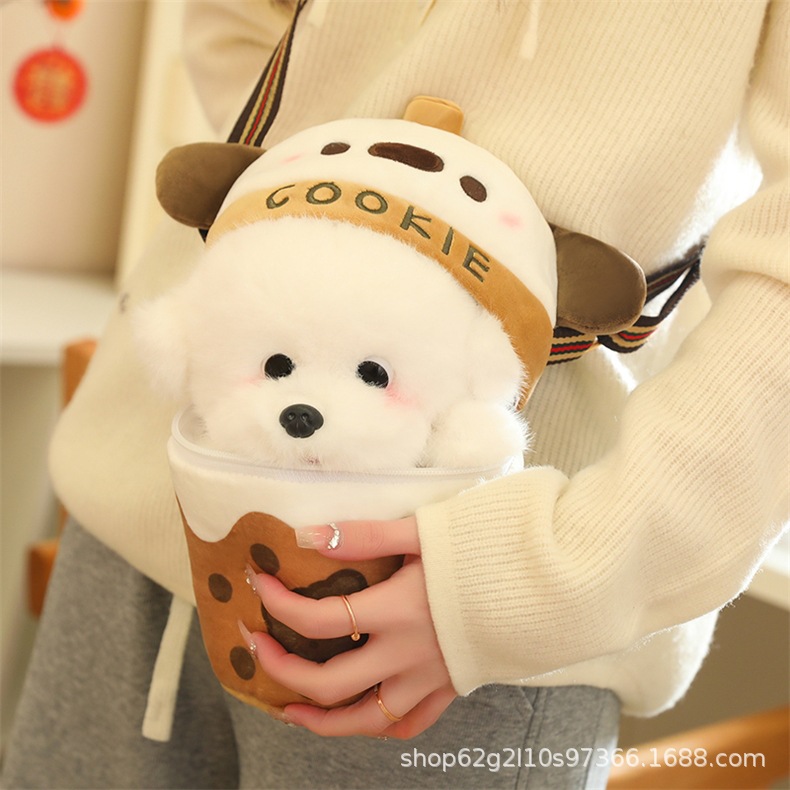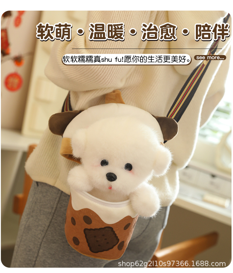 网红茶杯犬小狗毛绒玩具公仔玩偶小挎包比熊小奶狗公仔毛绒玩具女