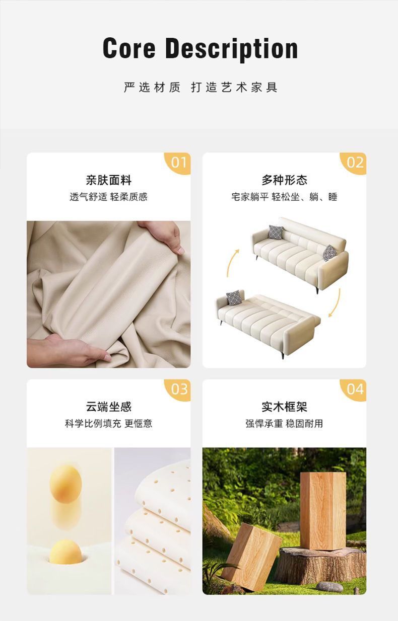 极简沙发小户型出租屋简约折叠沙发双人轻奢办公室布艺折叠沙发床