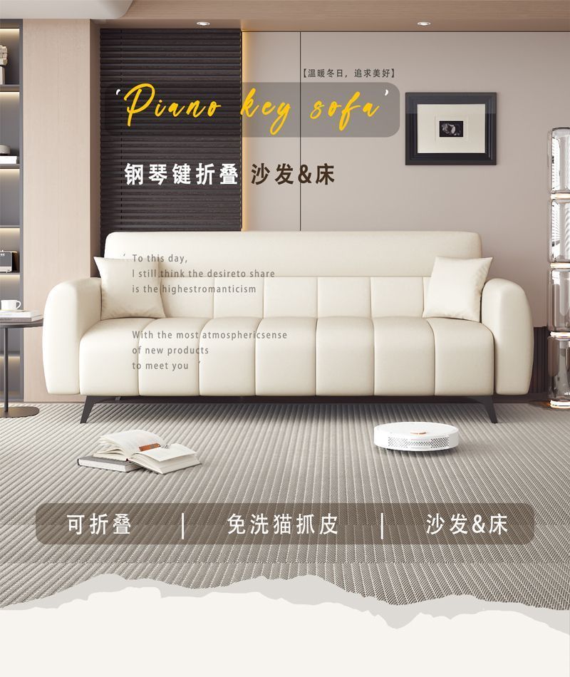 猫抓皮沙发钢琴键2024新款简约现代折叠沙发床两用小户出租房客厅